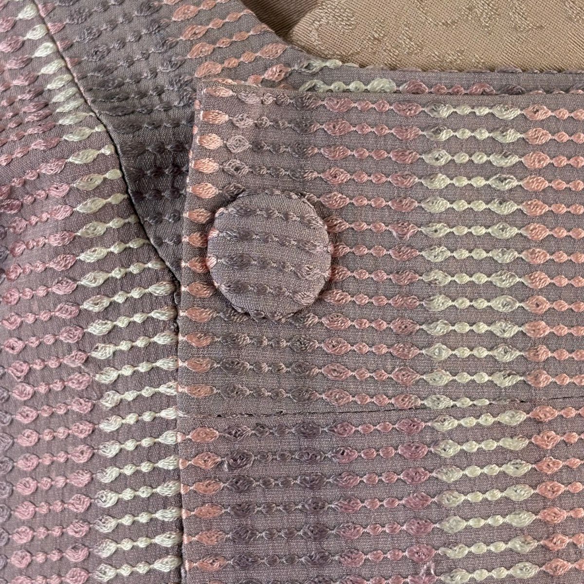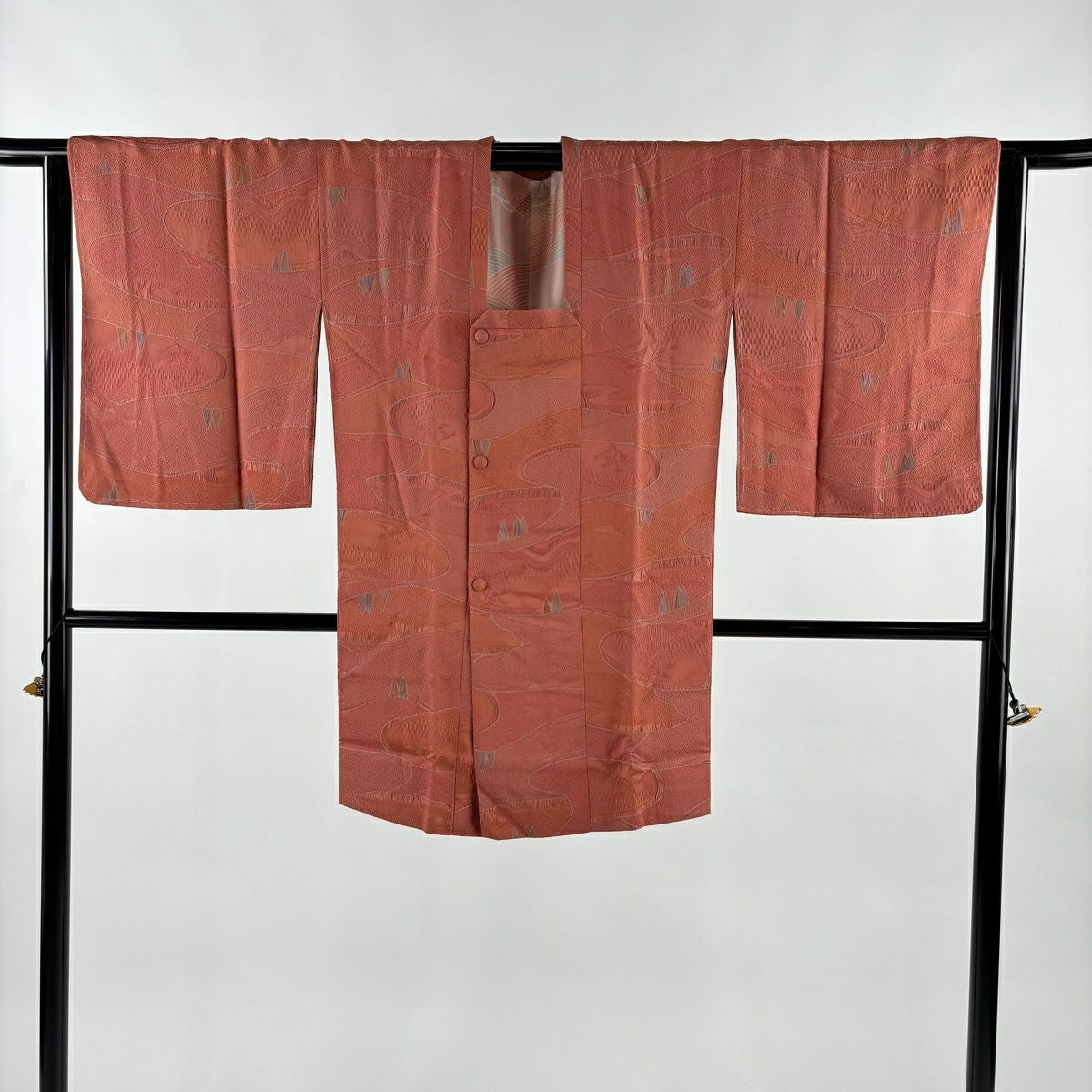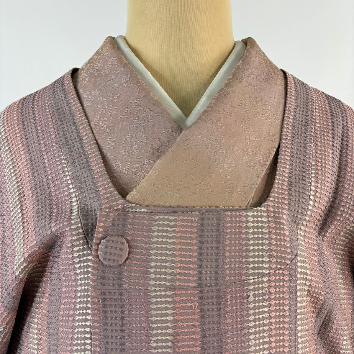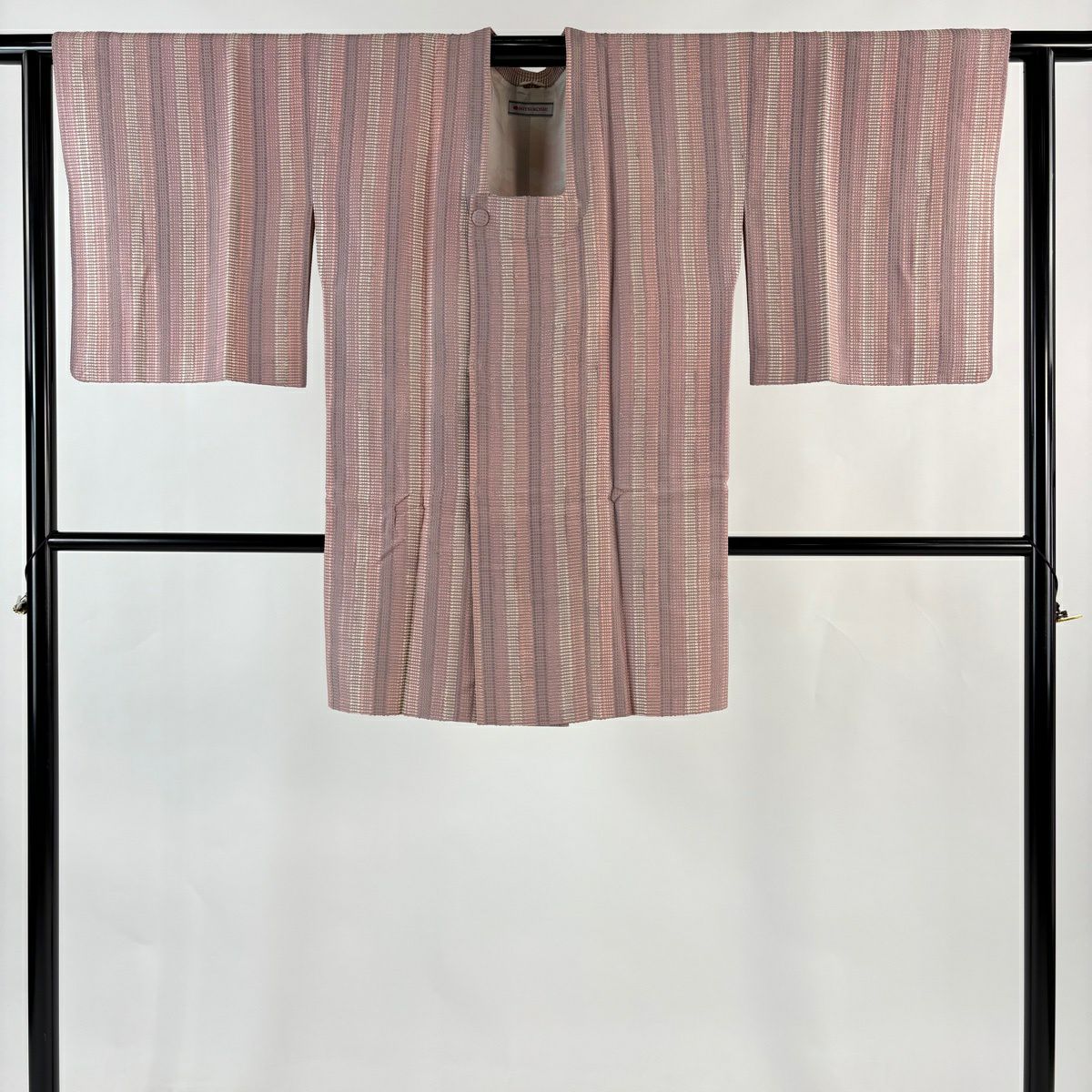70%OFF 道行 身丈90cm 裄丈64cm M 和装コート 角衿 縞 幾何学模様 ピンク 正絹 秀品 K70