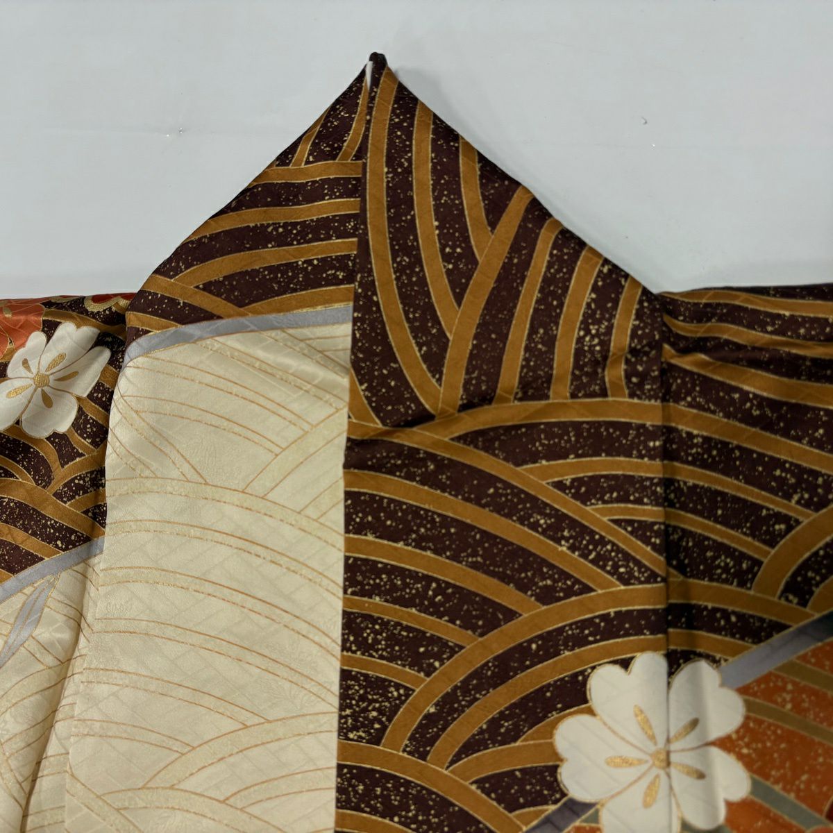 70%OFF 【美品】 道行 身丈99cm 裄丈66cm M 和装コート 角衿 桜 金彩 茶色 正絹 秀品 K70
