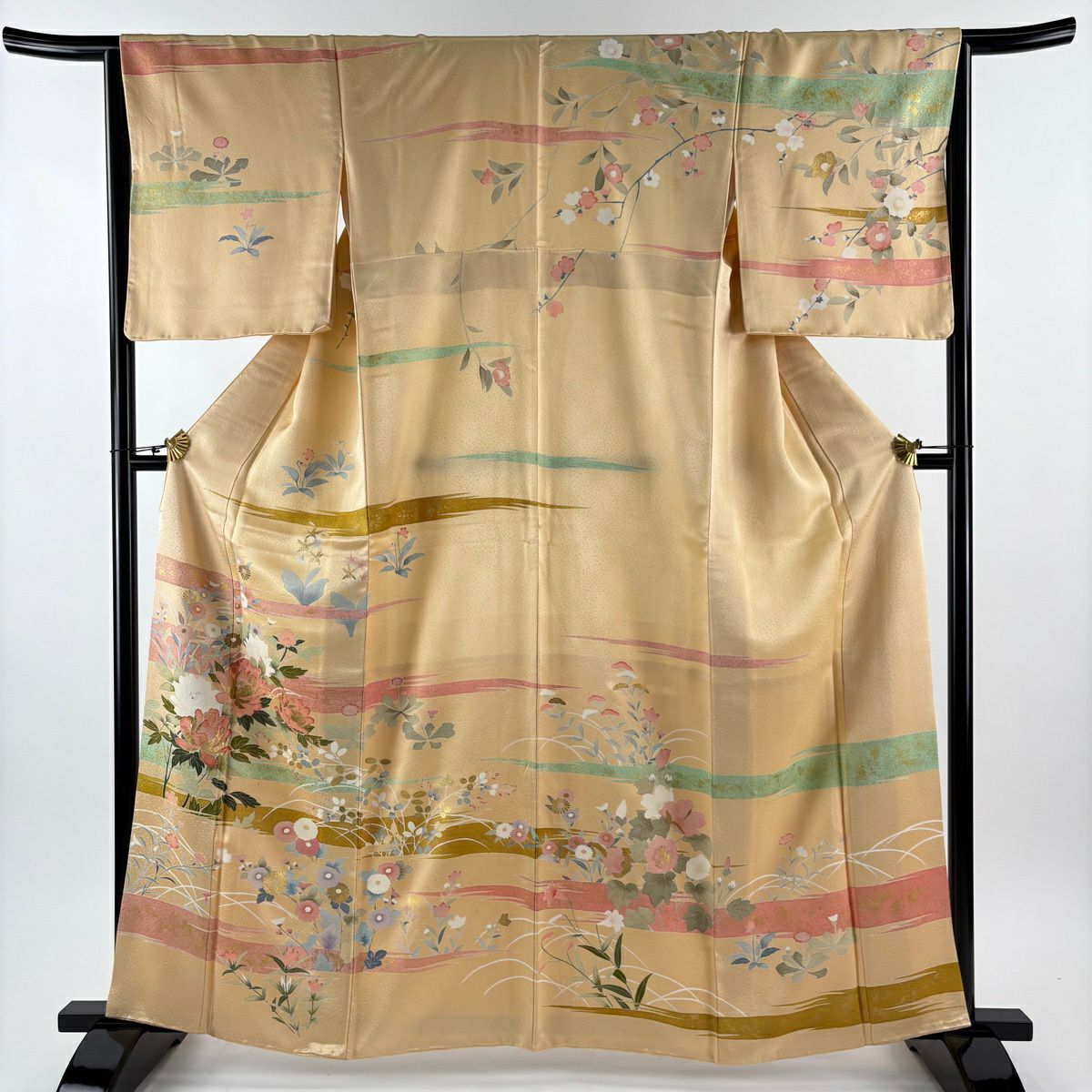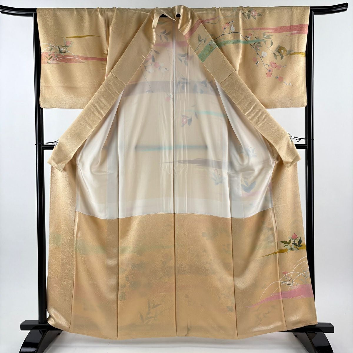 70%OFF 付下げ 身丈157cm 裄丈63.5cm S 袷 梅 桜 金糸 金彩 ベージュ 正絹 秀品 K70