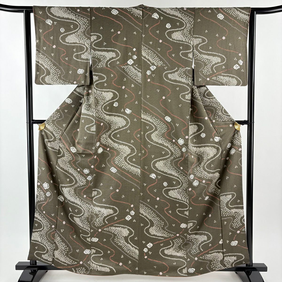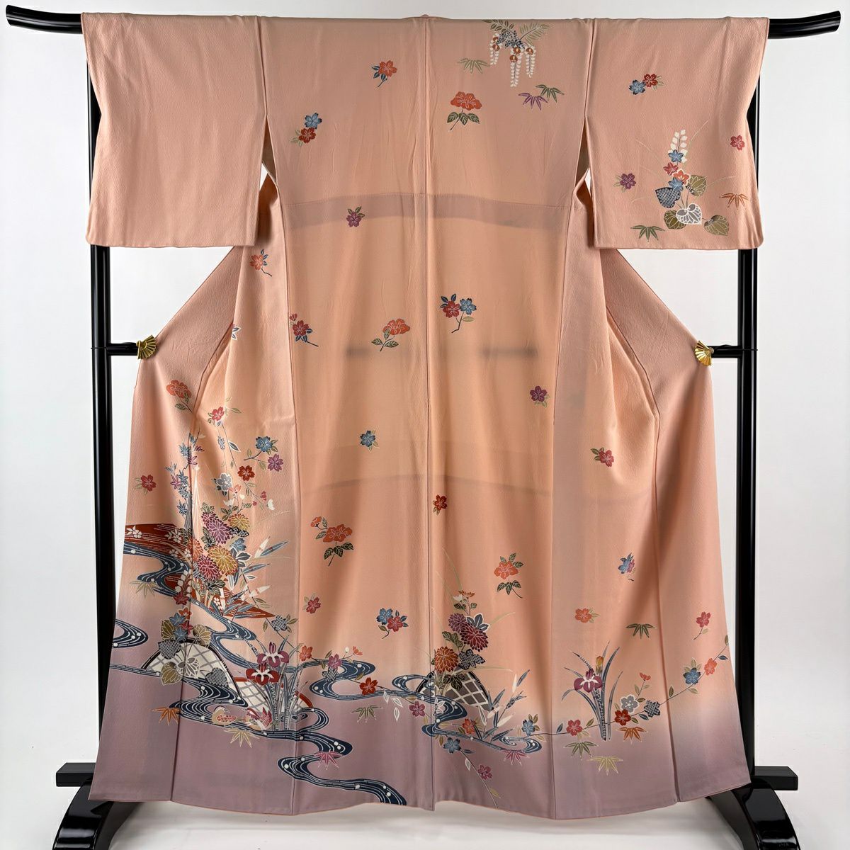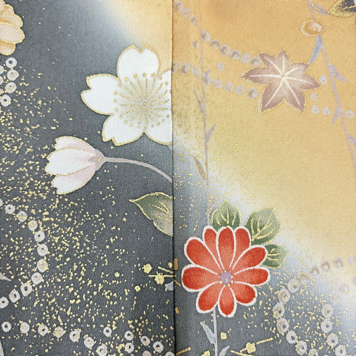 70%OFF 【美品】 訪問着 身丈163cm 裄丈63.5cm S 袷 花筏 流水 金彩 金茶 正絹 秀品 K70