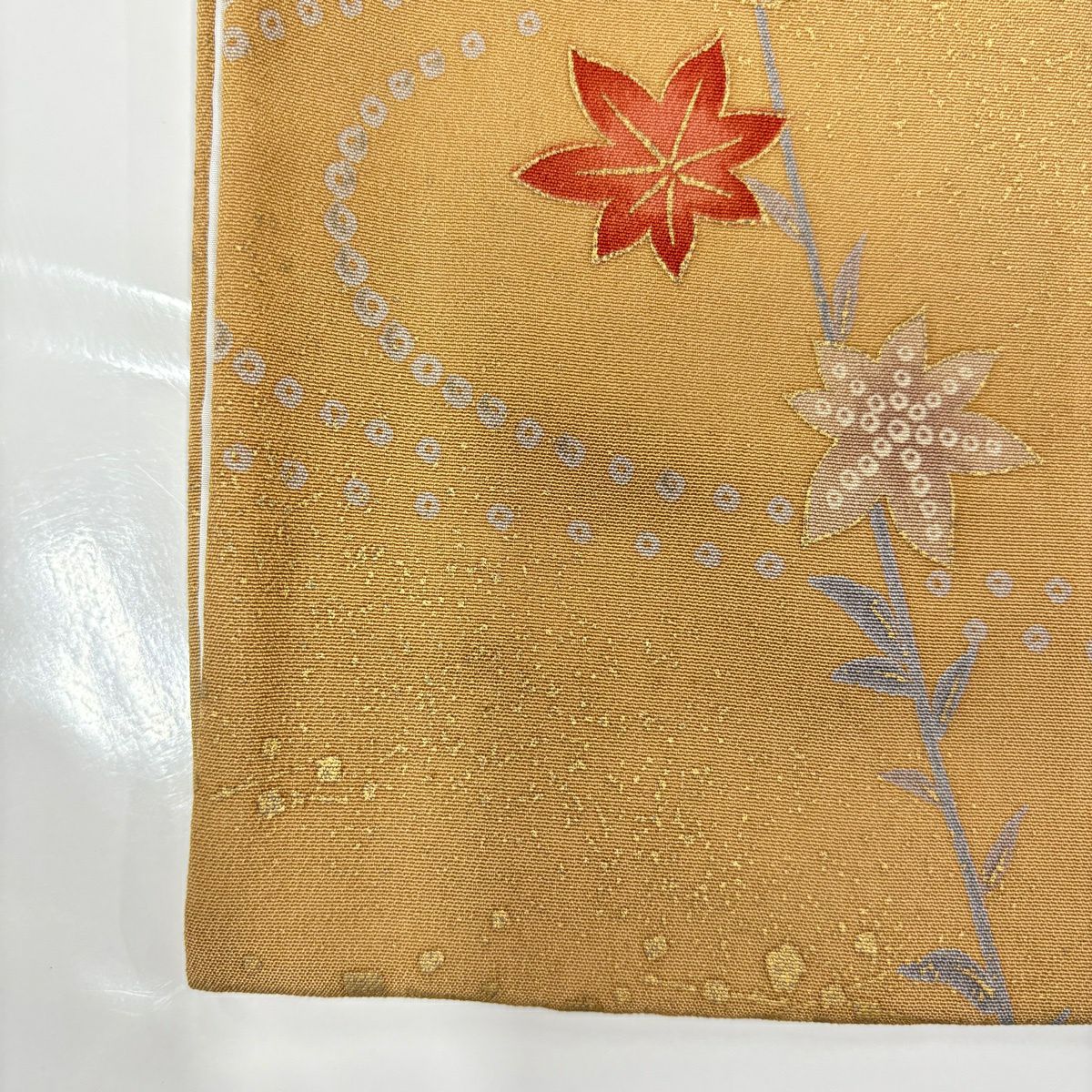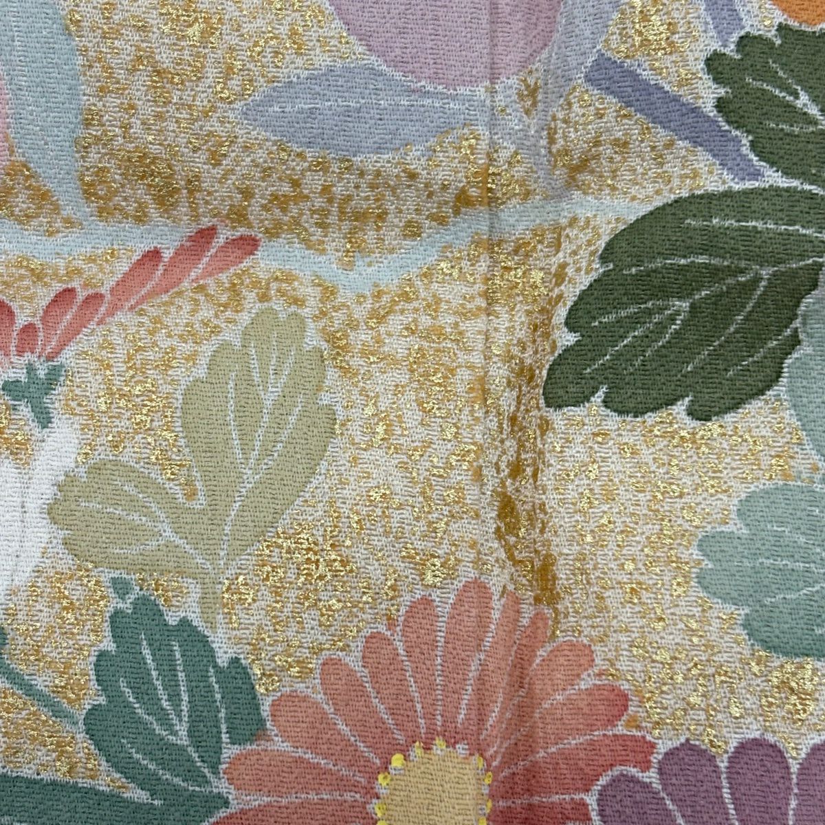 【最終値引き】 77%OFF 【美品】 袋帯 秀品 関西仕立て 枝梅 菊 金糸 箔 オレンジ 六通 正絹 K70