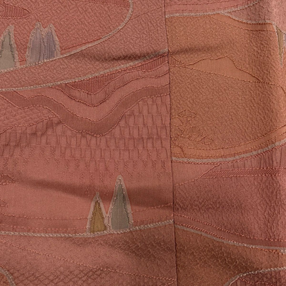 70%OFF 【美品】 名古屋帯 秀品 落款あり 本郷大田子 風景 遠山 ぼかし サーモンピンク 正絹 K70