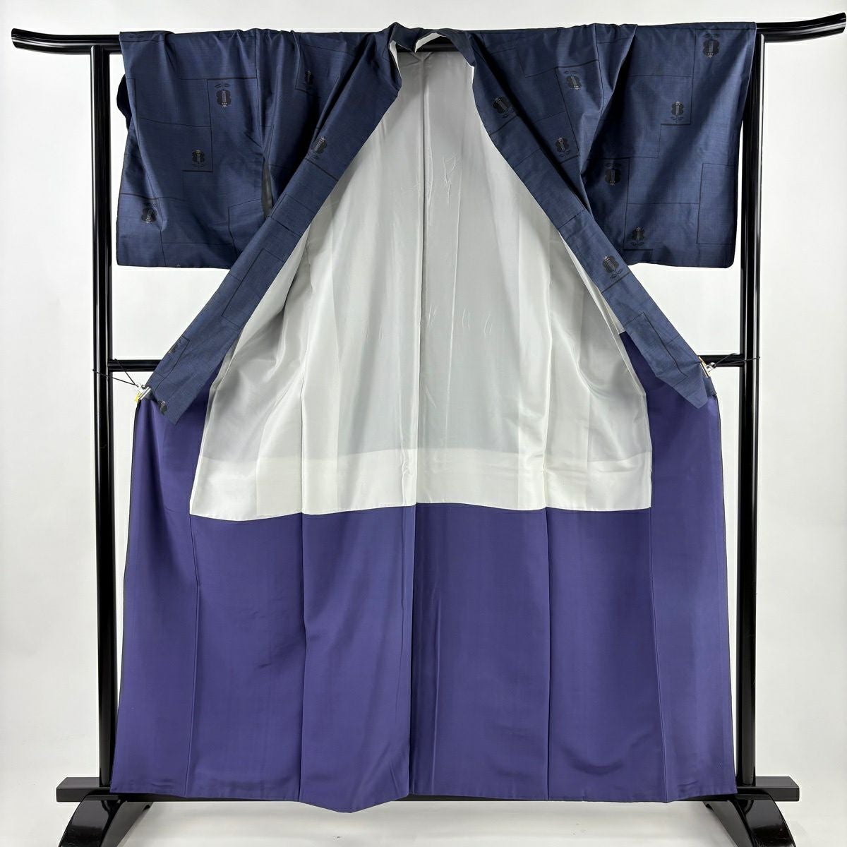 【最終値引き】 70%OFF 小紋 身丈155cm 裄丈66.5cm M 袷 紬地 幾何学 灰紫 正絹 秀品 K70