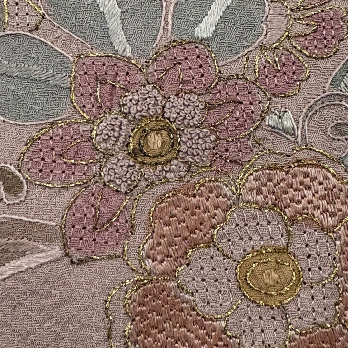 70%OFF 訪問着 身丈157cm 裄丈61.5cm S 袷 牡丹 橘花 刺繍 金糸 青灰色 正絹 秀品 K70