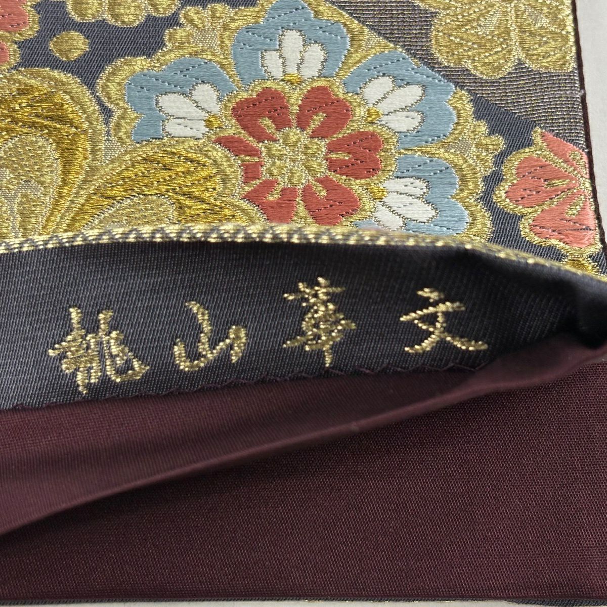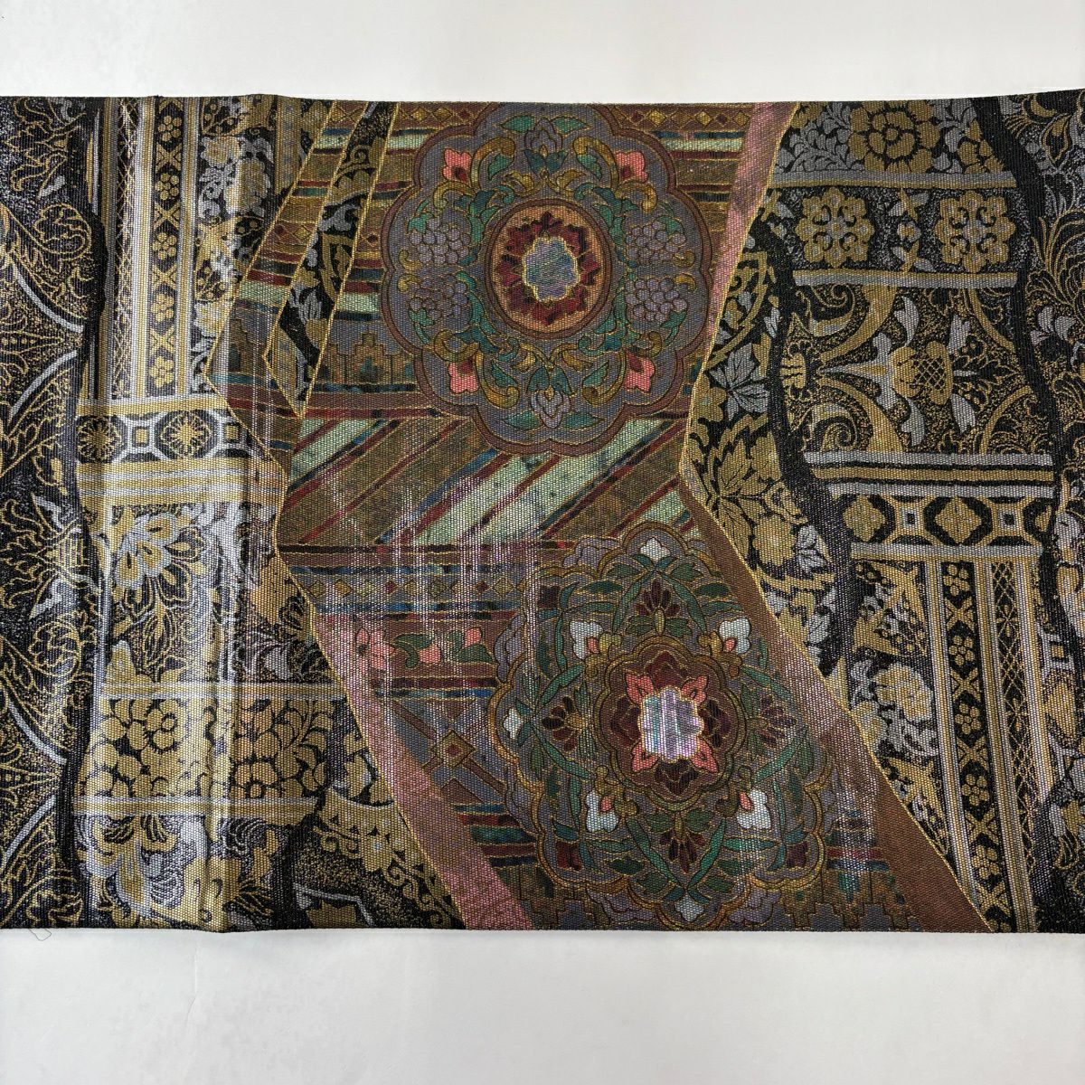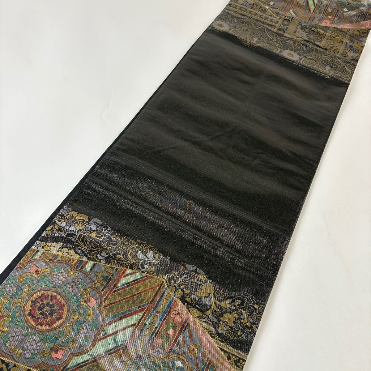 袋帯 秀品 華文 草花 螺鈿箔 金銀彩 黒 お太鼓柄 正絹