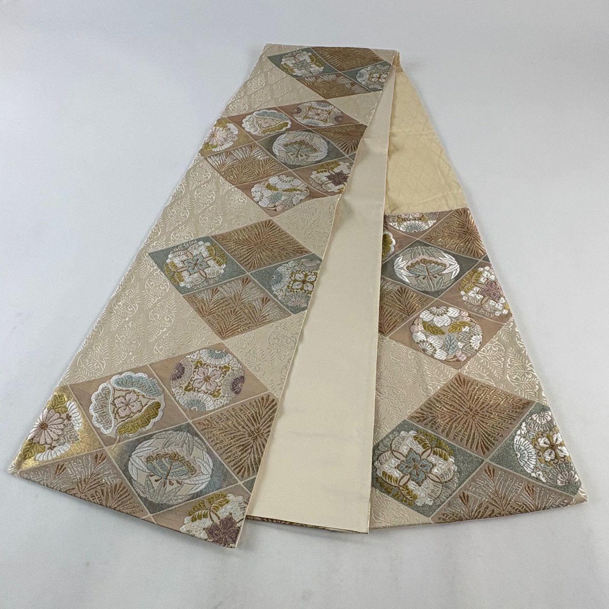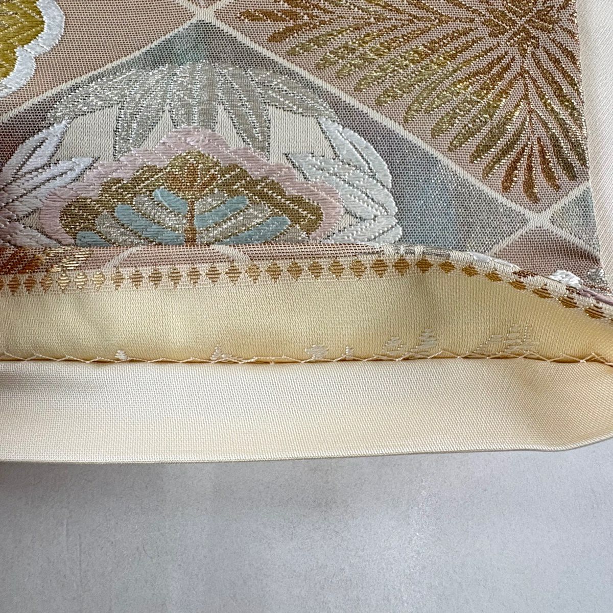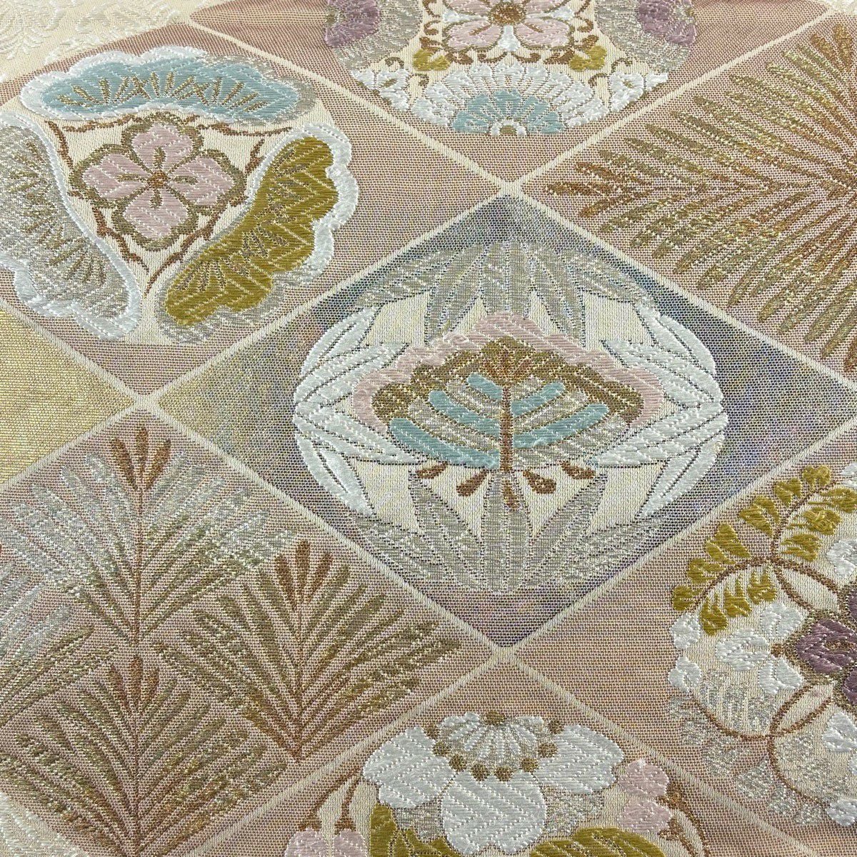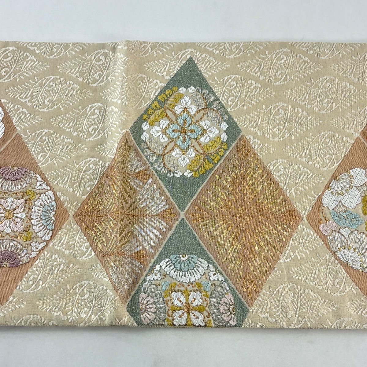 袋帯 秀品 菱文 松 金銀糸 箔 ベージュ 六通 正絹