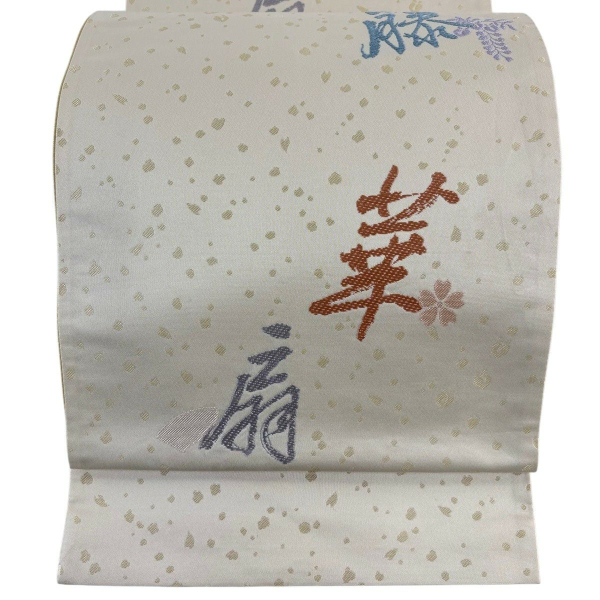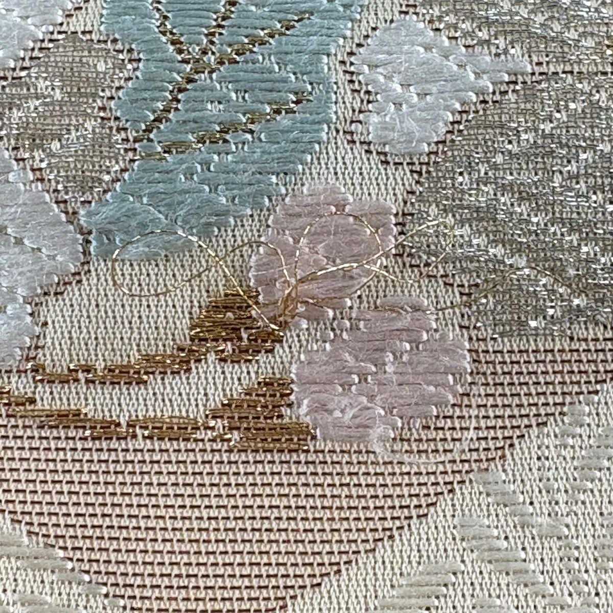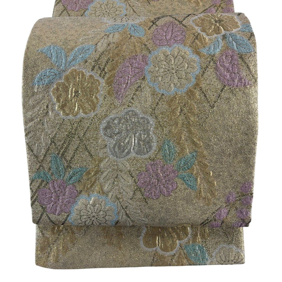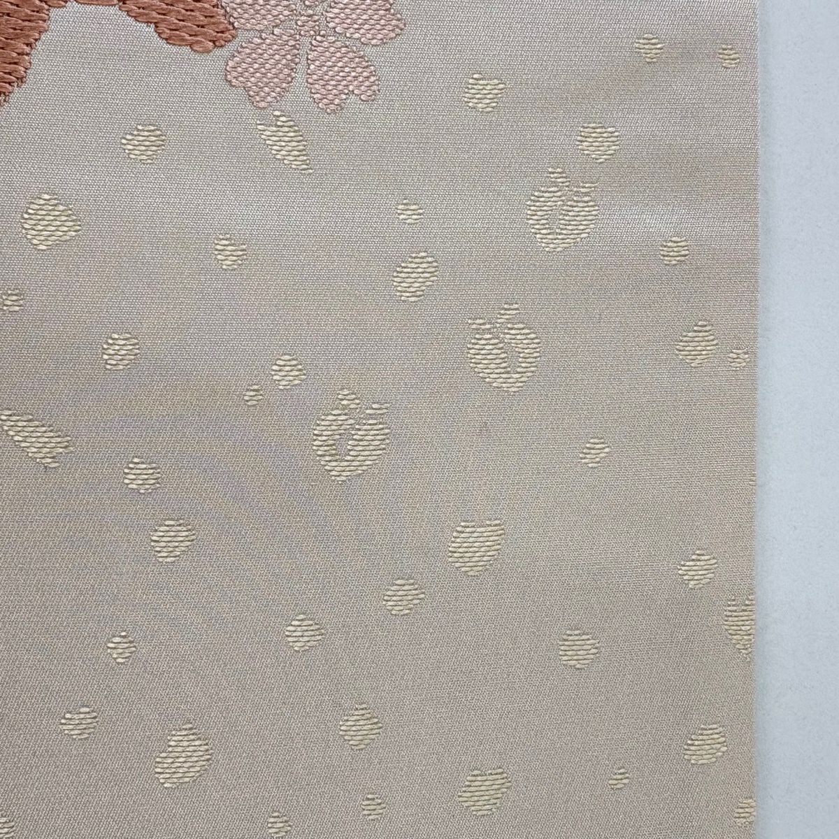 袋帯 秀品 桜 波頭 刺繍 金糸 ベージュ 六通 正絹