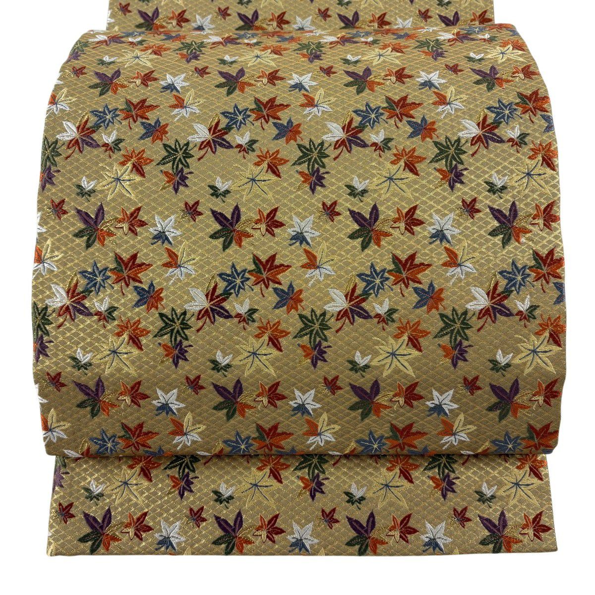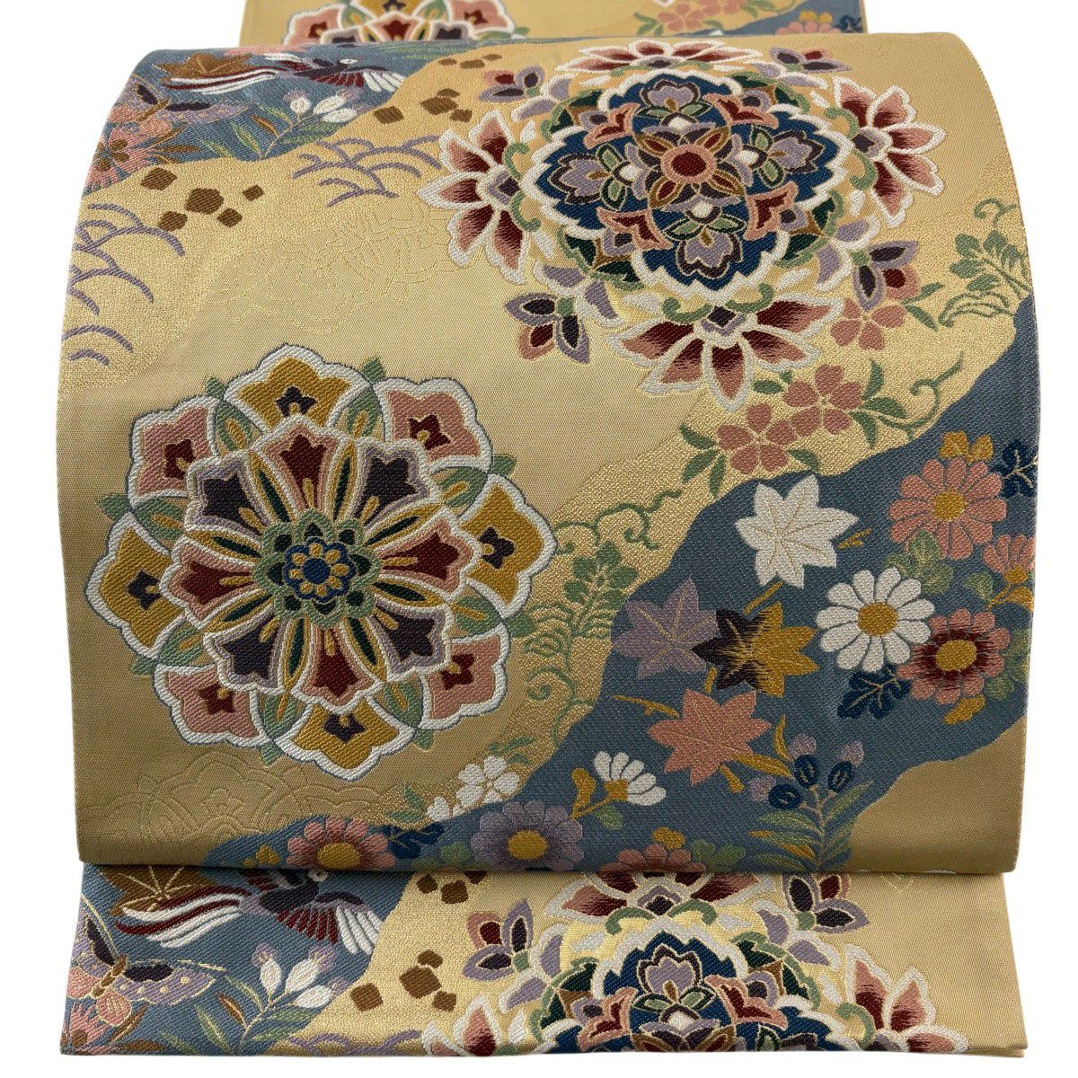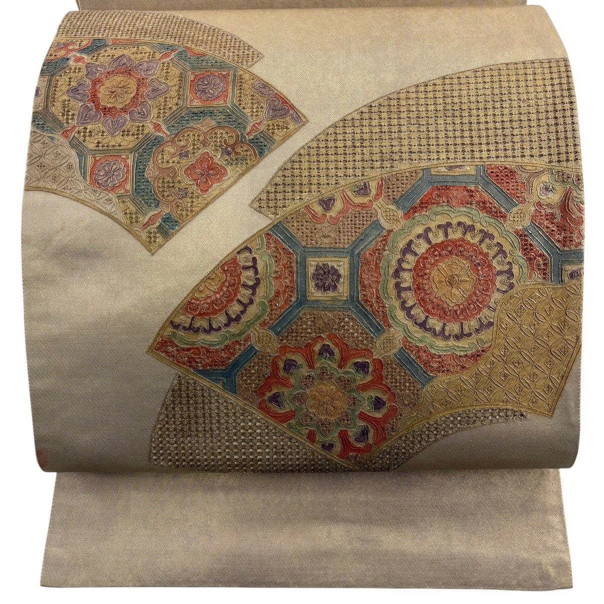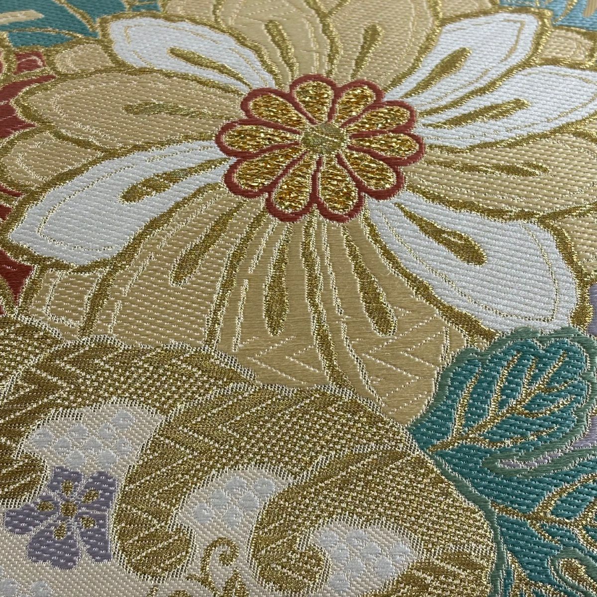 袋帯 秀品 扇面 蜀江華文 刺繍 箔 金茶 お太鼓柄 正絹