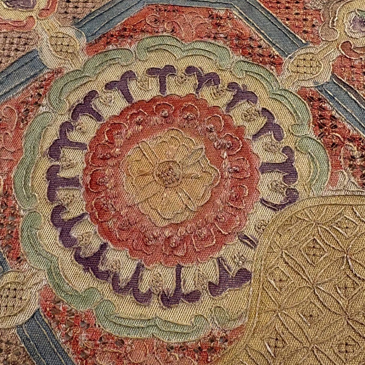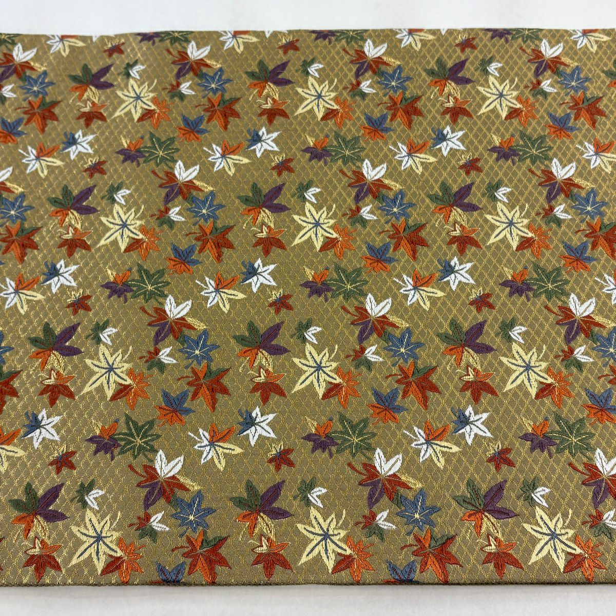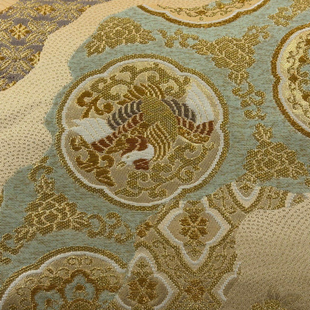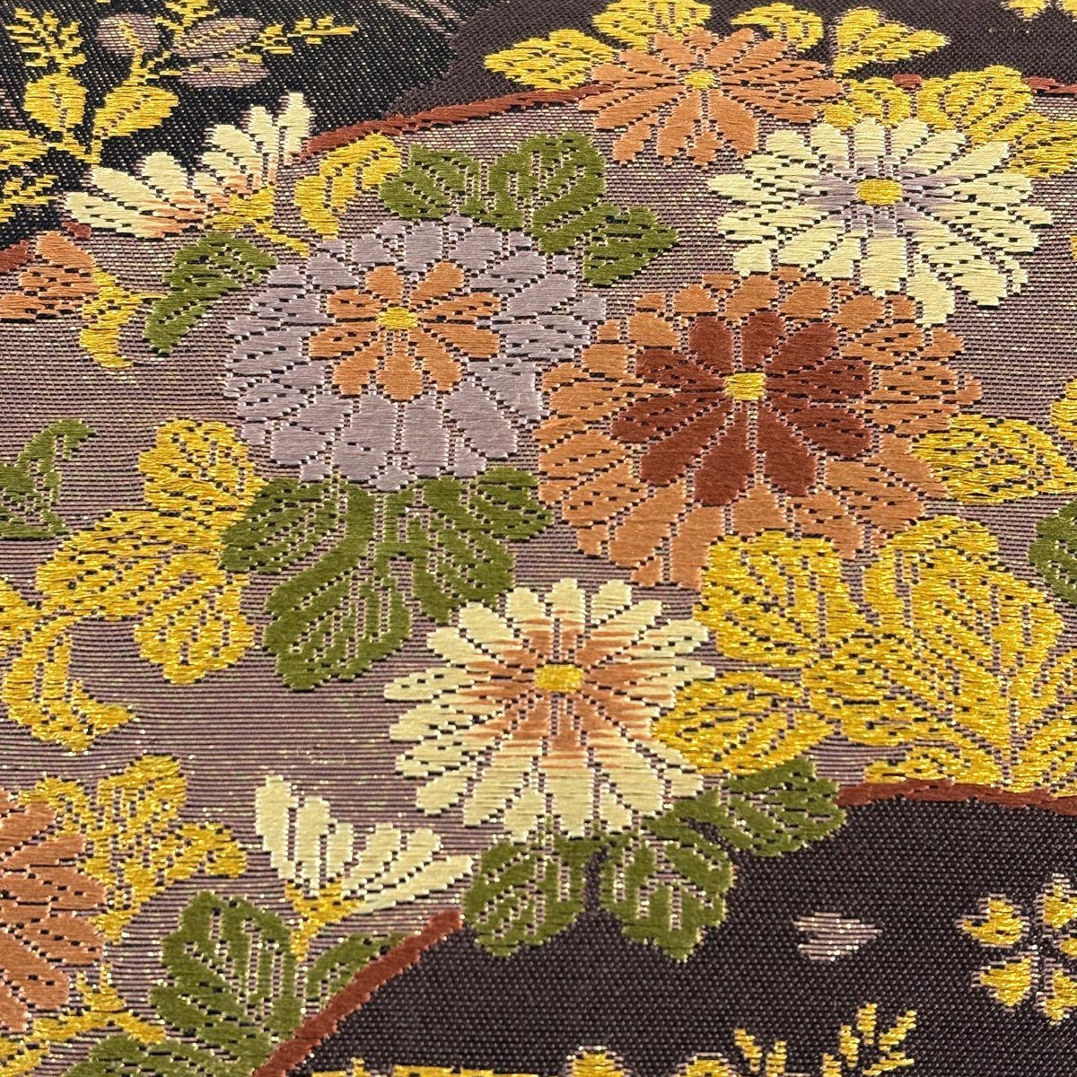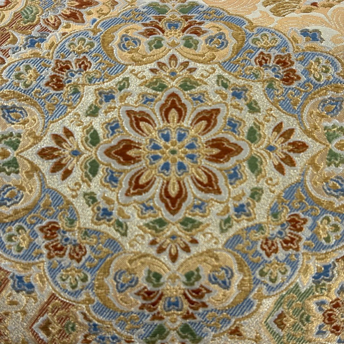 袋帯 秀品 扇面 蜀江華文 刺繍 箔 金茶 お太鼓柄 正絹