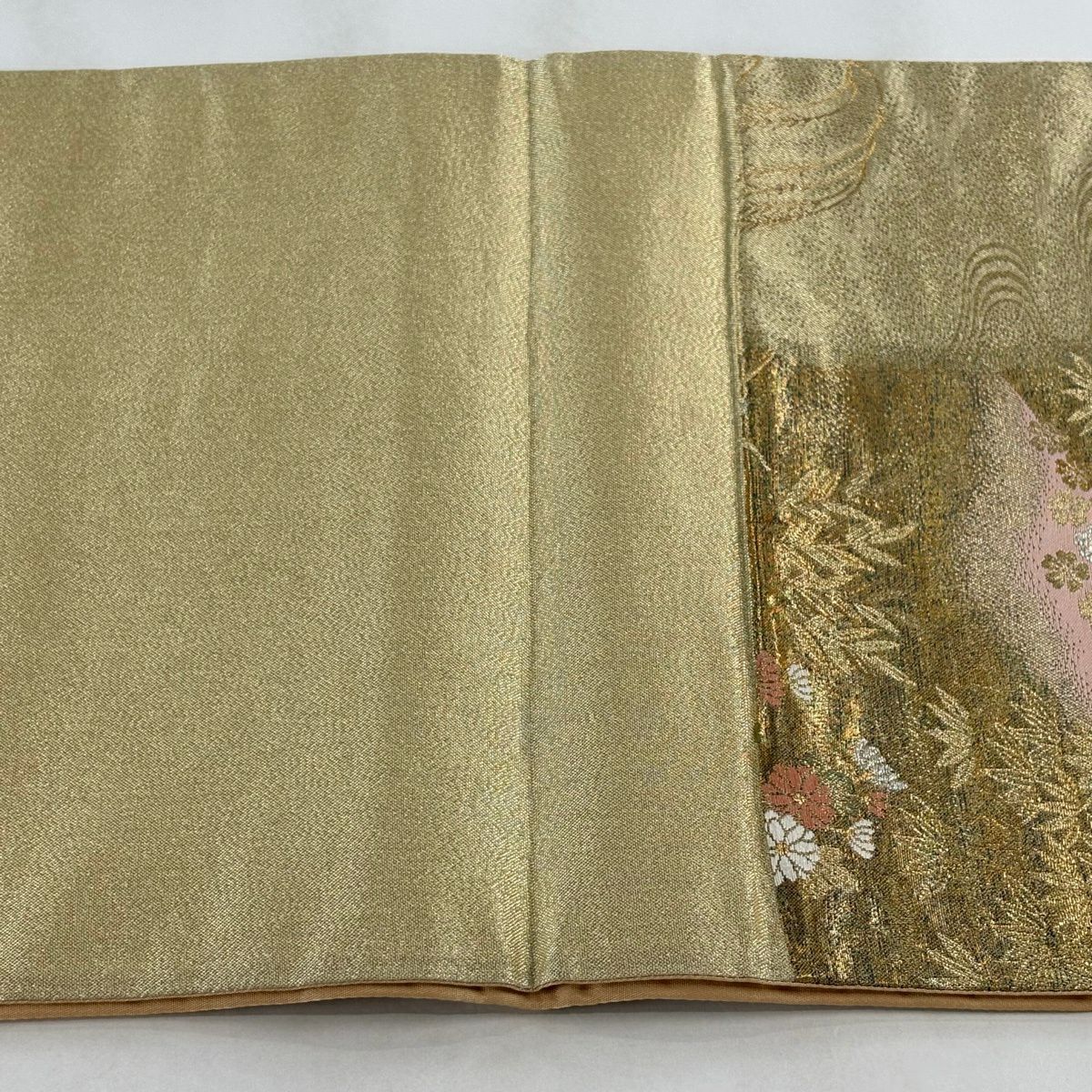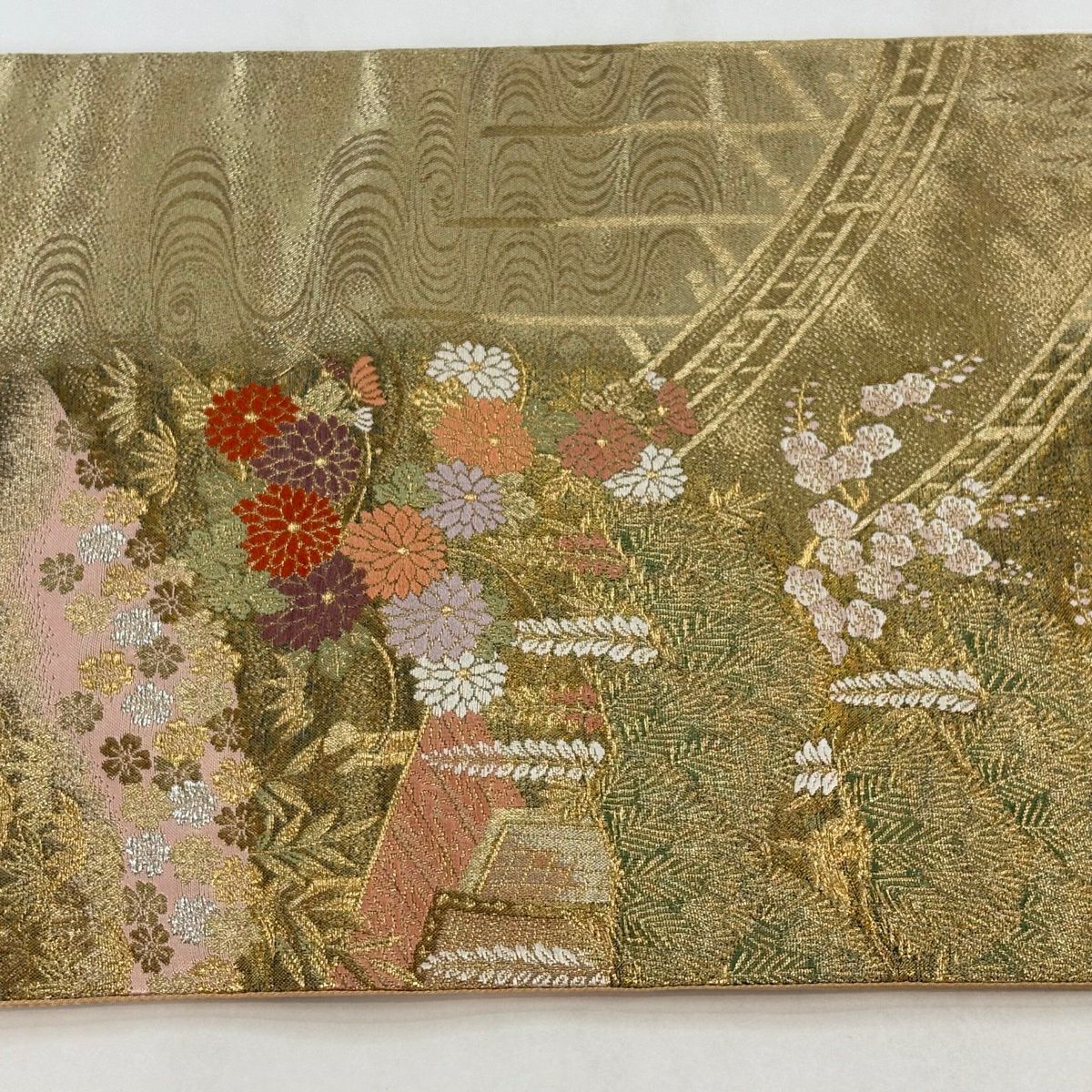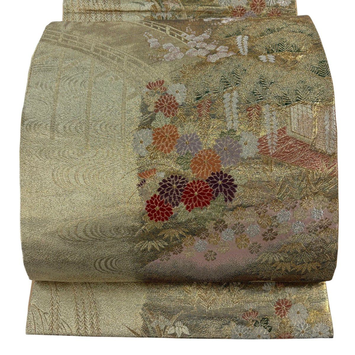 【美品】 袋帯 秀品 風景 人物 金糸 箔 金色 全通 正絹