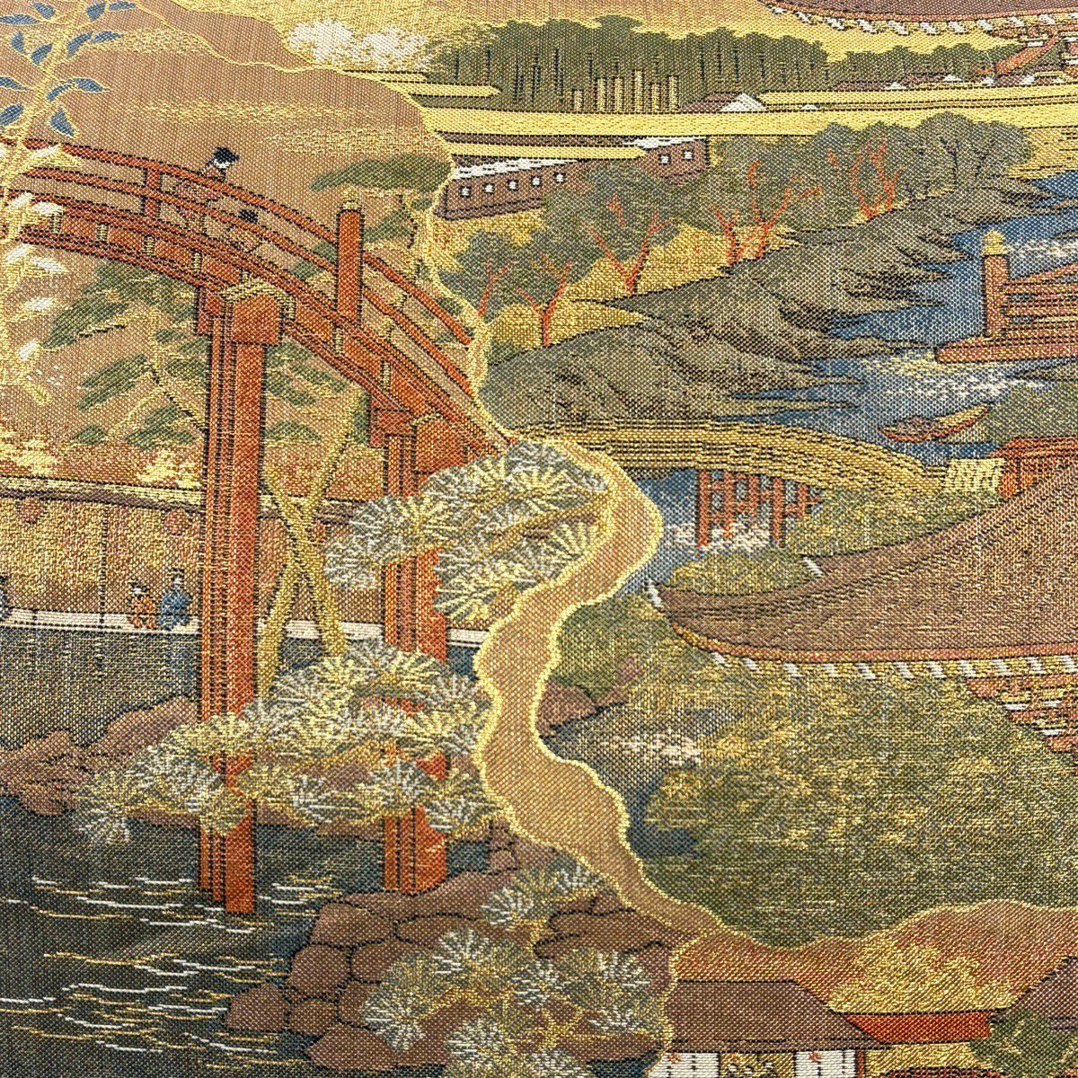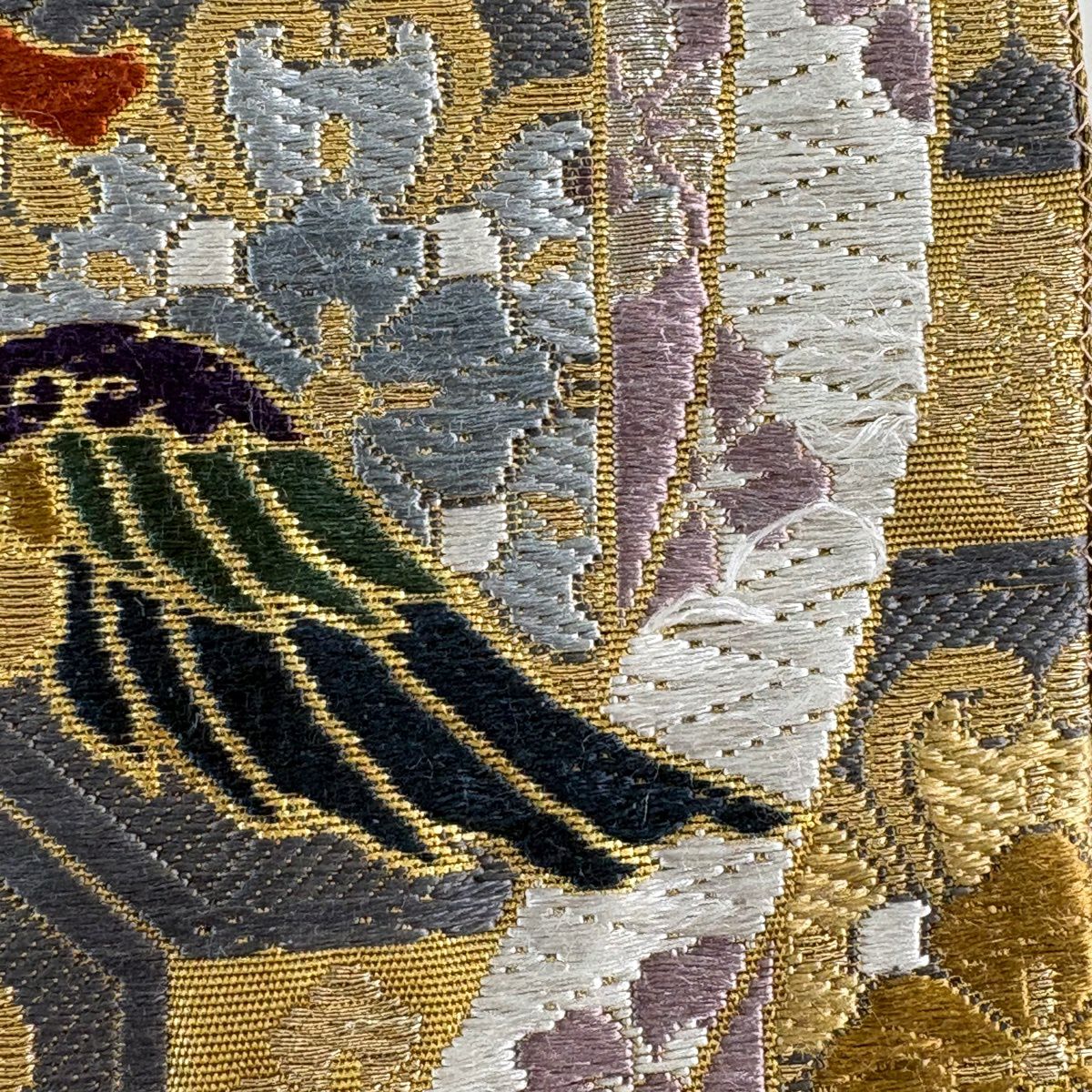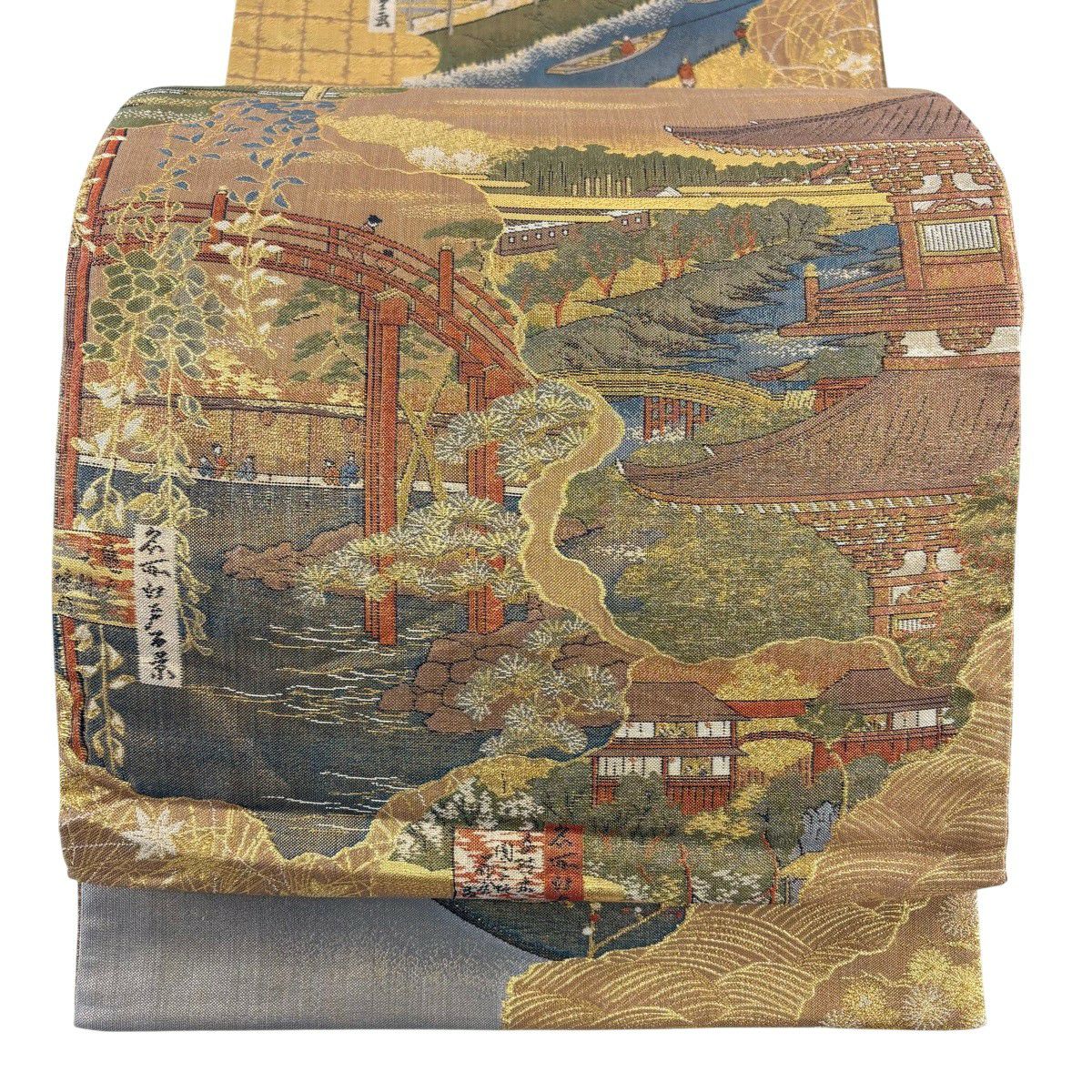 【美品】 袋帯 秀品 風景 人物 金糸 箔 金色 全通 正絹