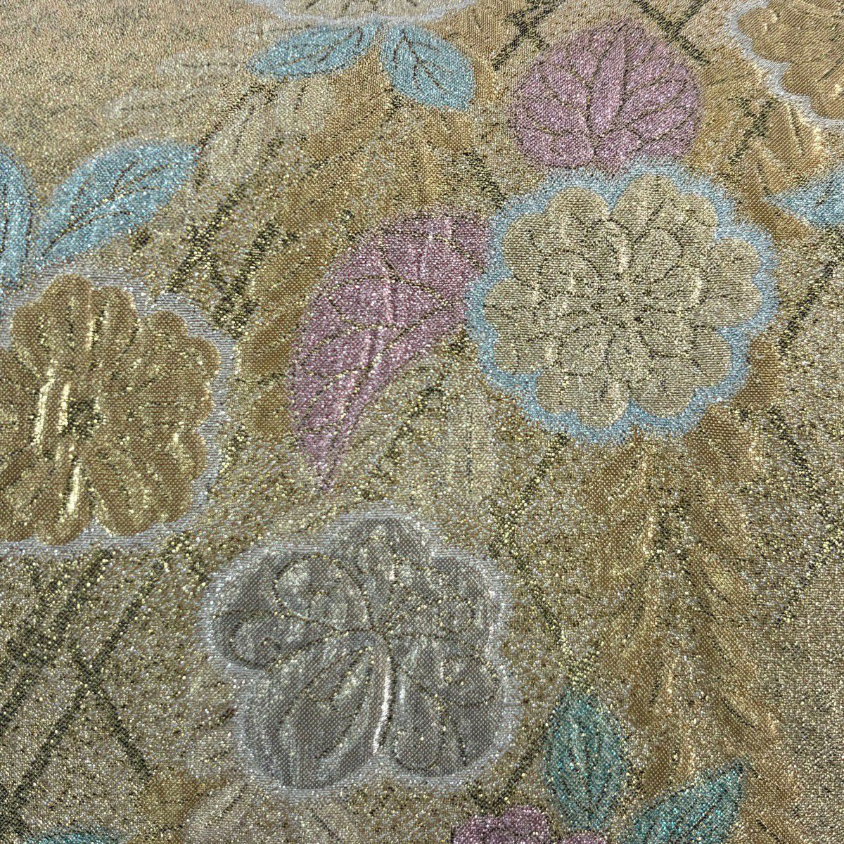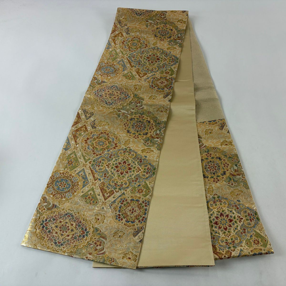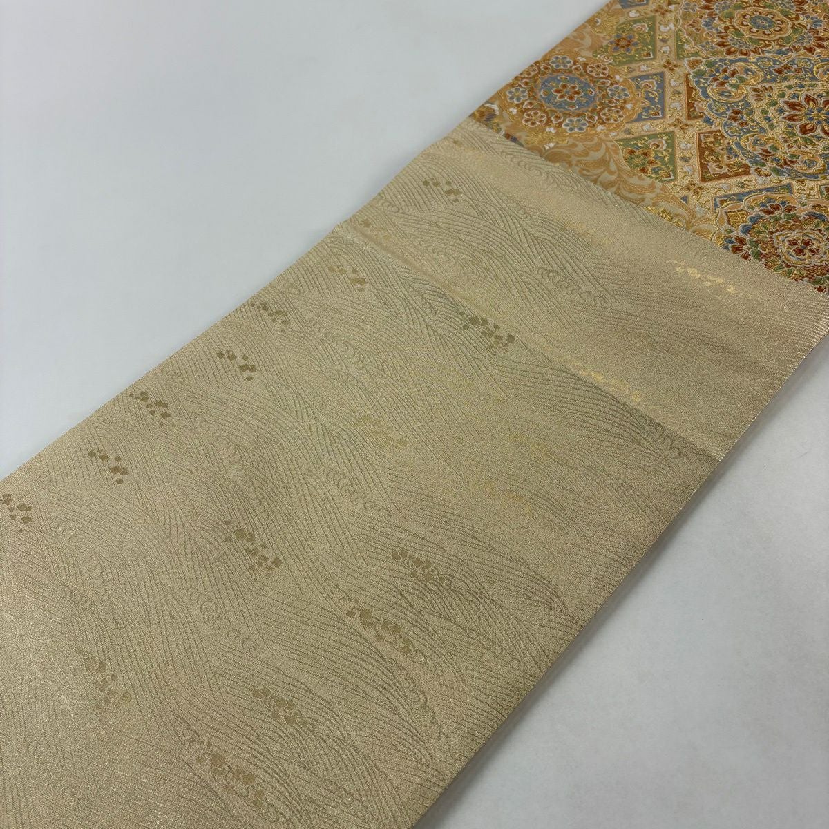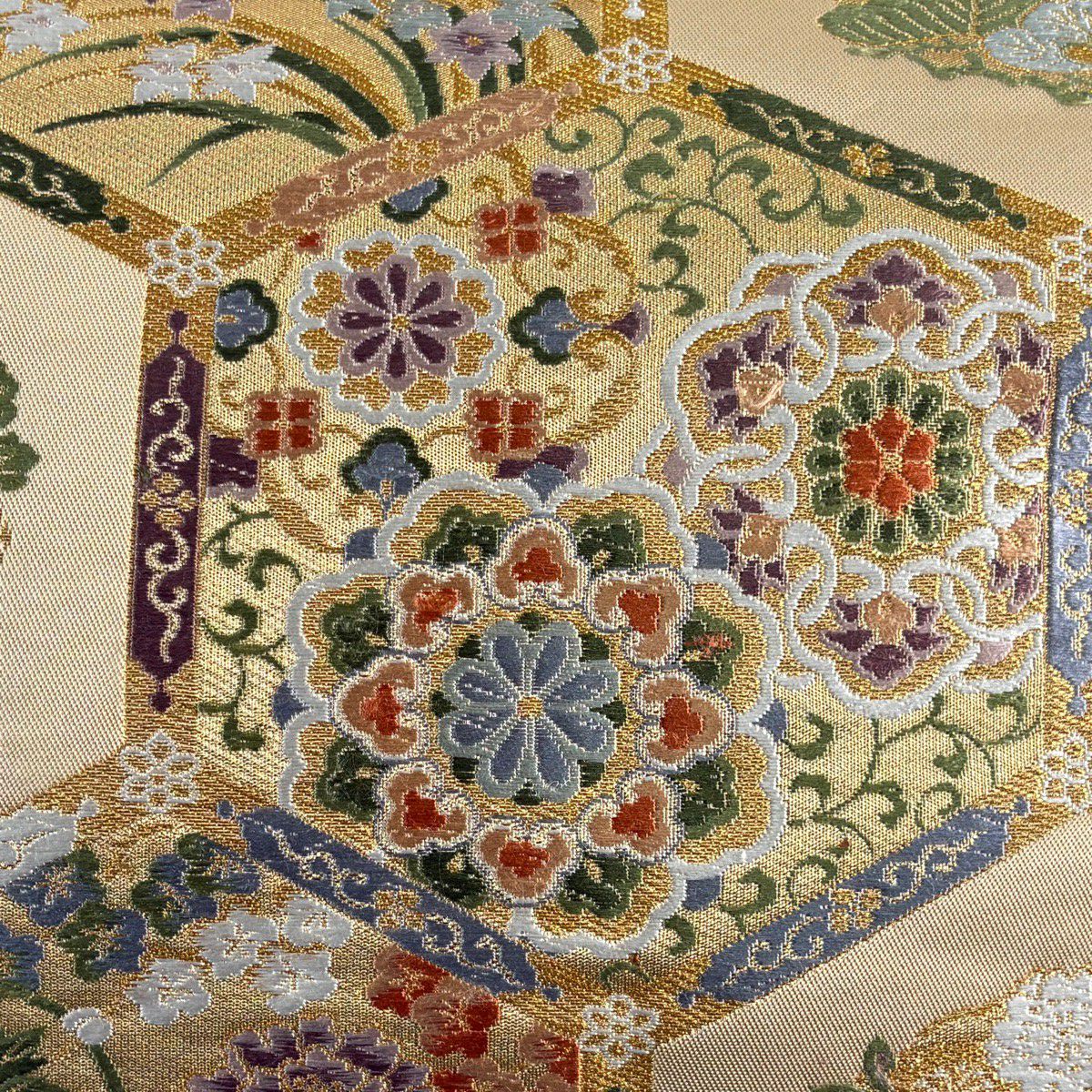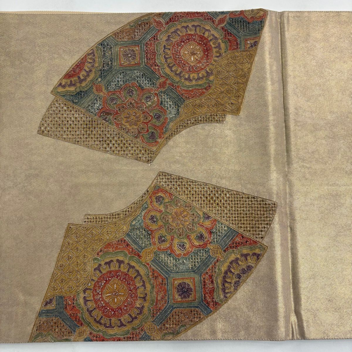 袋帯 秀品 亀甲 華文 金糸 箔 ベージュ 六通 正絹