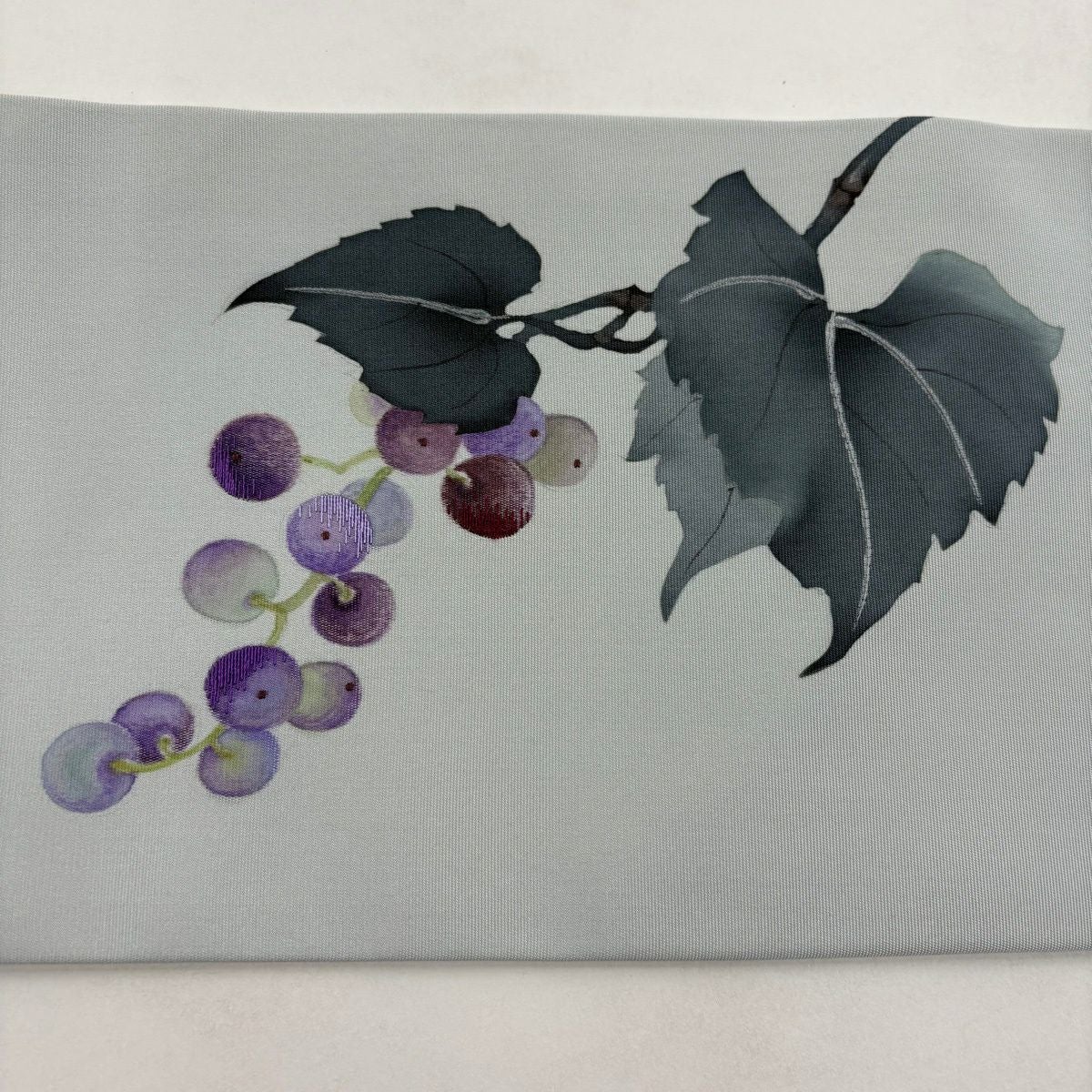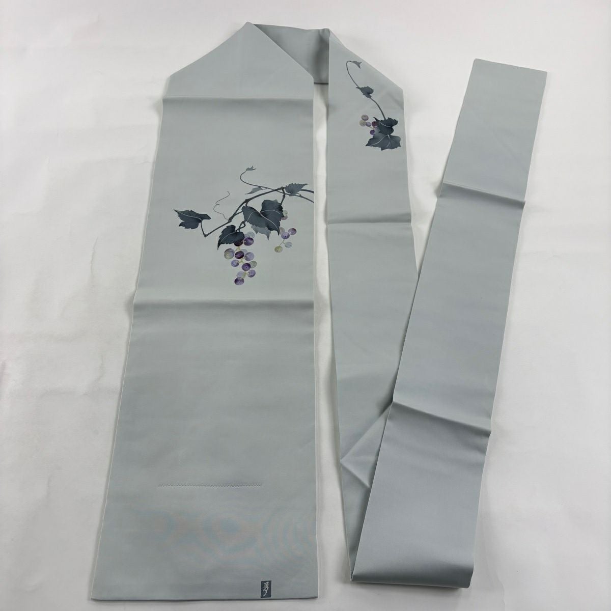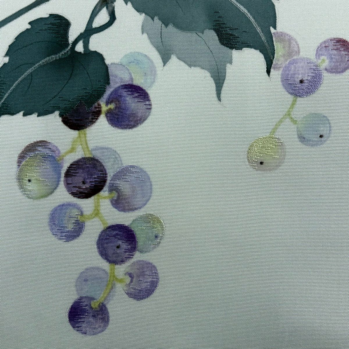 【美品】 名古屋帯 秀品 落款あり 葡萄 刺繍 薄緑 正絹