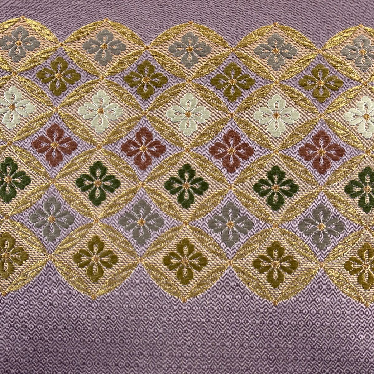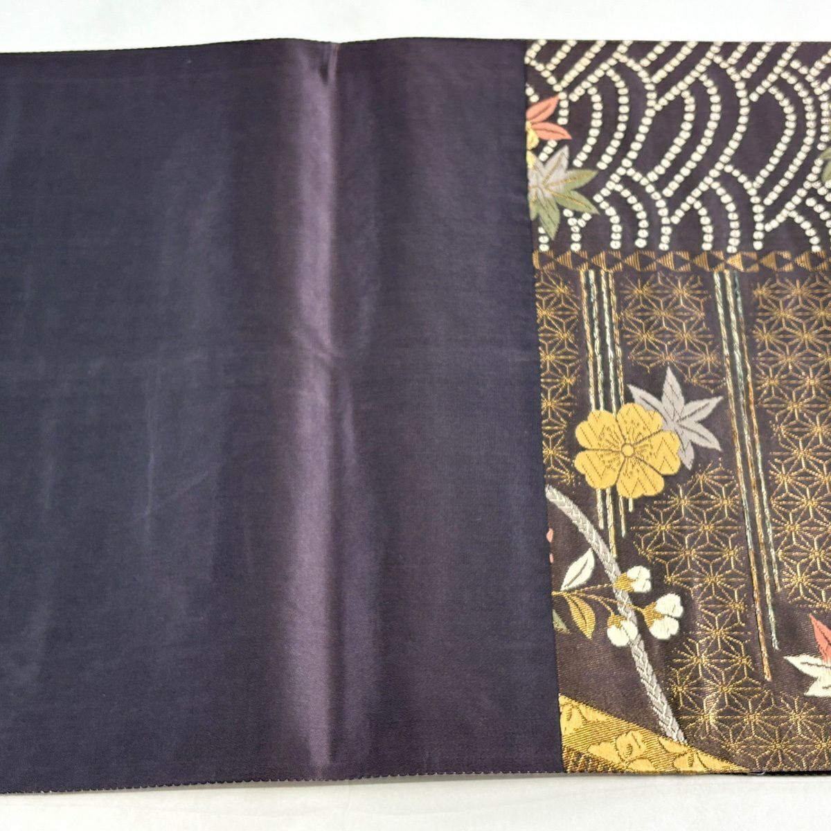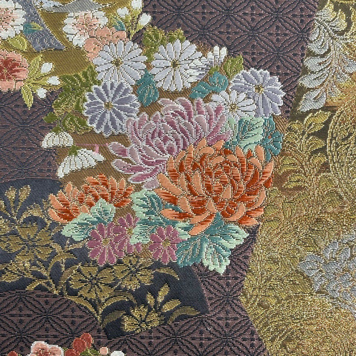袋帯 秀品 雅美 花丸文 扇面 金銀糸 箔 紫 六通 正絹