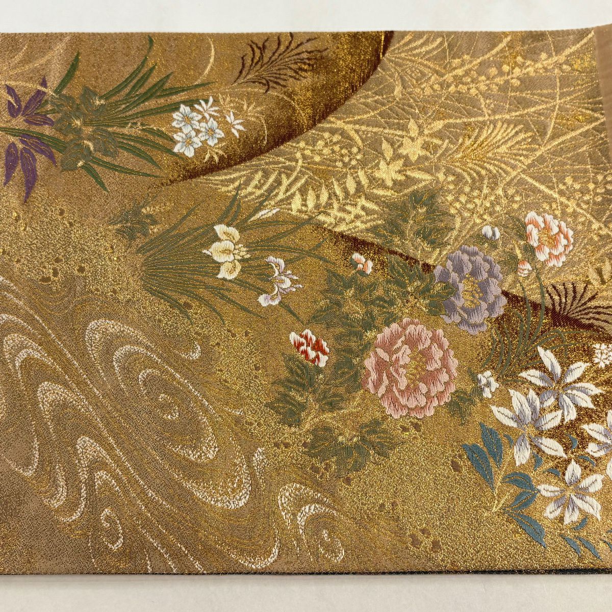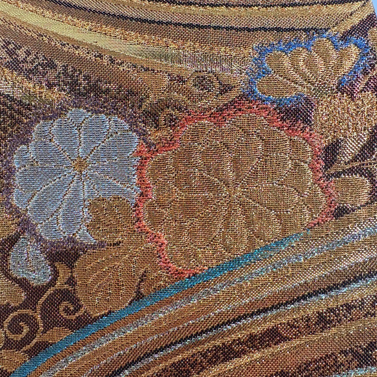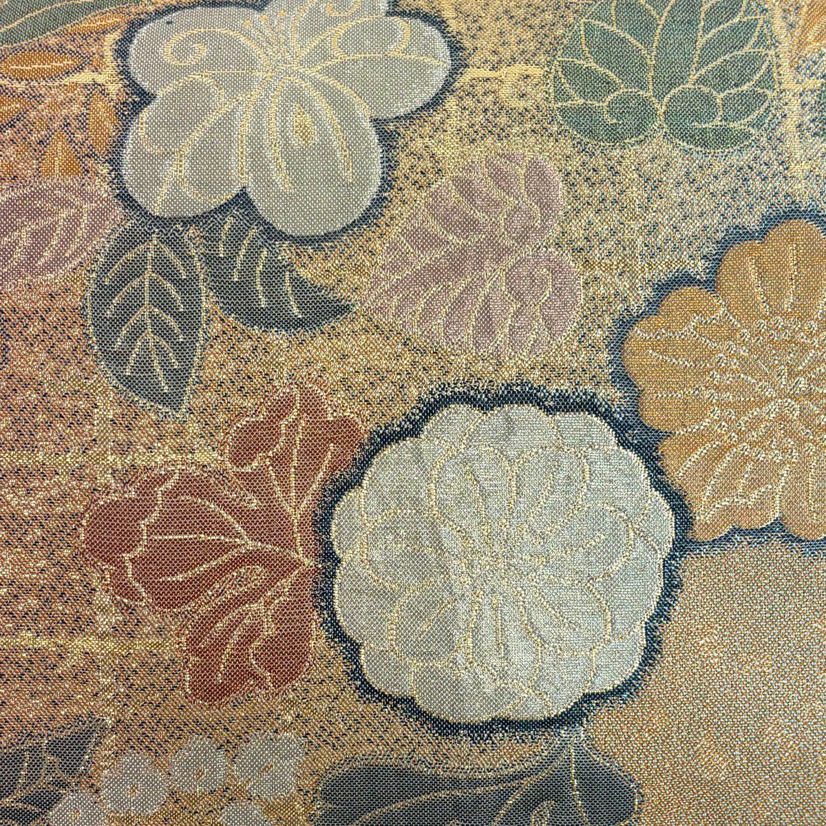 【美品】 袋帯 秀品 菊 波頭 金糸 唐織 金色 六通 正絹