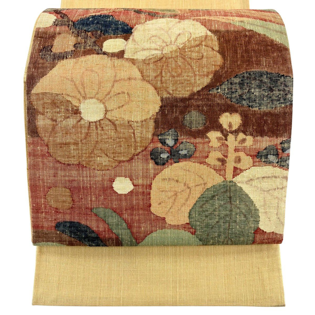 袋帯 秀品 紬地 関西仕立て 梅 松 茶色 お太鼓柄 正絹