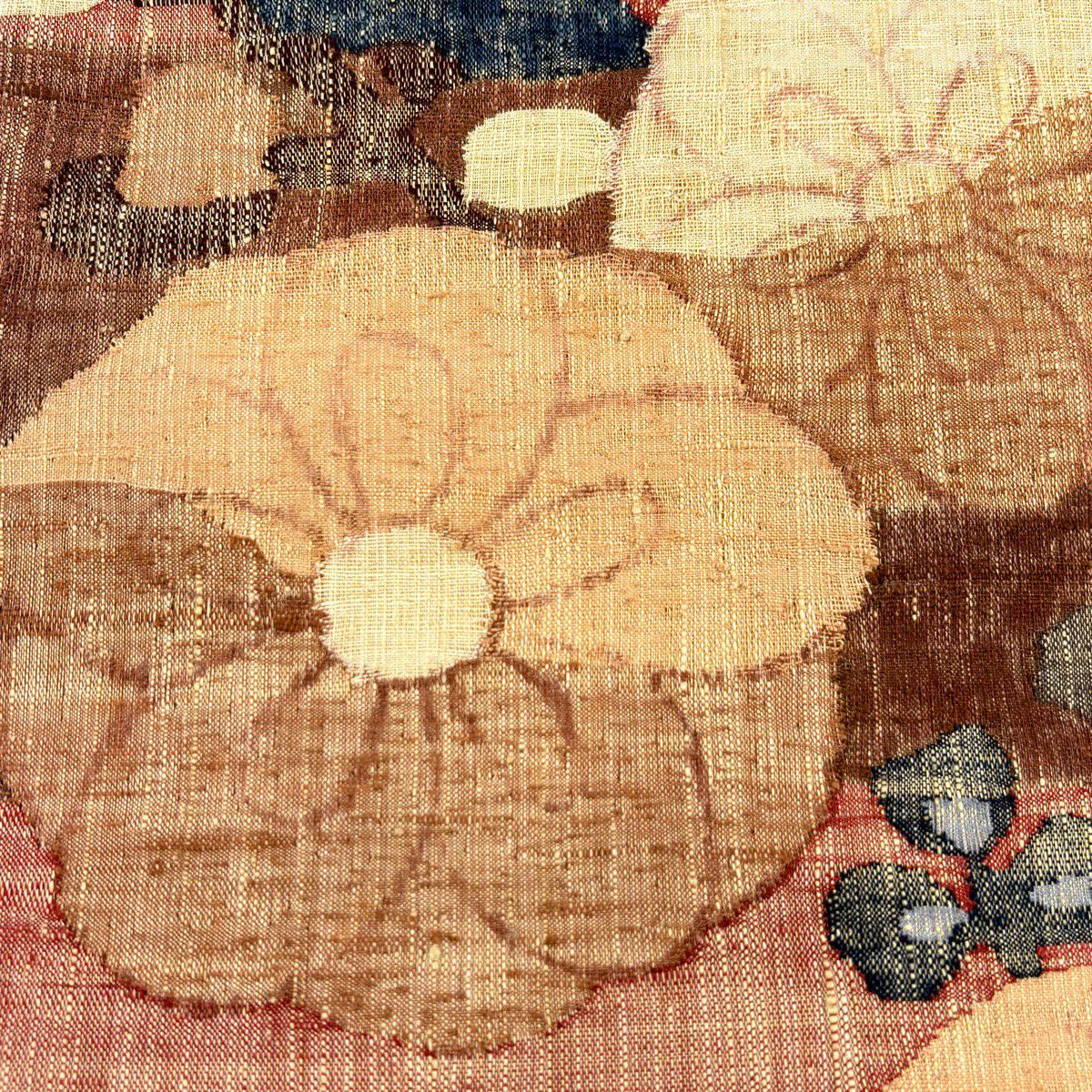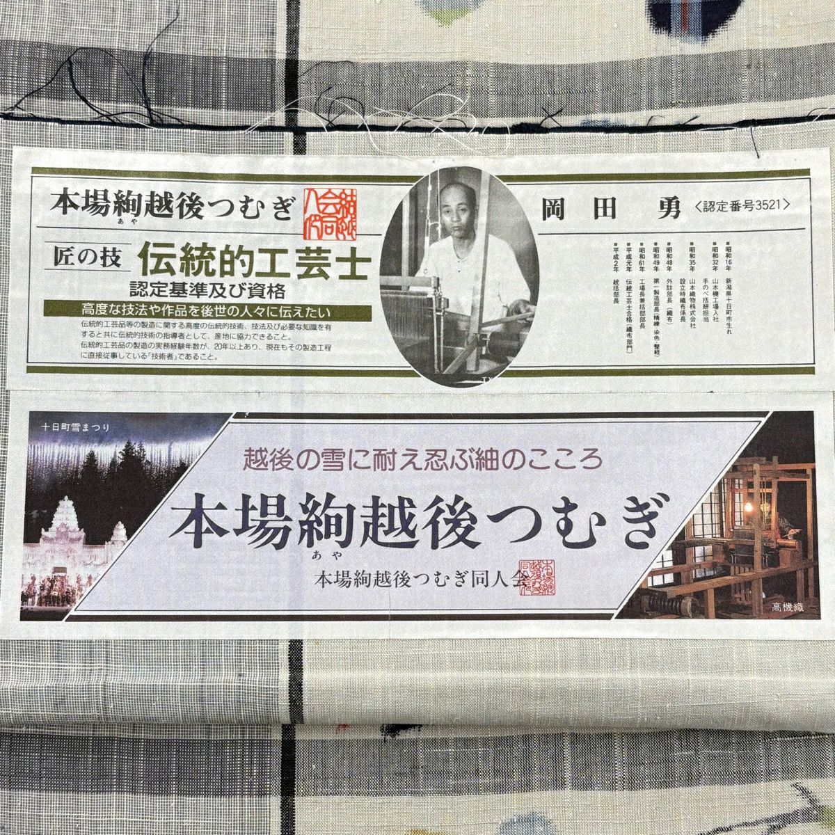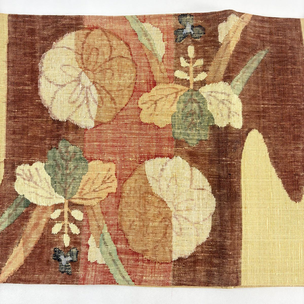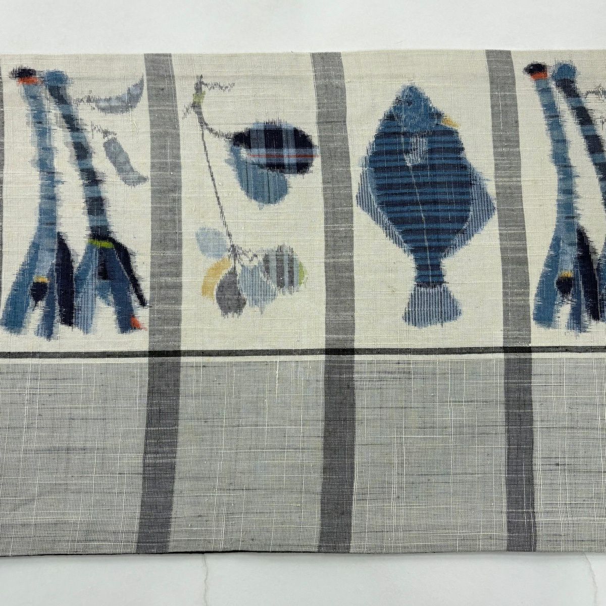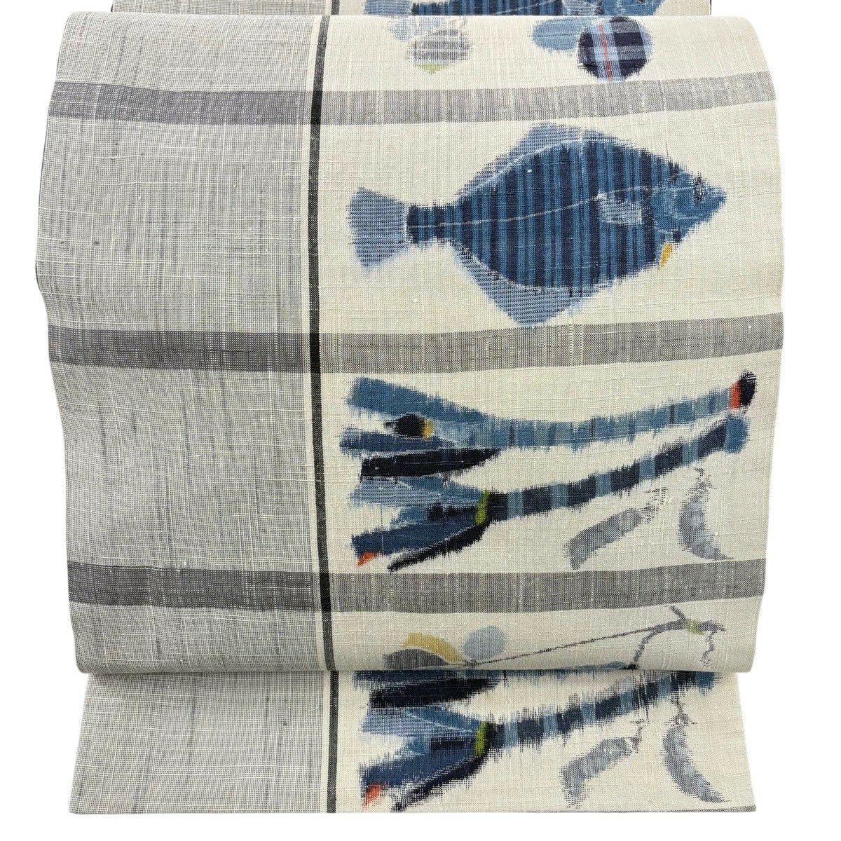 袋帯 秀品 本場絢越後つむぎ地 魚 野菜 灰色 全通 正絹