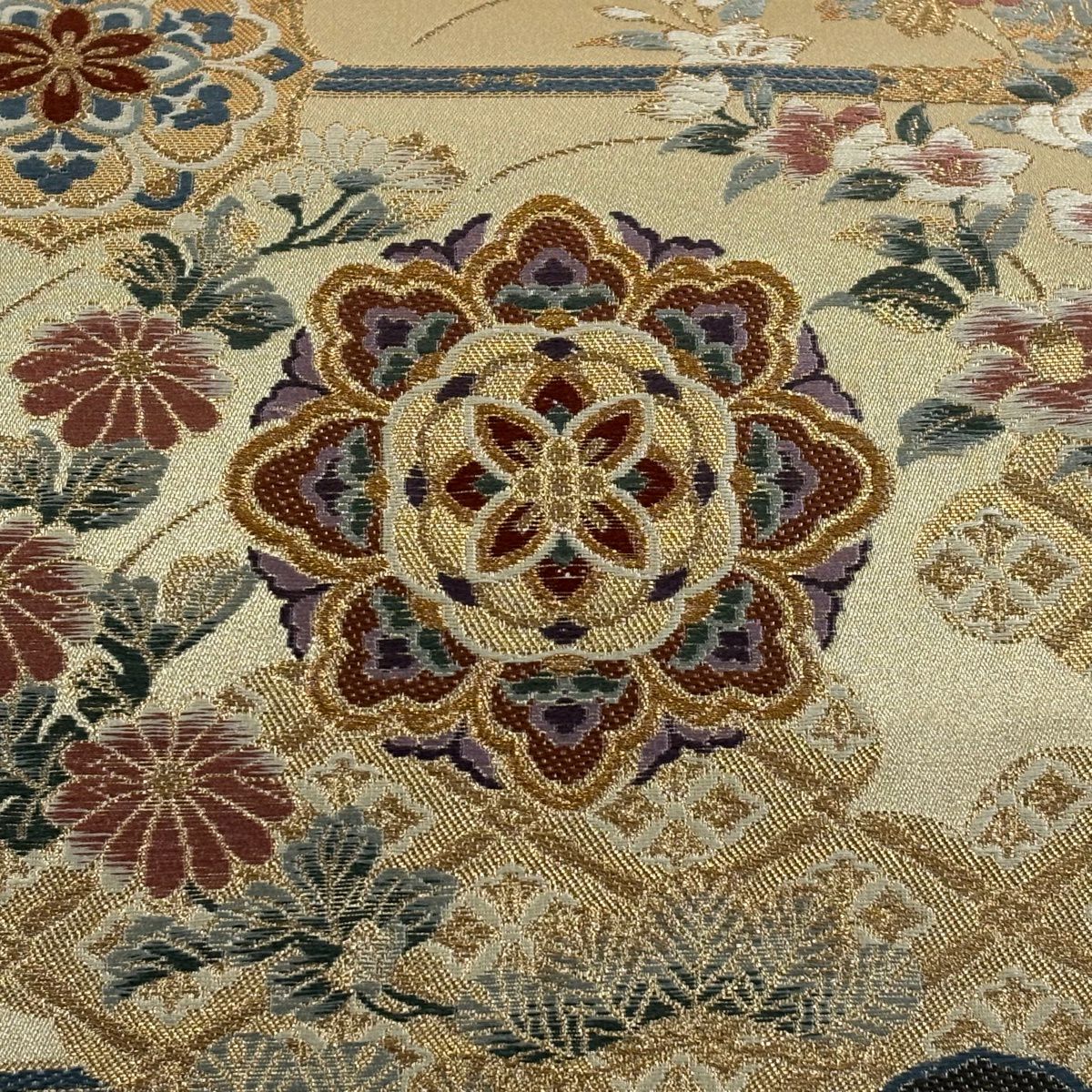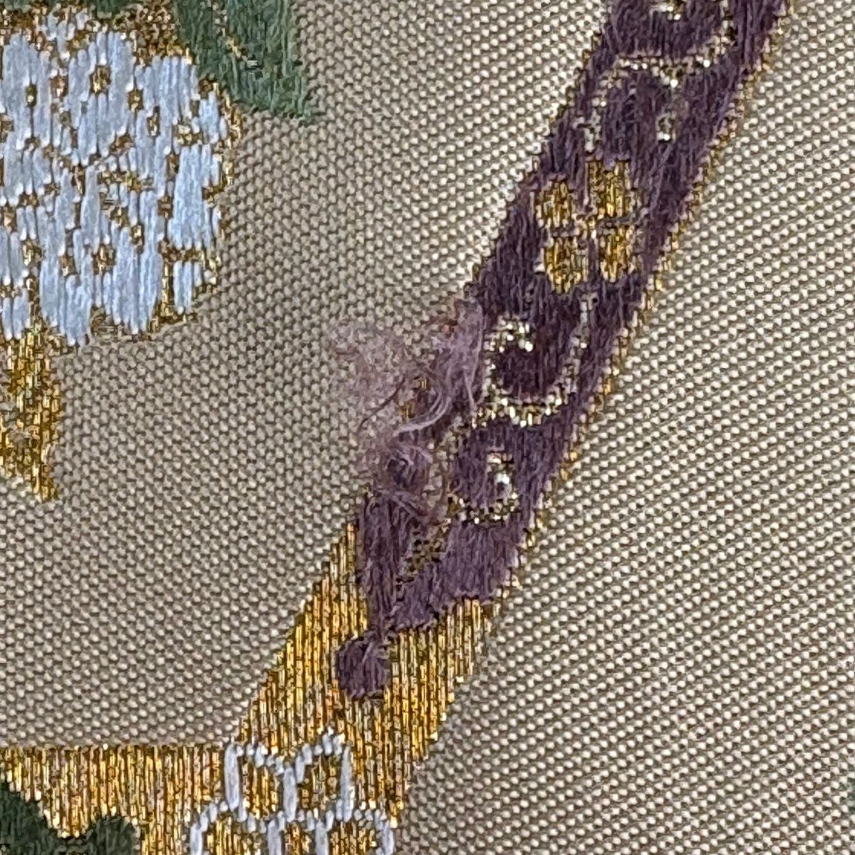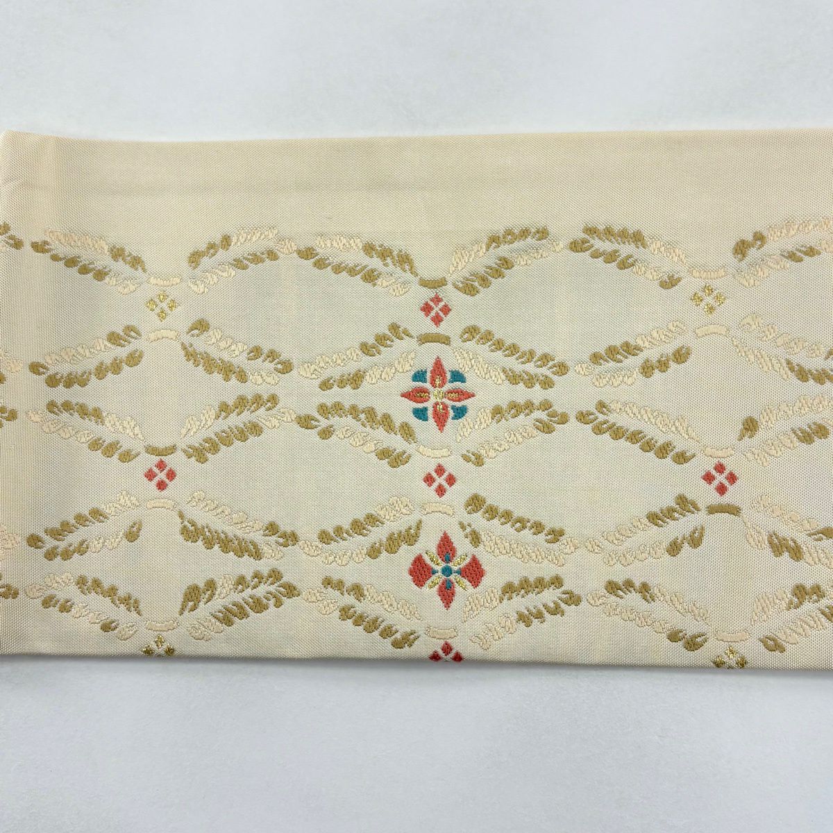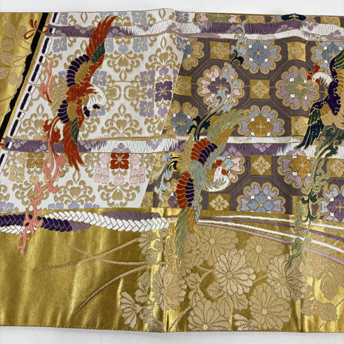 袋帯 秀品 華文 花鳥 刺繍 箔 ベージュ 六通 正絹
