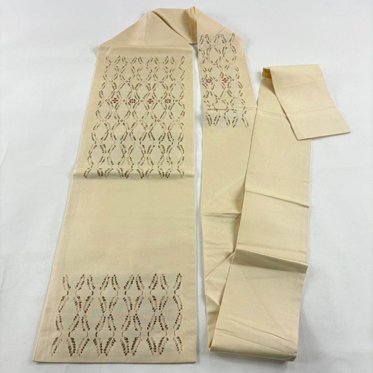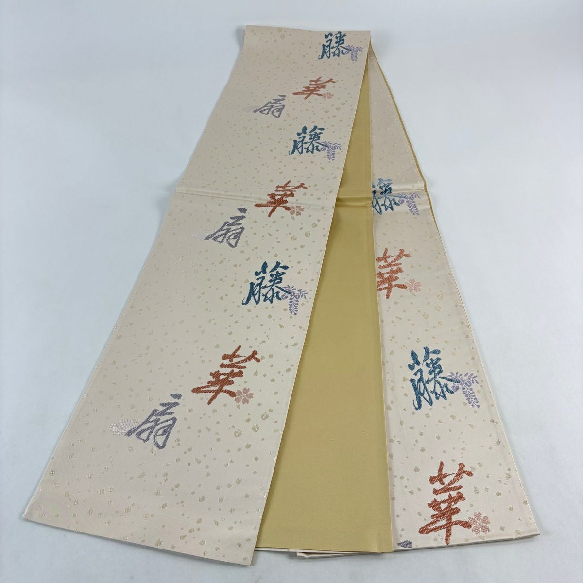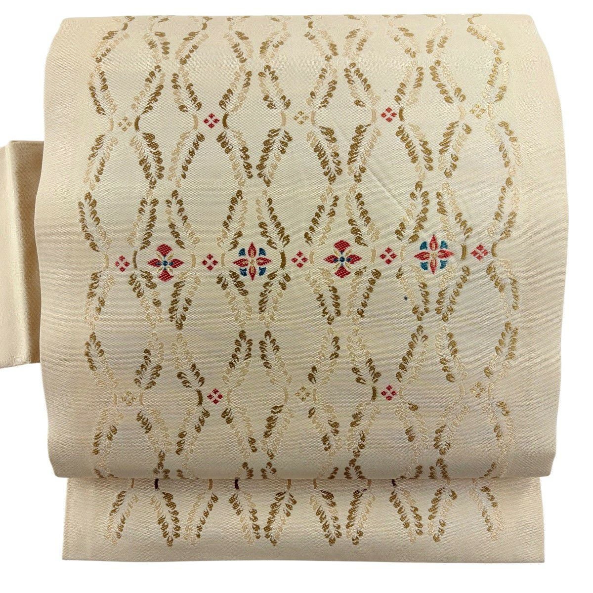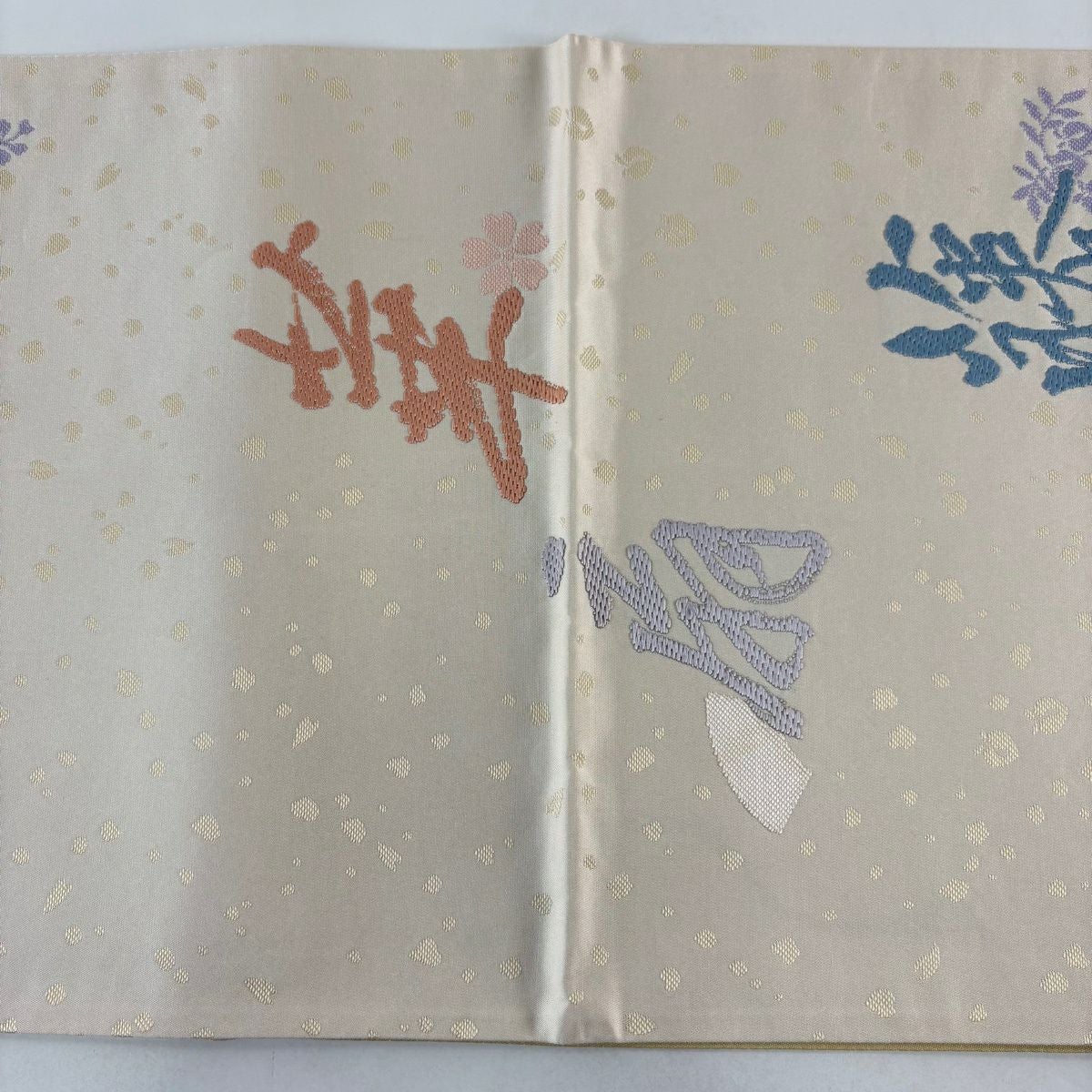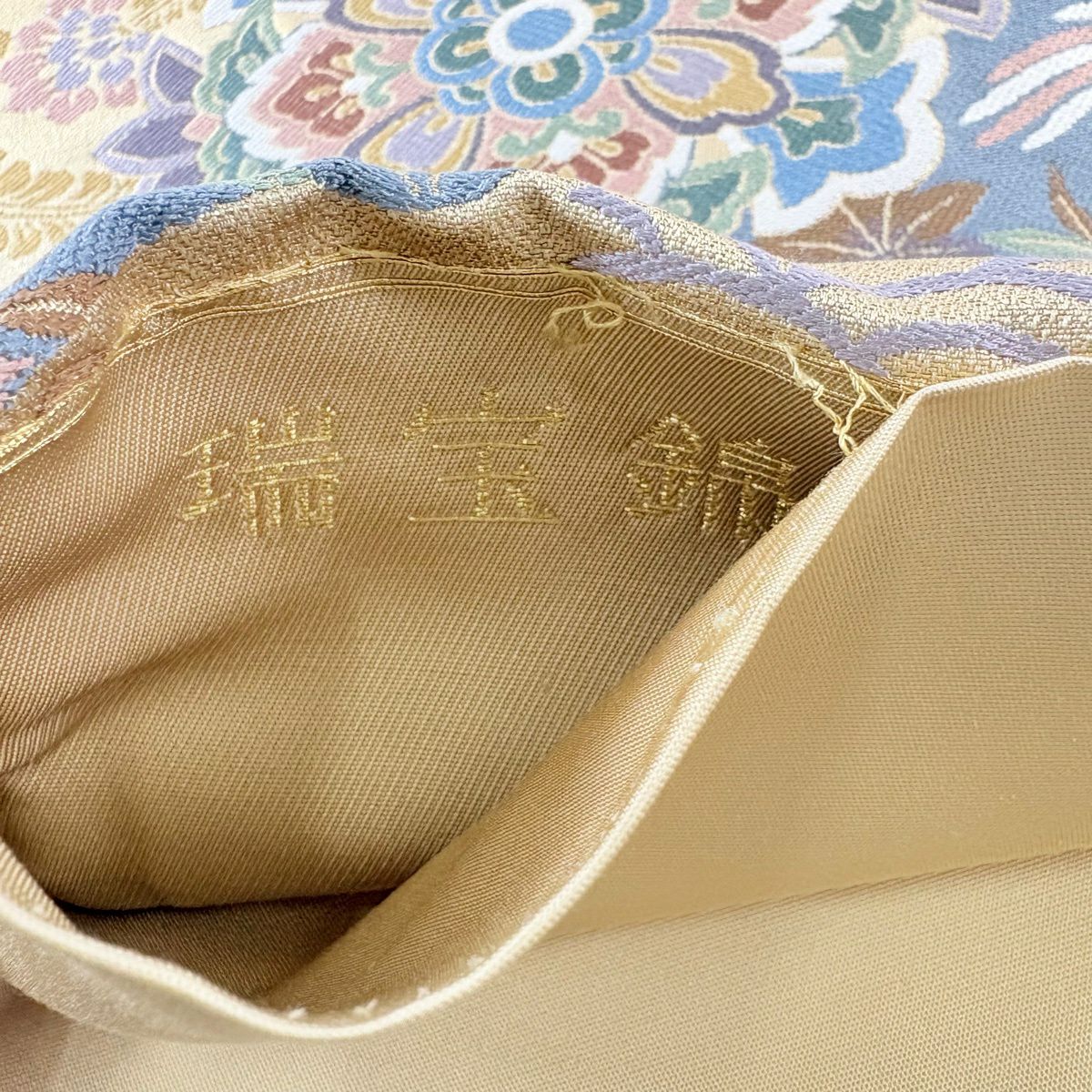 袋帯 秀品 華文 花鳥 刺繍 箔 ベージュ 六通 正絹