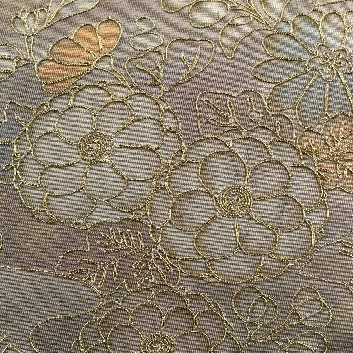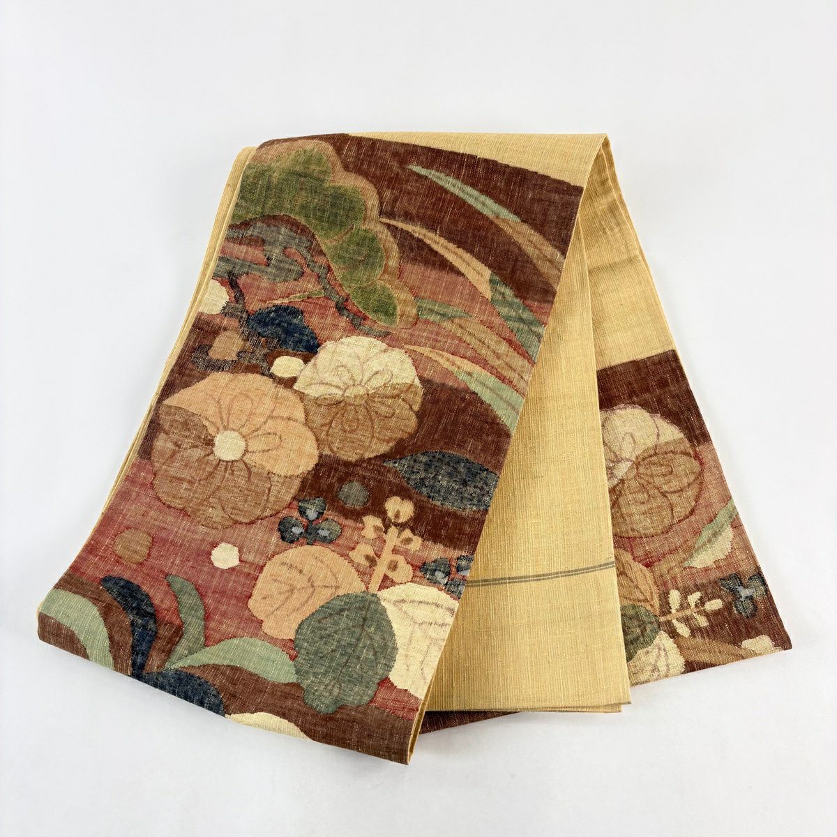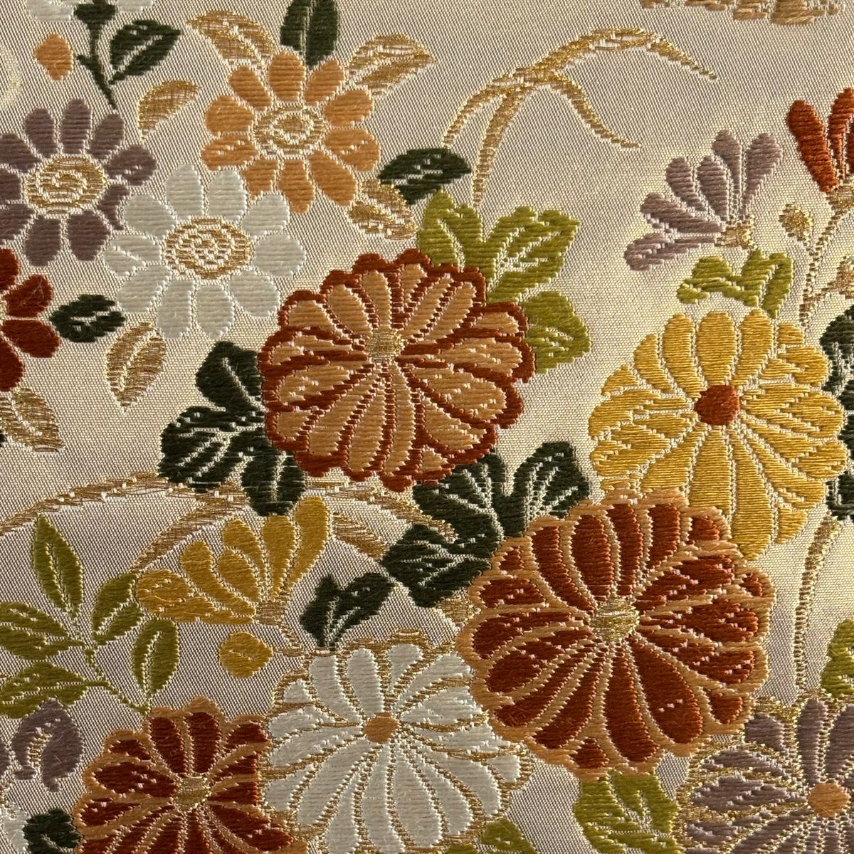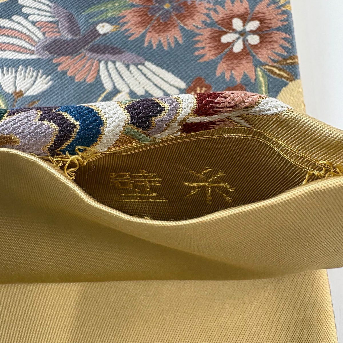 袋帯 秀品 華文 花鳥 刺繍 箔 ベージュ 六通 正絹