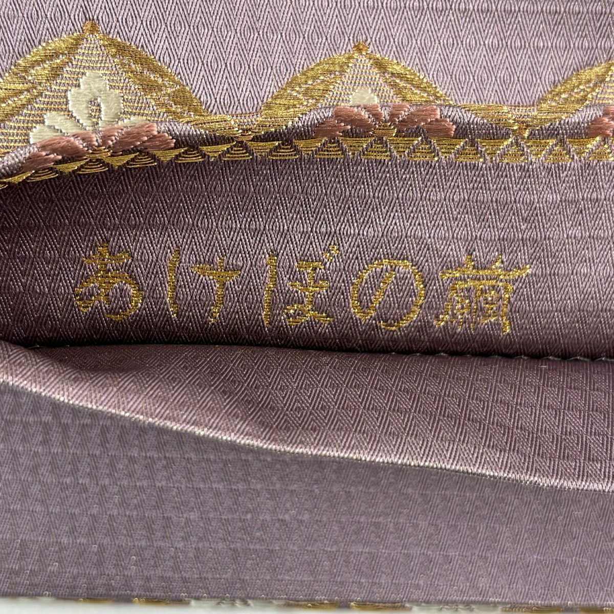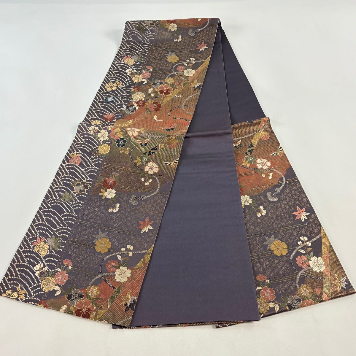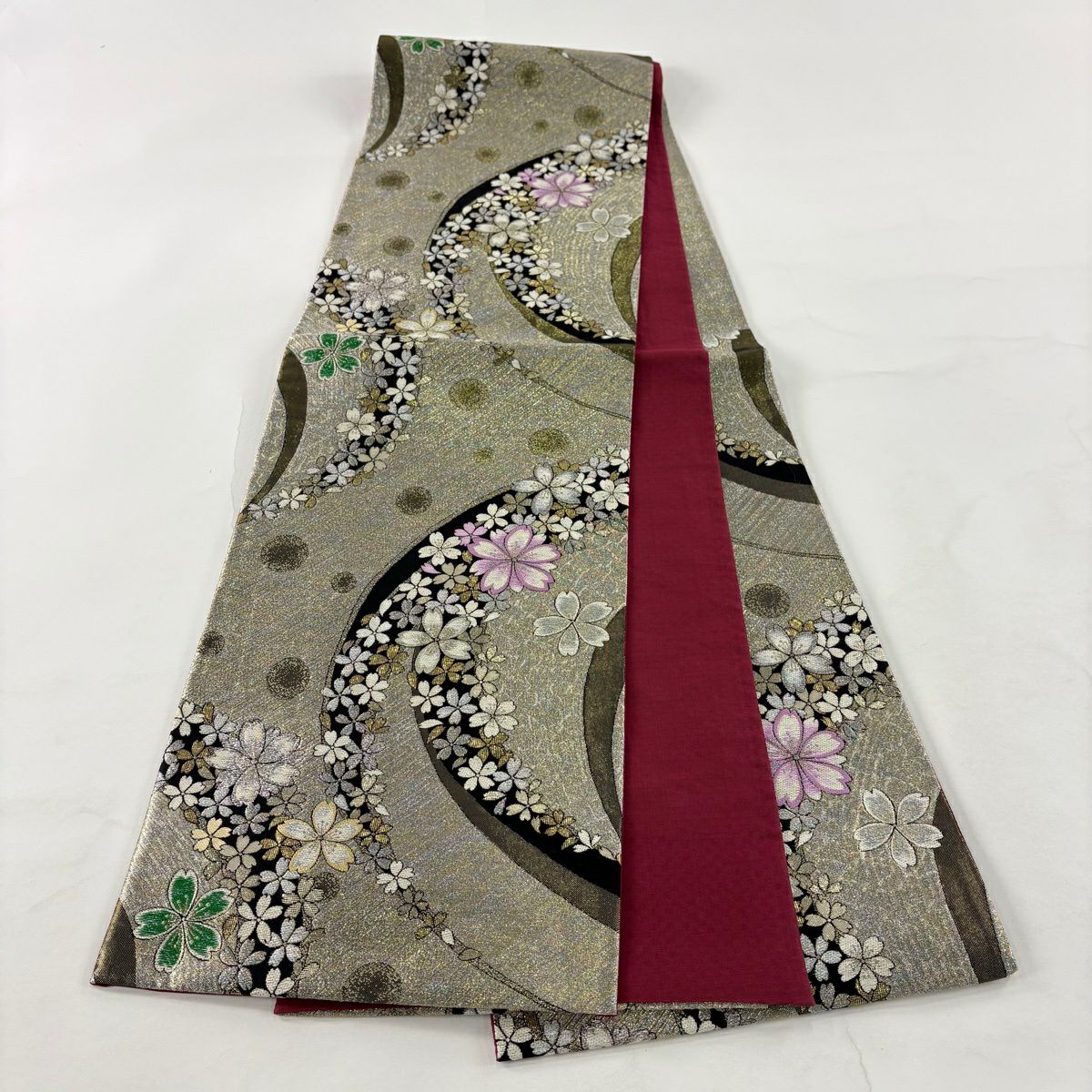 【美品】 袋帯 秀品 桜 組紐 唐織 箔 灰紫 六通 正絹