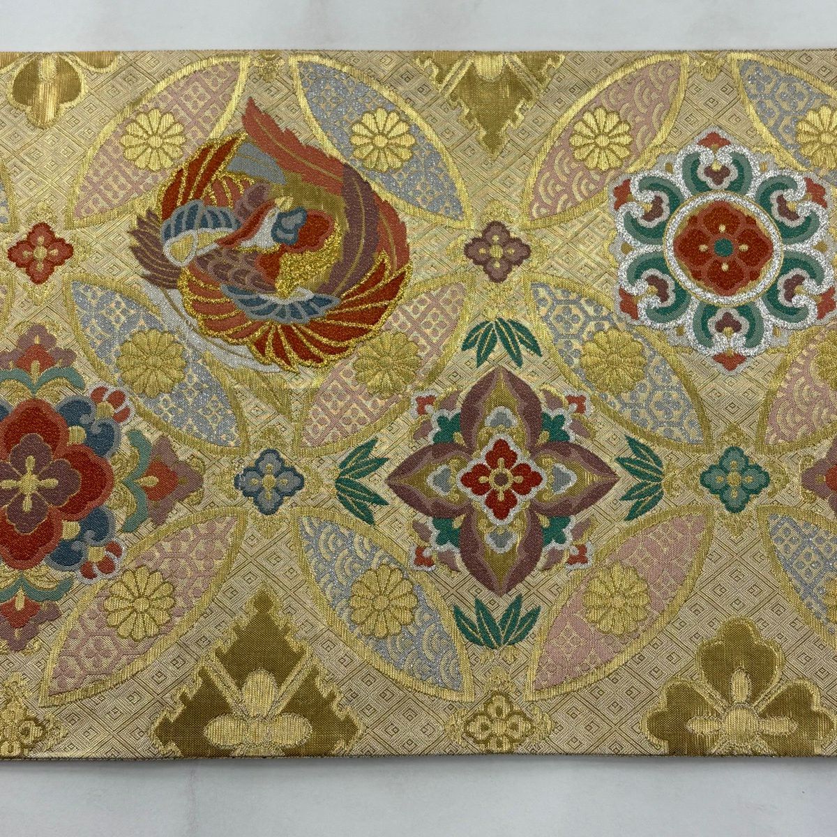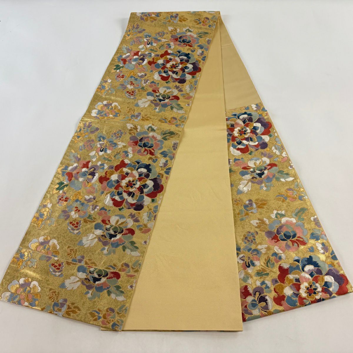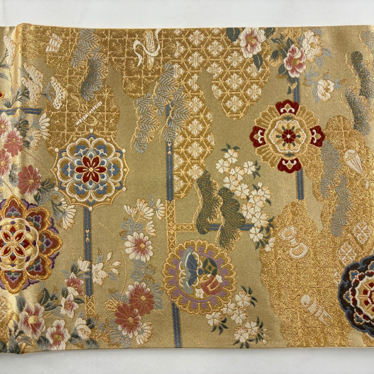 【美品】 袋帯 秀品 華苑織宝文 金糸 箔 金色 六通 正絹