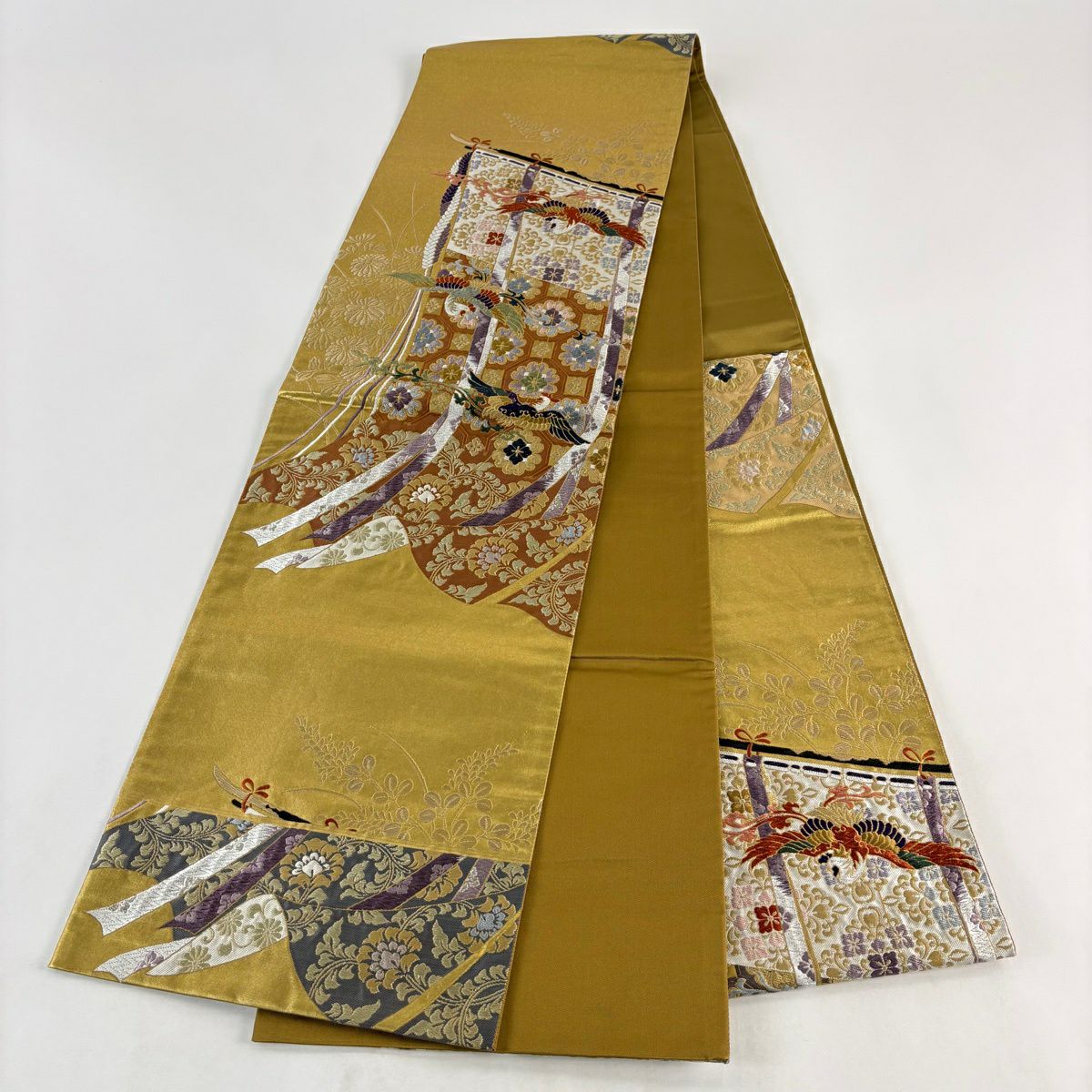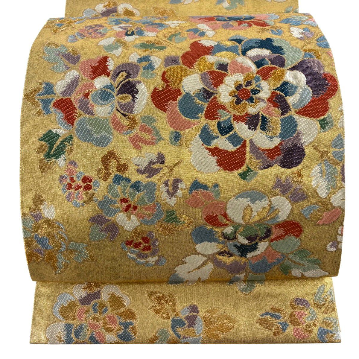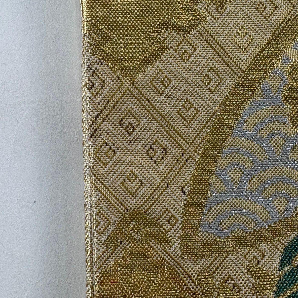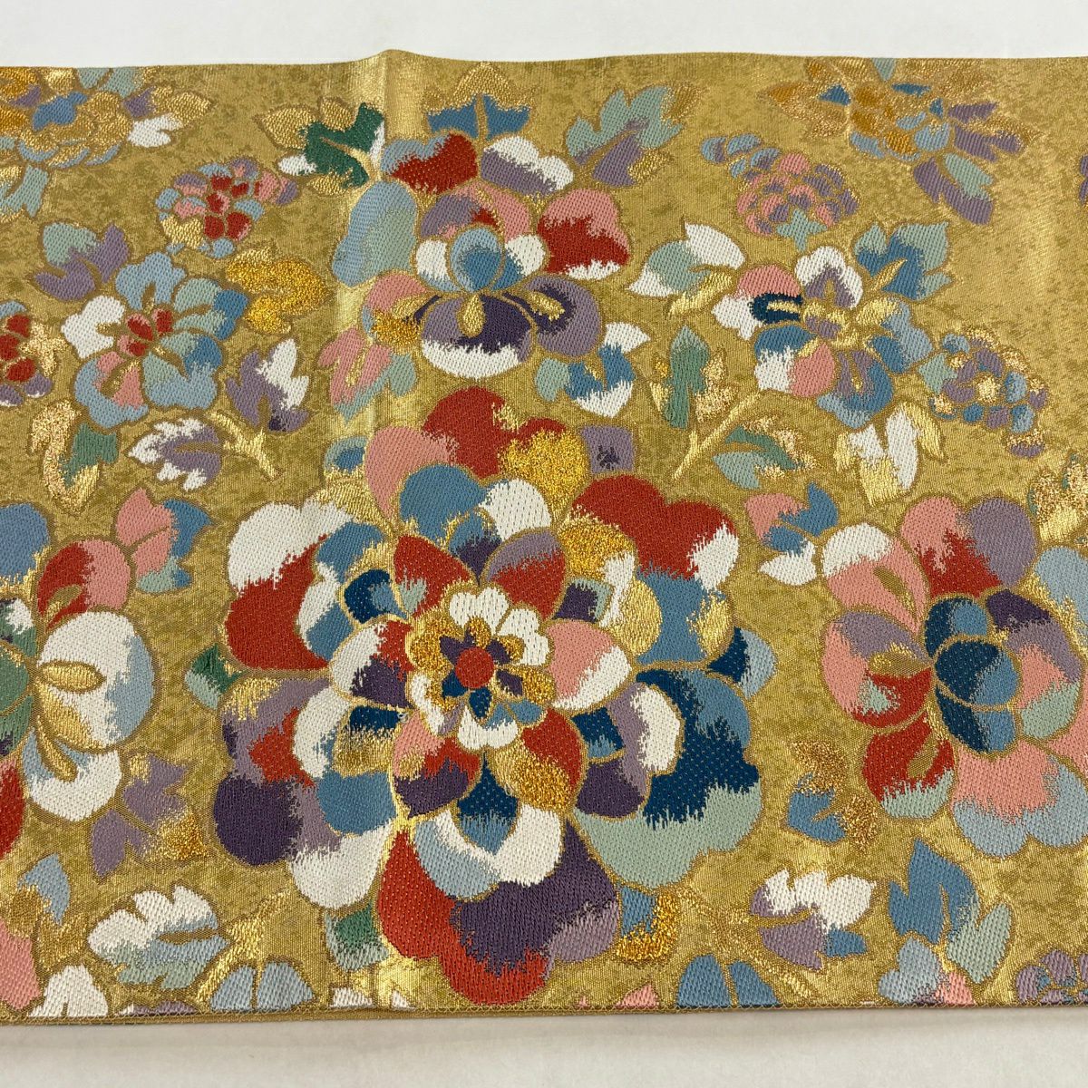 【美品】 袋帯 秀品 華苑織宝文 金糸 箔 金色 六通 正絹