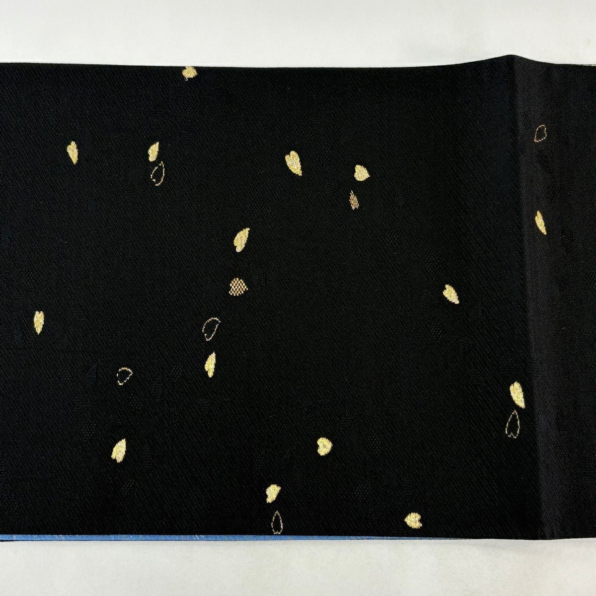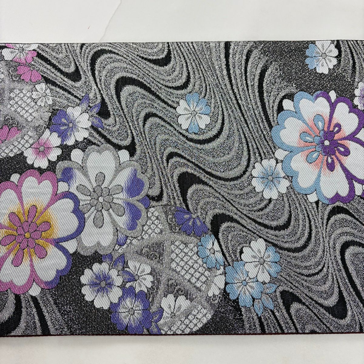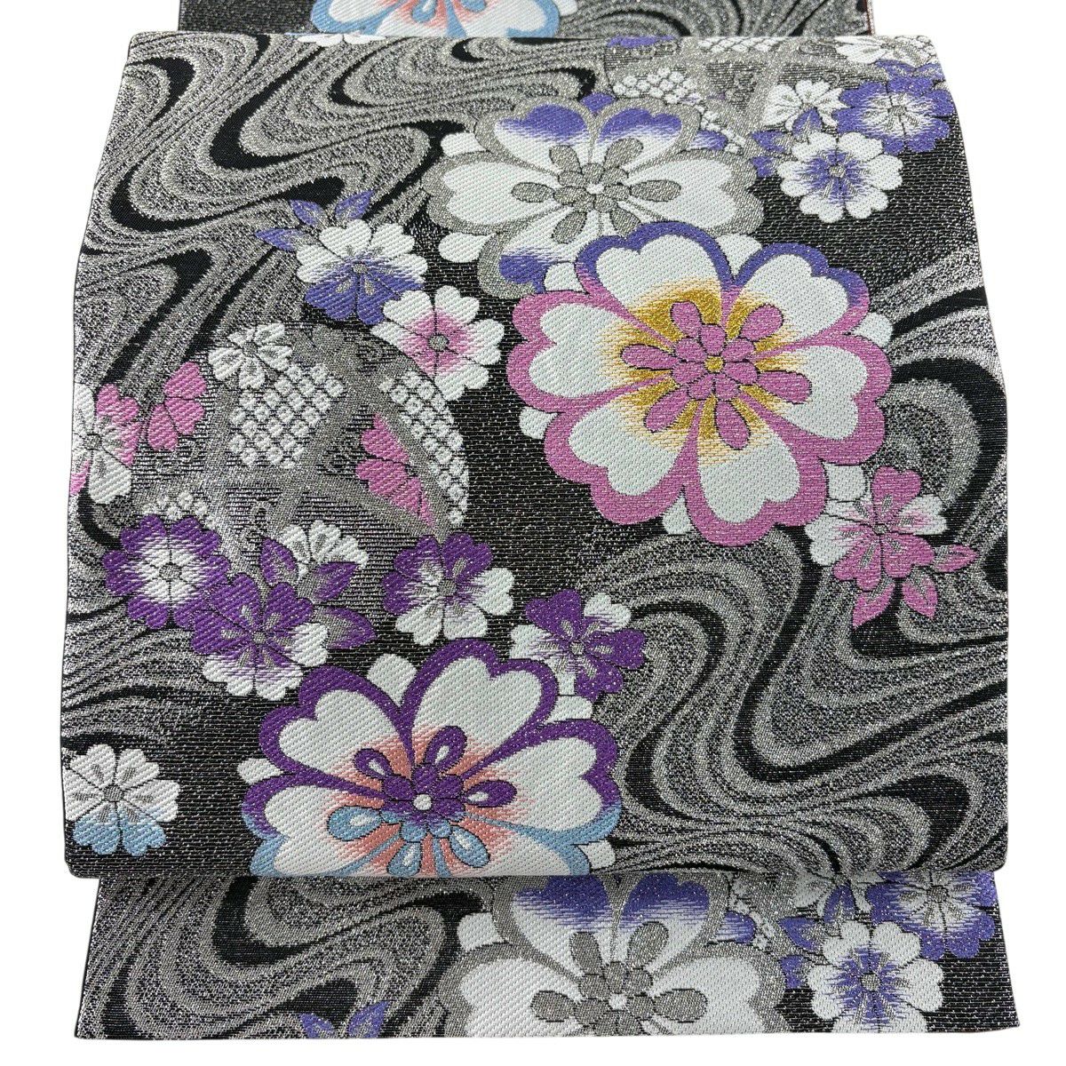 【美品】 袋帯 秀品 桜 流水 金銀糸 箔 黒 六通 正絹