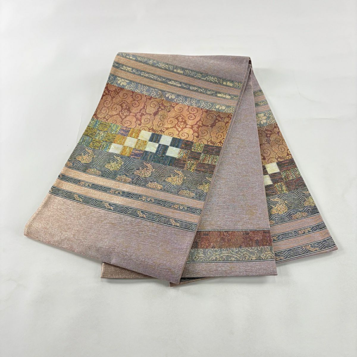 袋帯 秀品 荒磯 筋斗雲 螺鈿箔 箔 灰紫 お太鼓柄 正絹