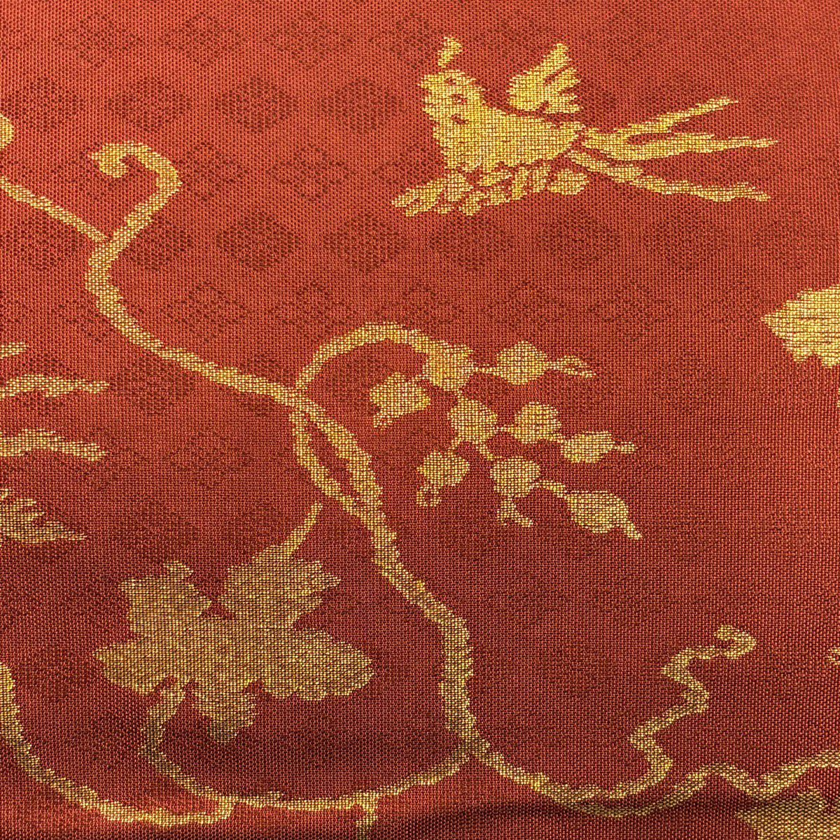 【美品】 袋帯 秀品 ぶどう唐草 鳥 箔 朱色 全通 正絹