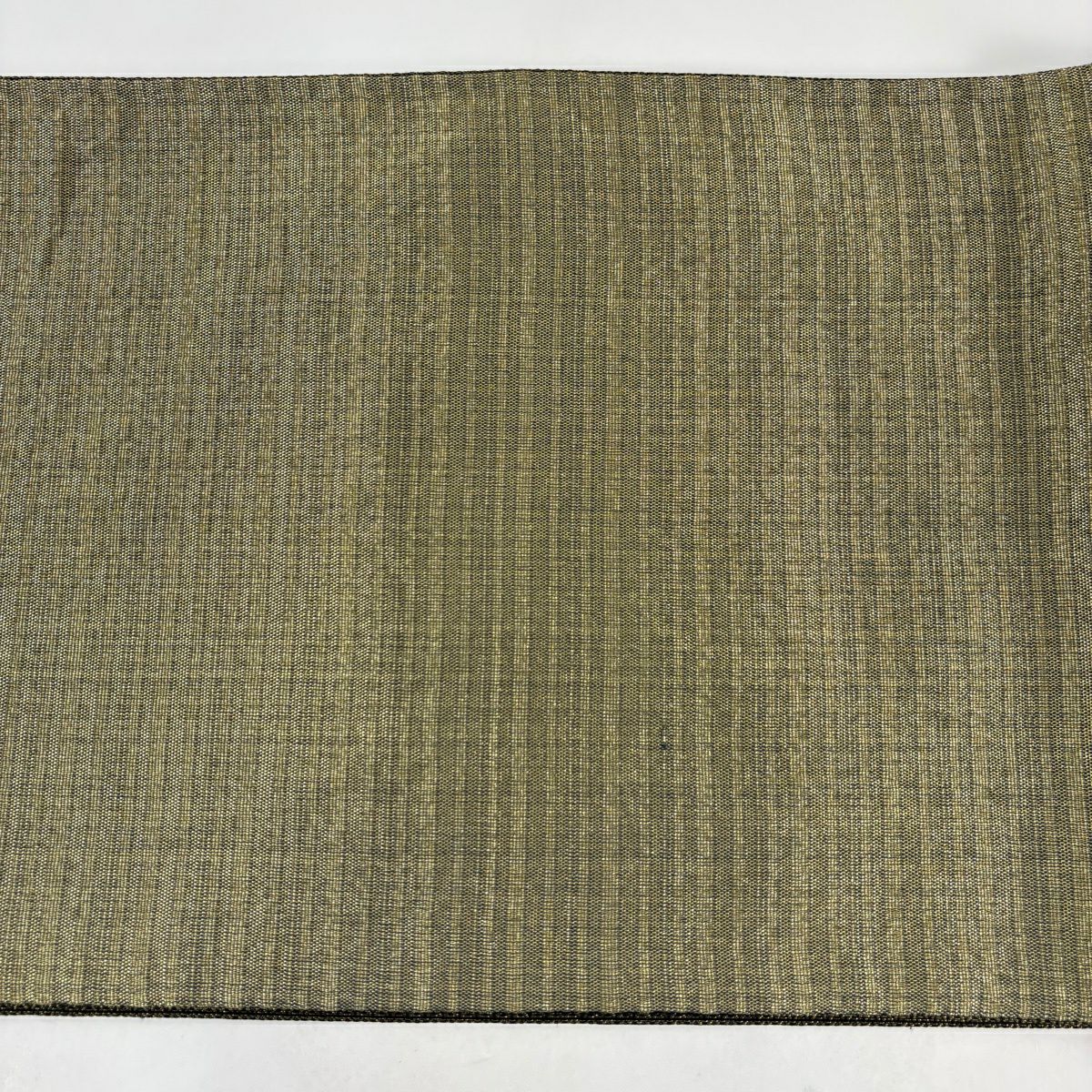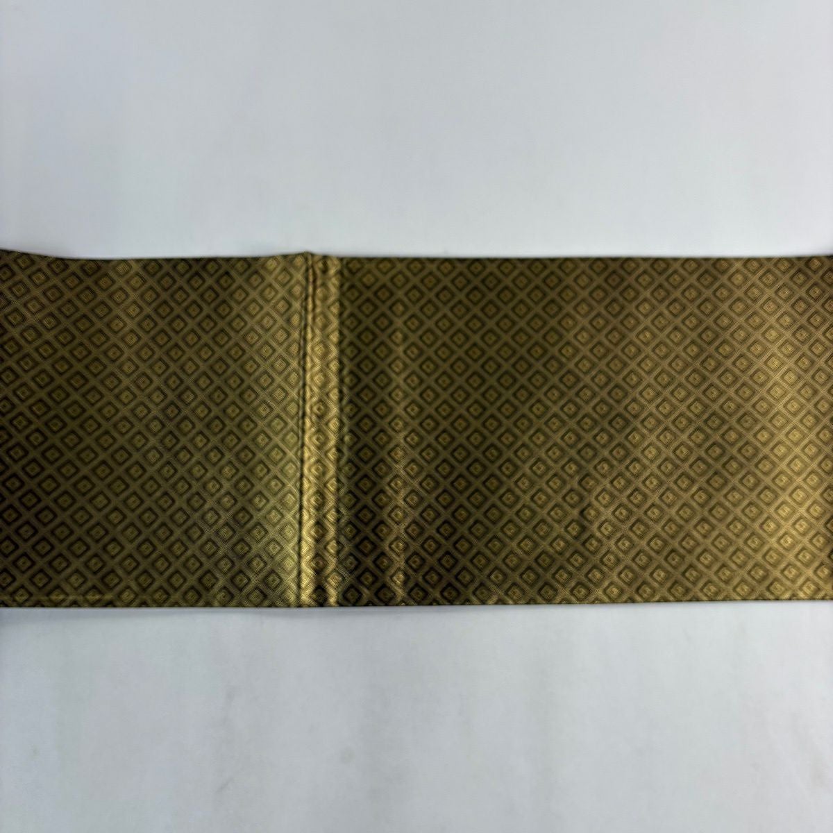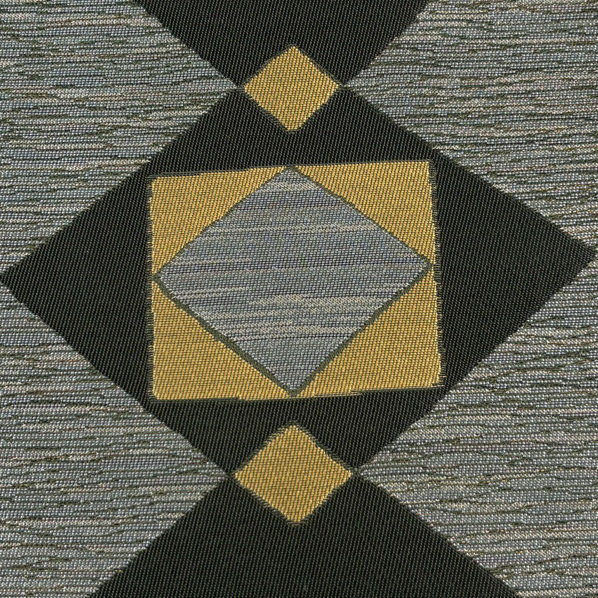 【美品】 袋帯 秀品 楓 斜め格子 箔 茶緑色 六通 正絹