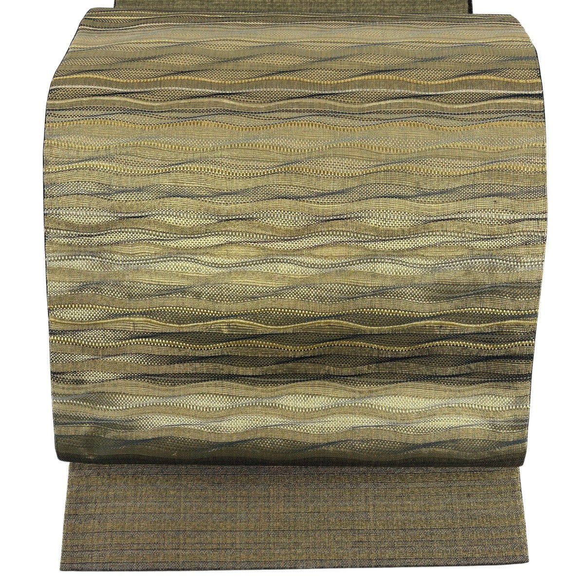 袋帯 秀品 湖畔の花園 波頭 金銀糸 箔 銀色 六通 正絹