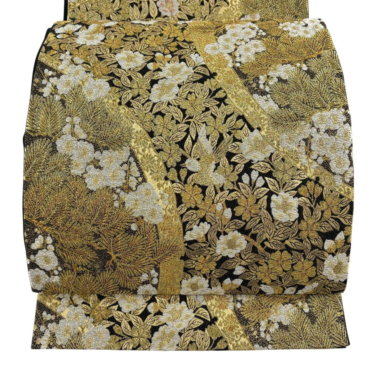 【美品】 袋帯 秀品 松梅 橋 金銀糸 箔 金色 六通 正絹