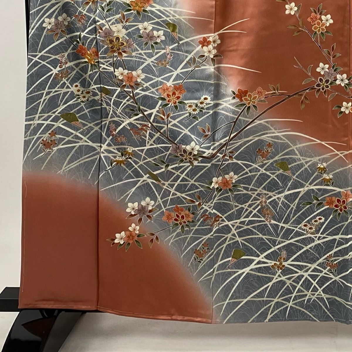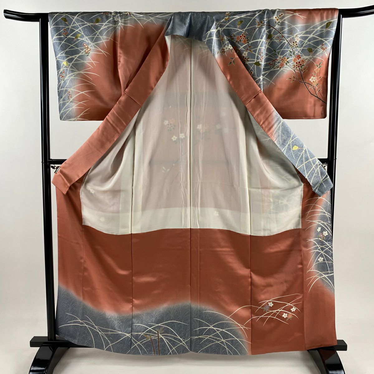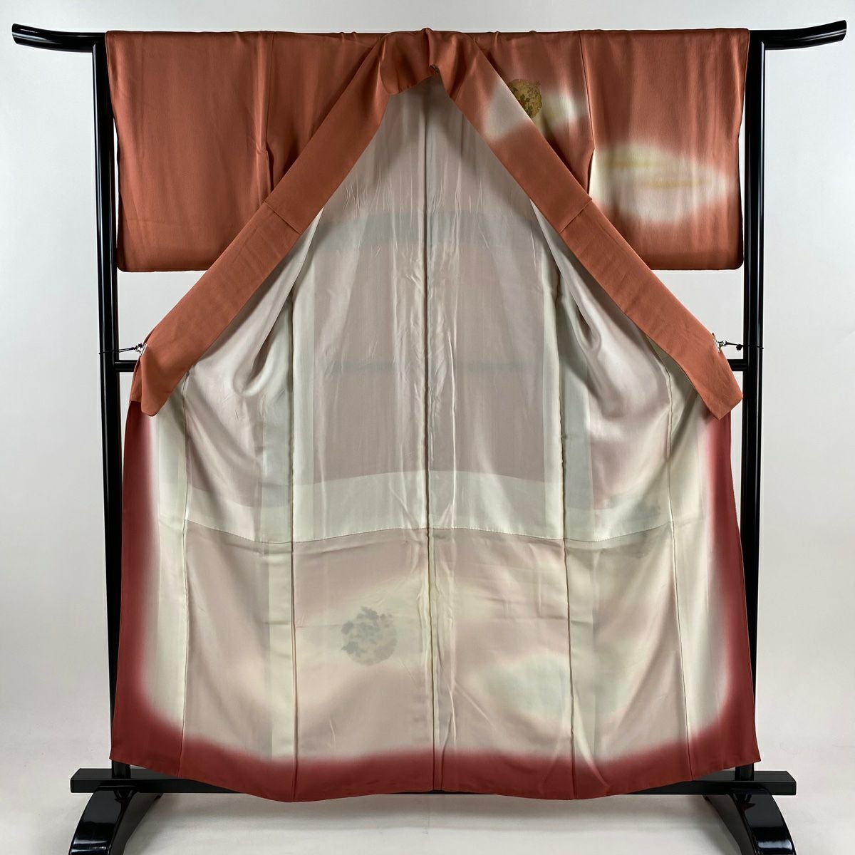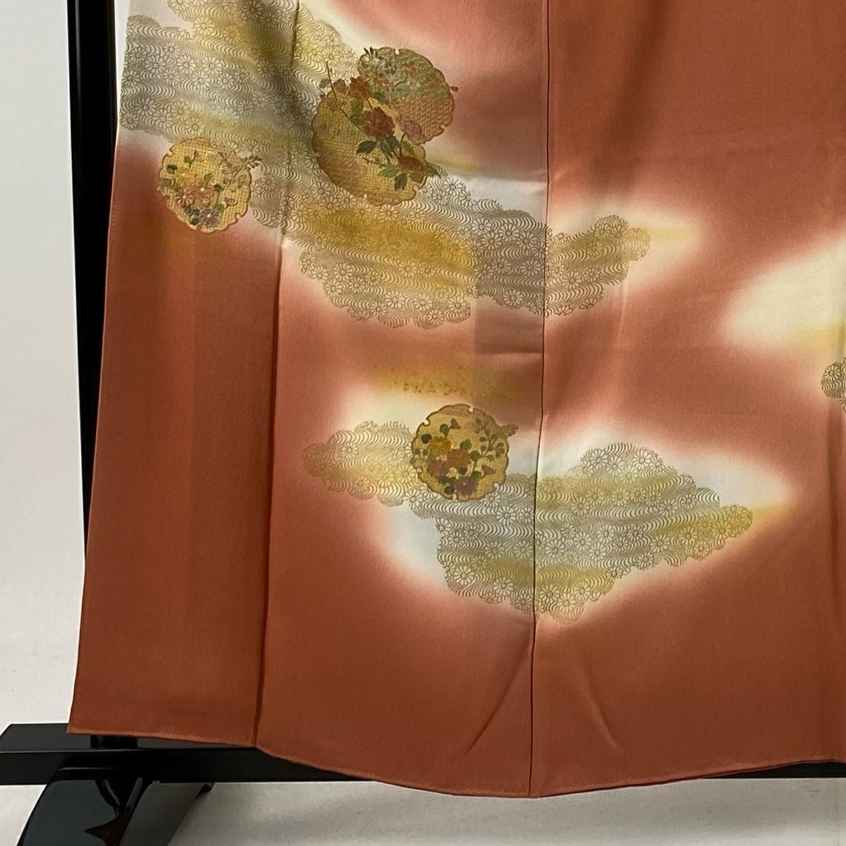 30%OFF 訪問着 身丈155.5cm 裄丈62.5cm S 袷 枝花 染め分け ぼかし オレンジ 正絹 秀品 K30