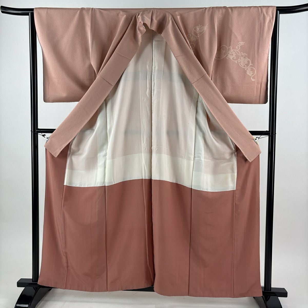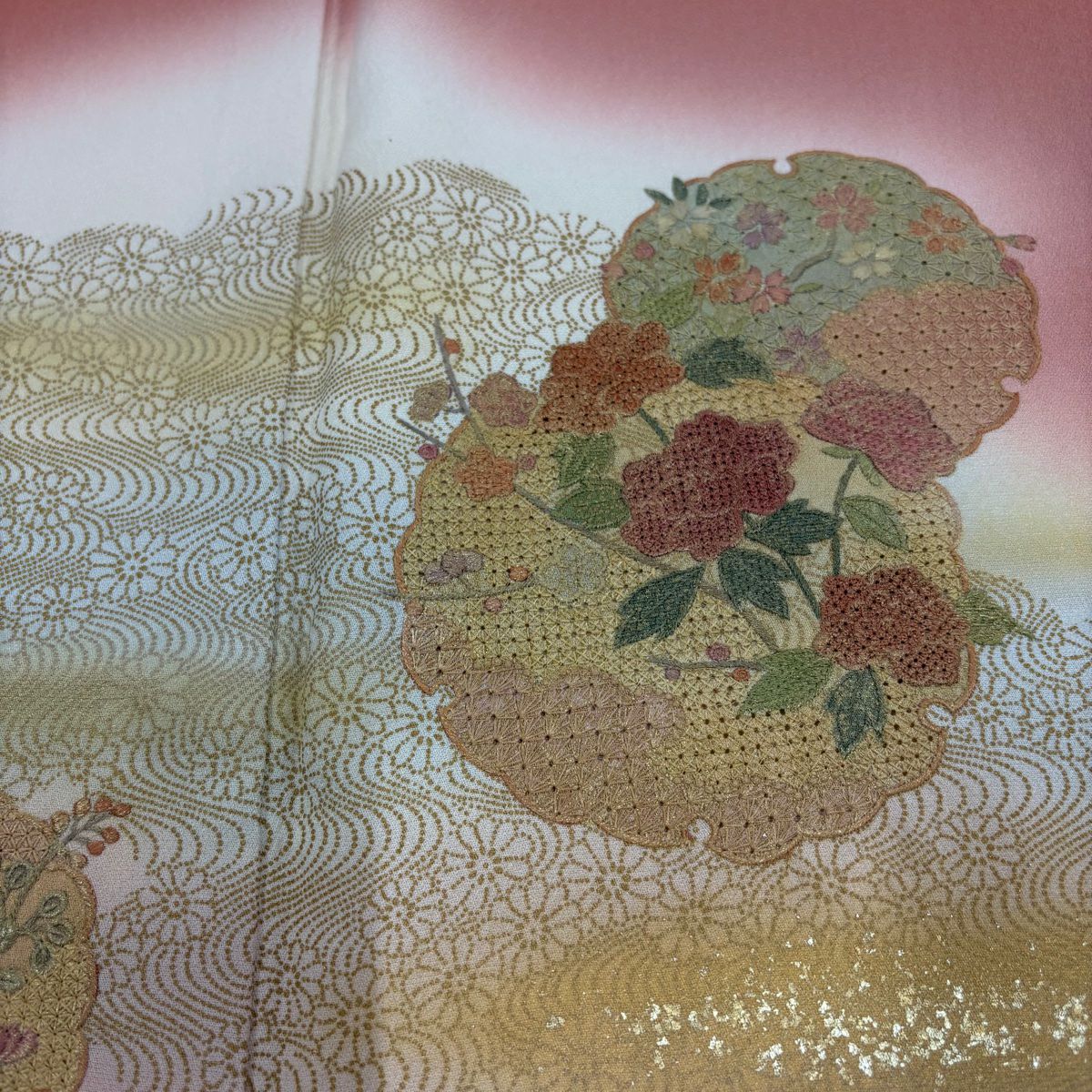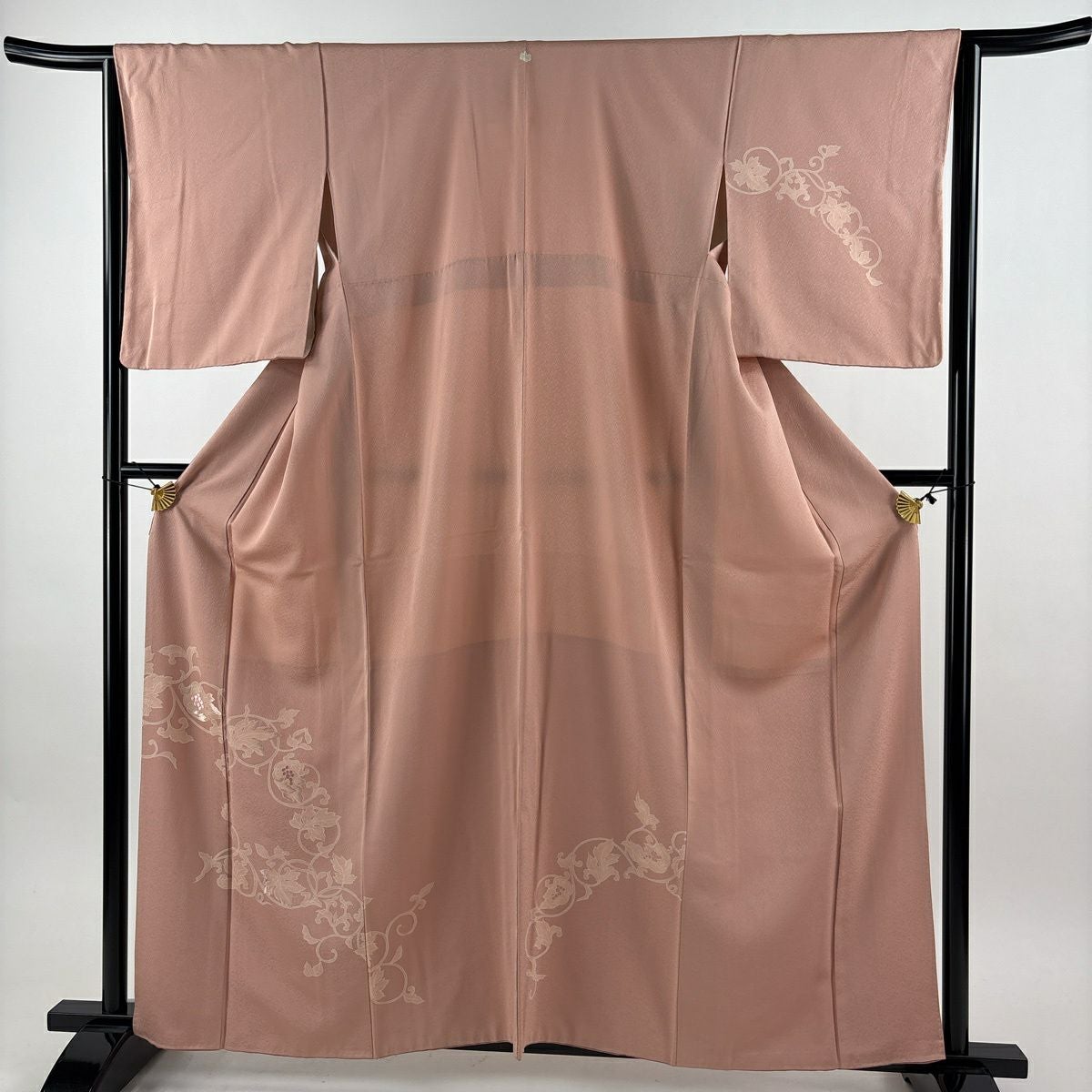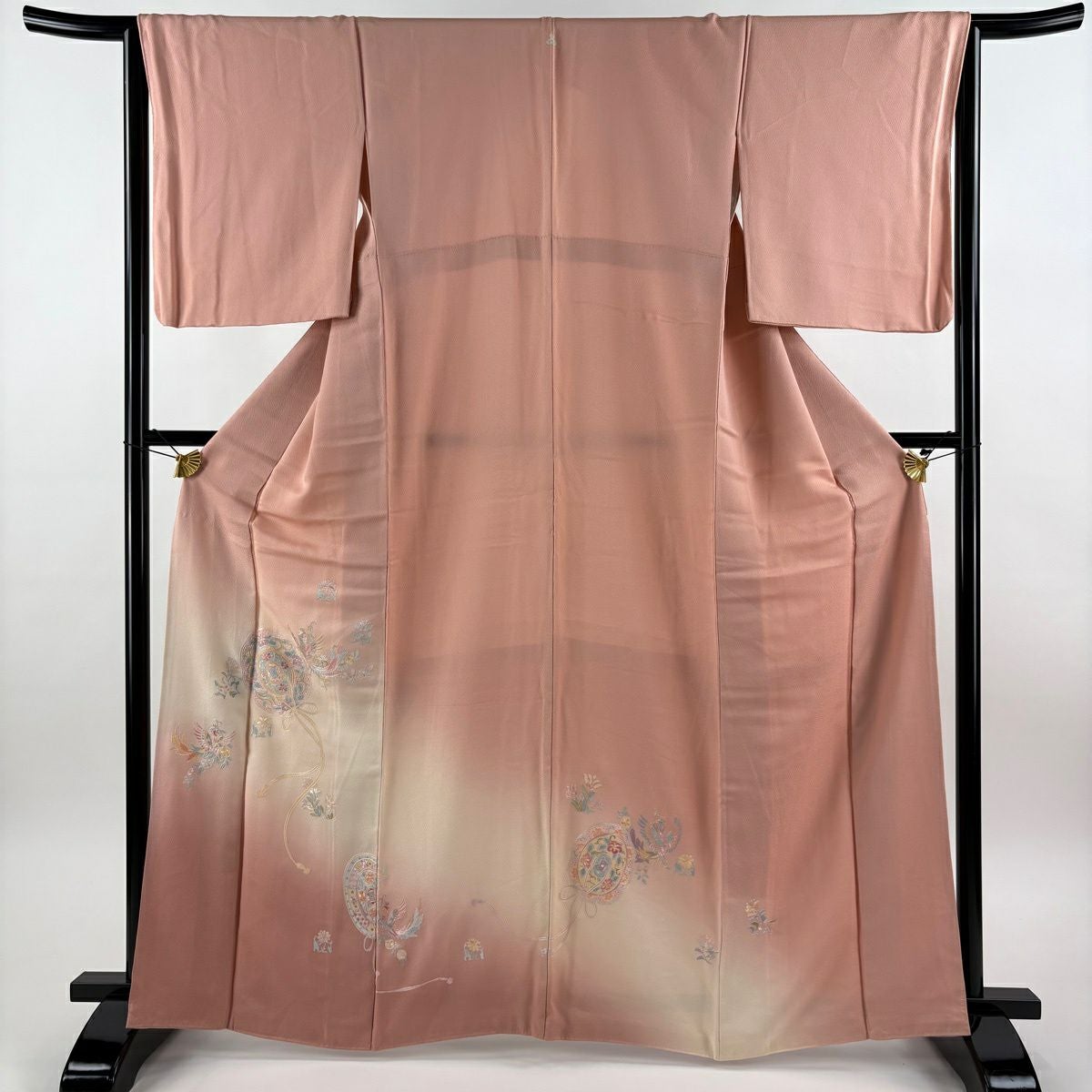 30%OFF 付下げ 身丈151.5cm 裄丈64cm M 袷 華文 花唐草 刺繍 金糸 ピンク 正絹 秀品 K30