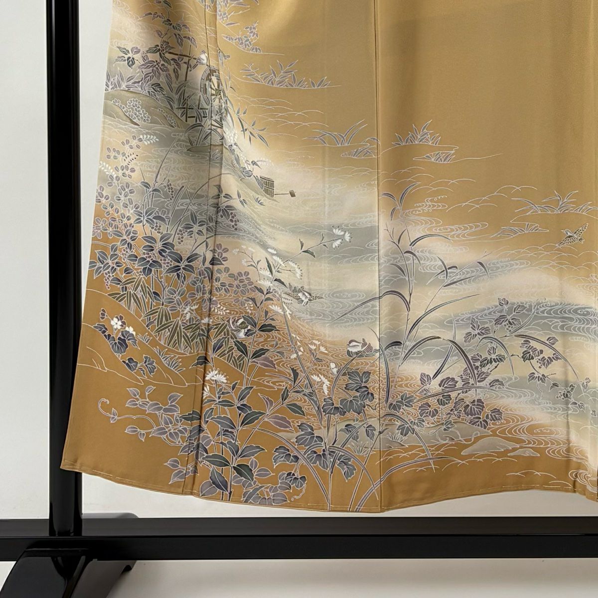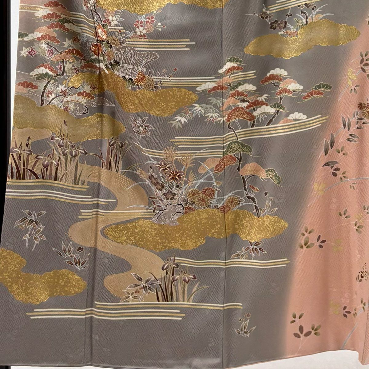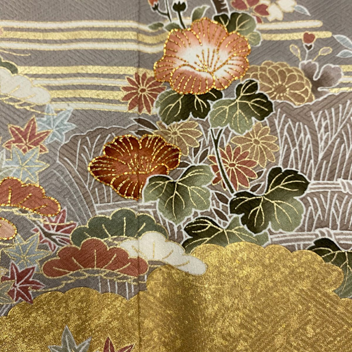 30%OFF 色留袖 身丈158.5cm 裄丈62cm S 袷 ヱ霞 秋草 金糸 金彩 灰色 正絹 秀品 一つ紋 K30