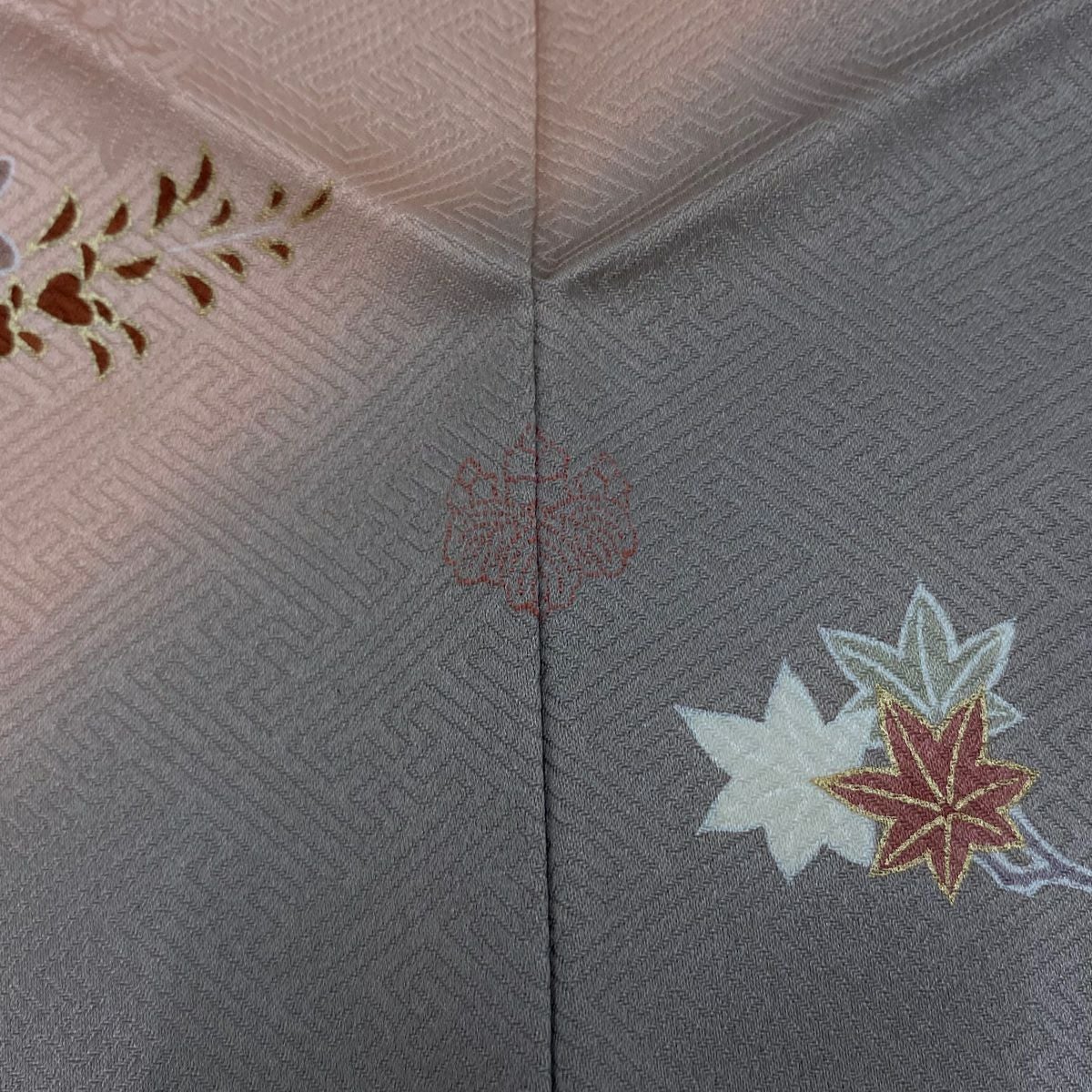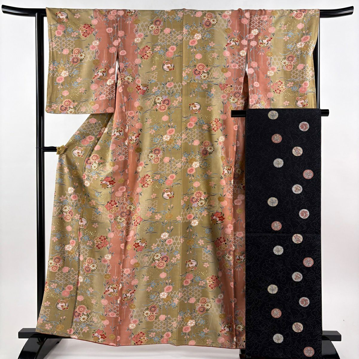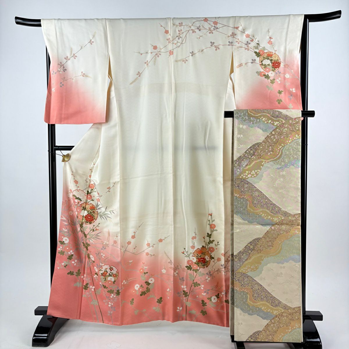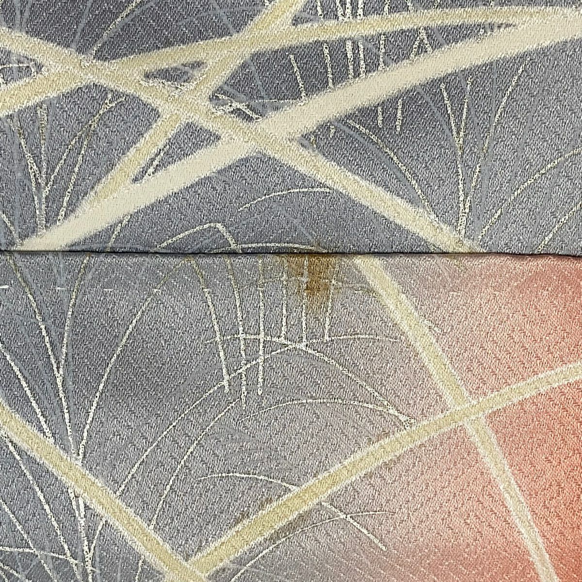 訪問着 身丈163cm 裄丈66.5cm M 袷 袋帯セット 雪輪 秋草 金彩 染め分け サーモンピンク 正絹 秀品