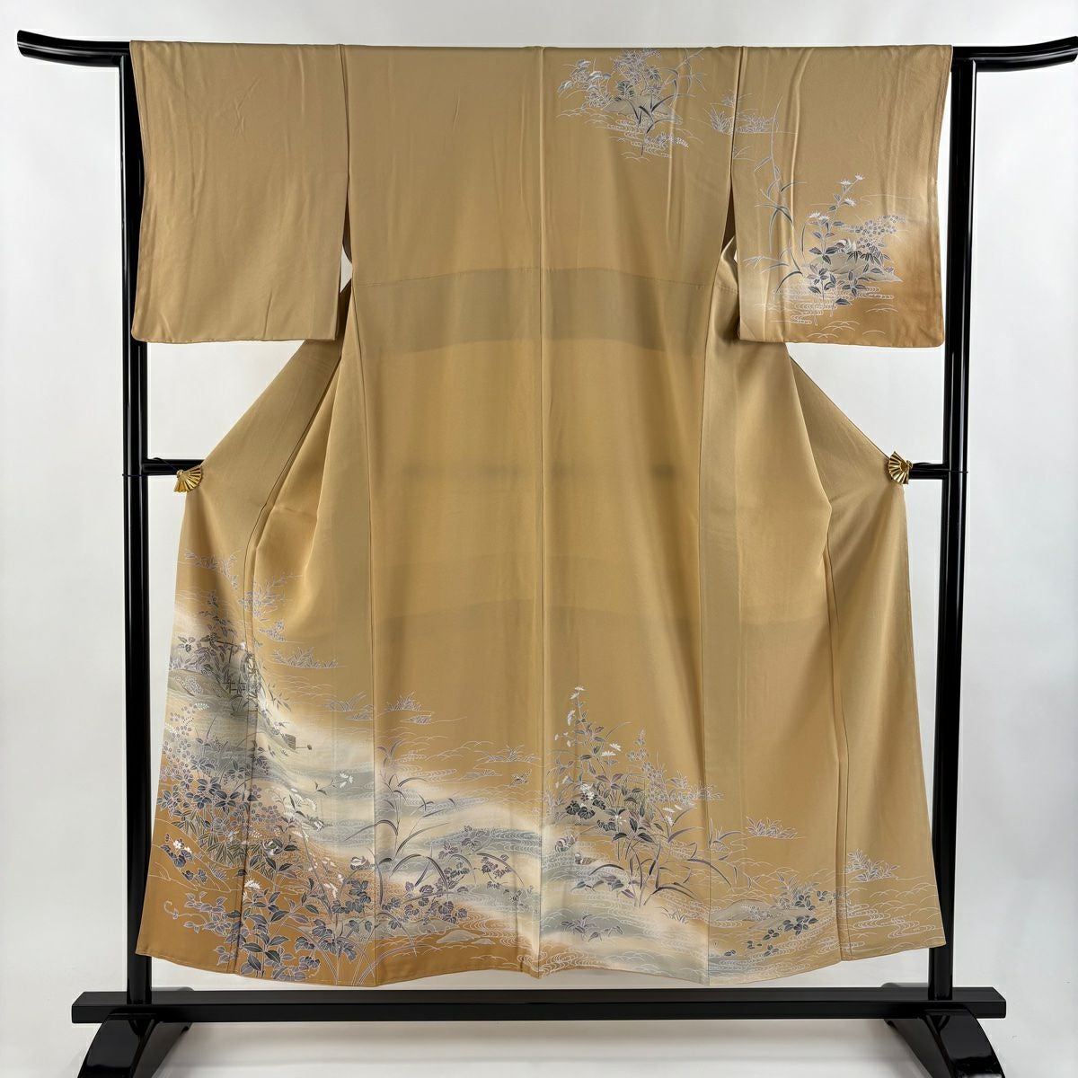 30%OFF 訪問着 身丈152.5cm 裄丈63.5cm S 袷 草花 金彩 染め分け ベージュ 正絹 秀品 K30