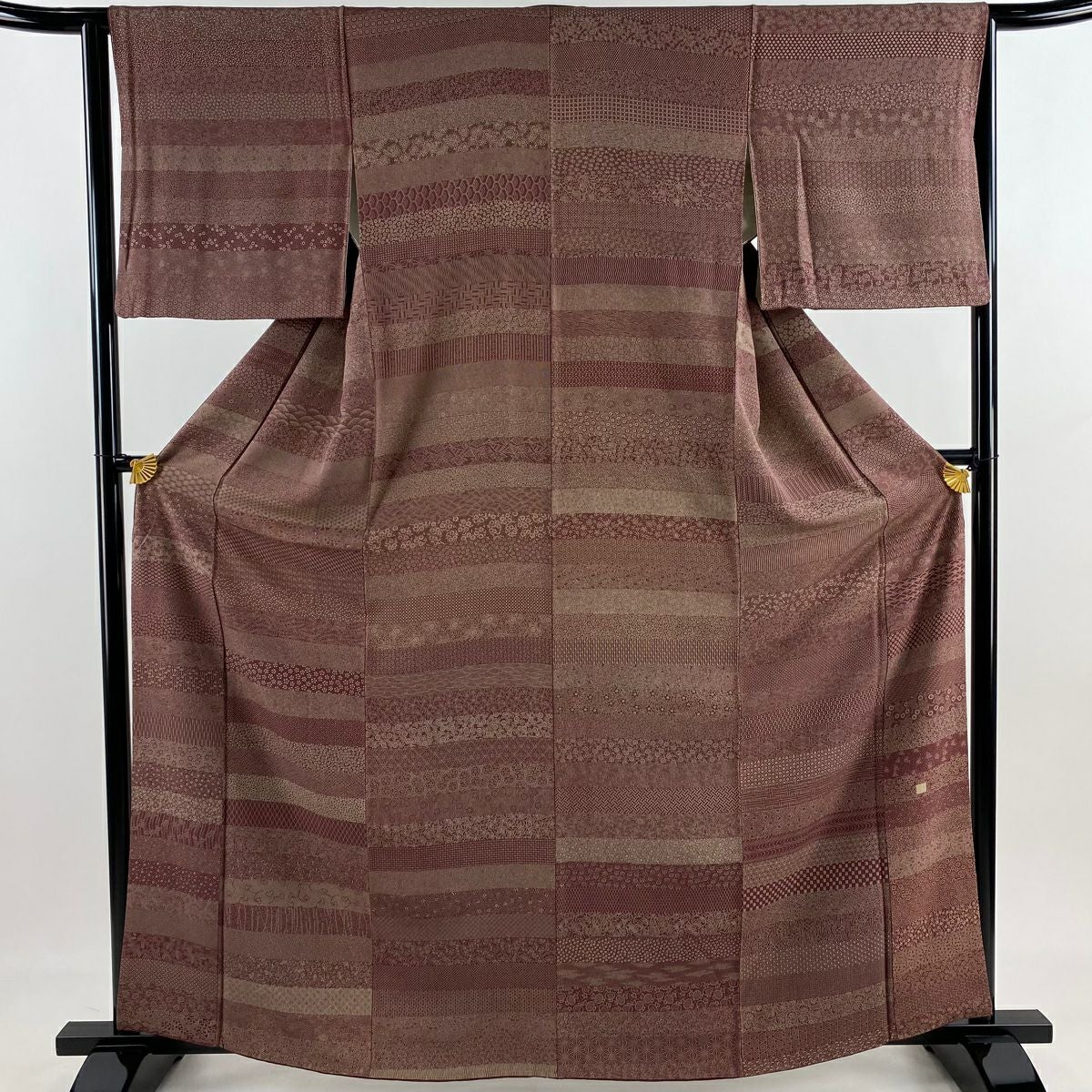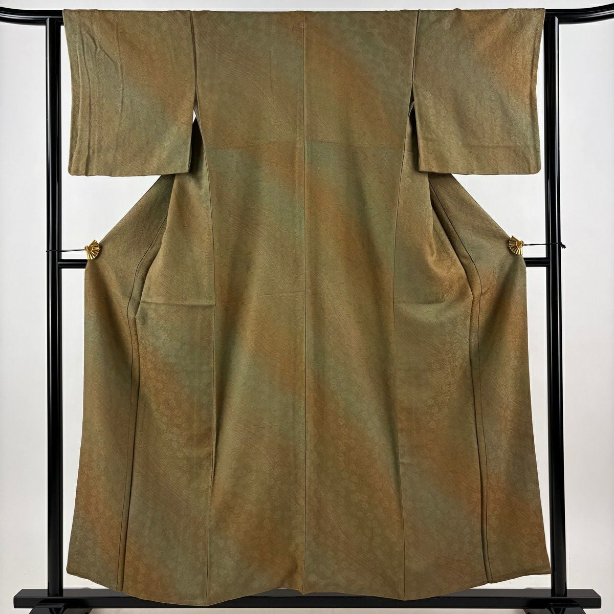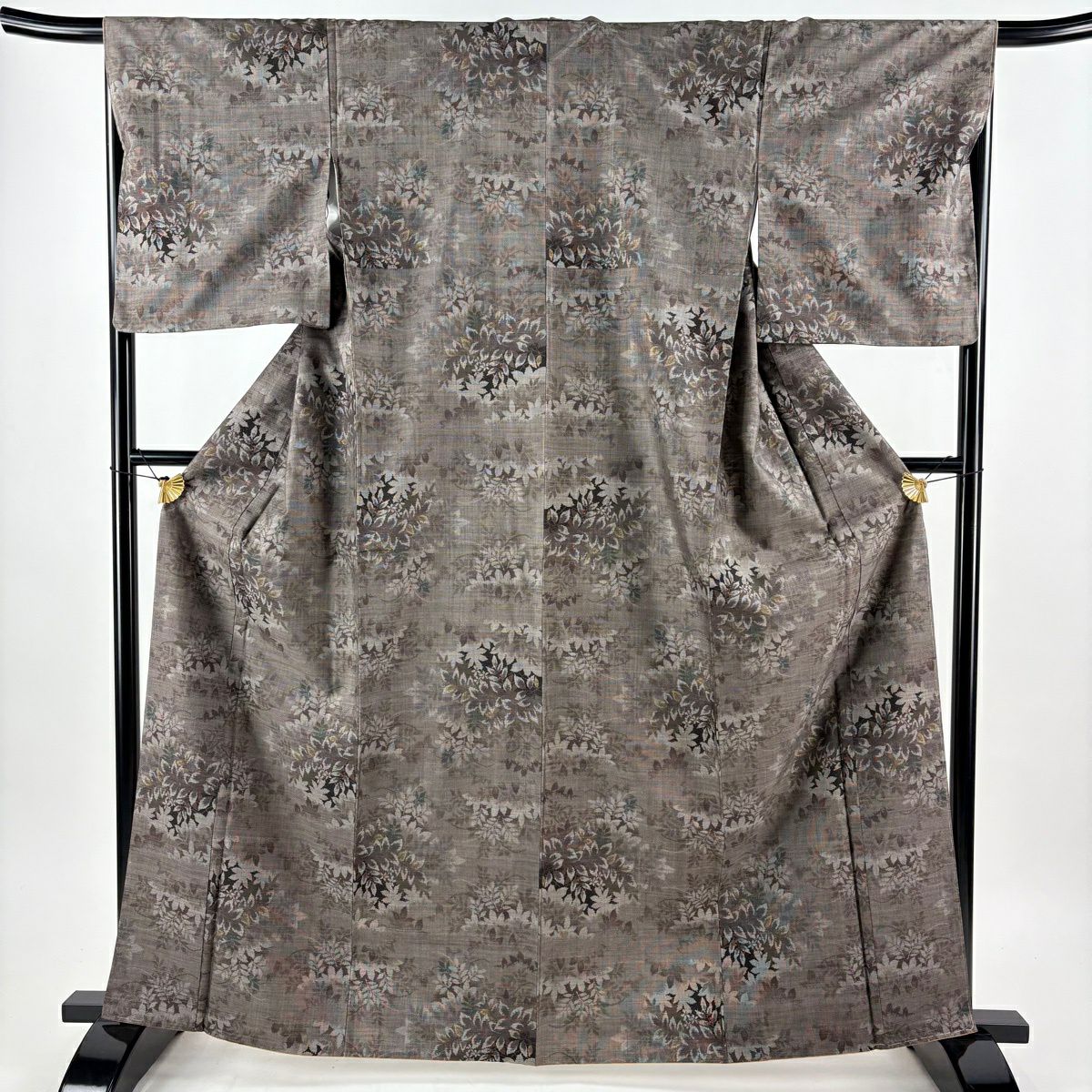 30%OFF 【美品】 小紋 身丈155.5cm 裄丈63.5cm S 袷 地紋 ぼかし 茶色 正絹 秀品 一つ紋 K30