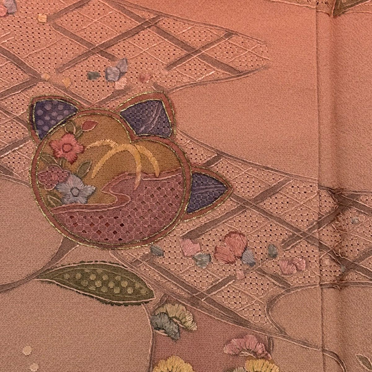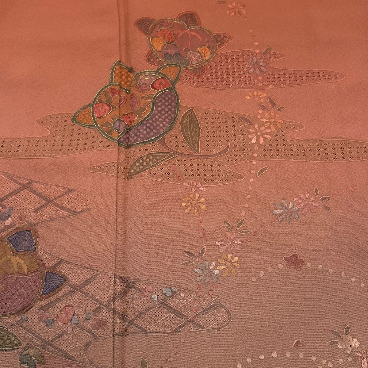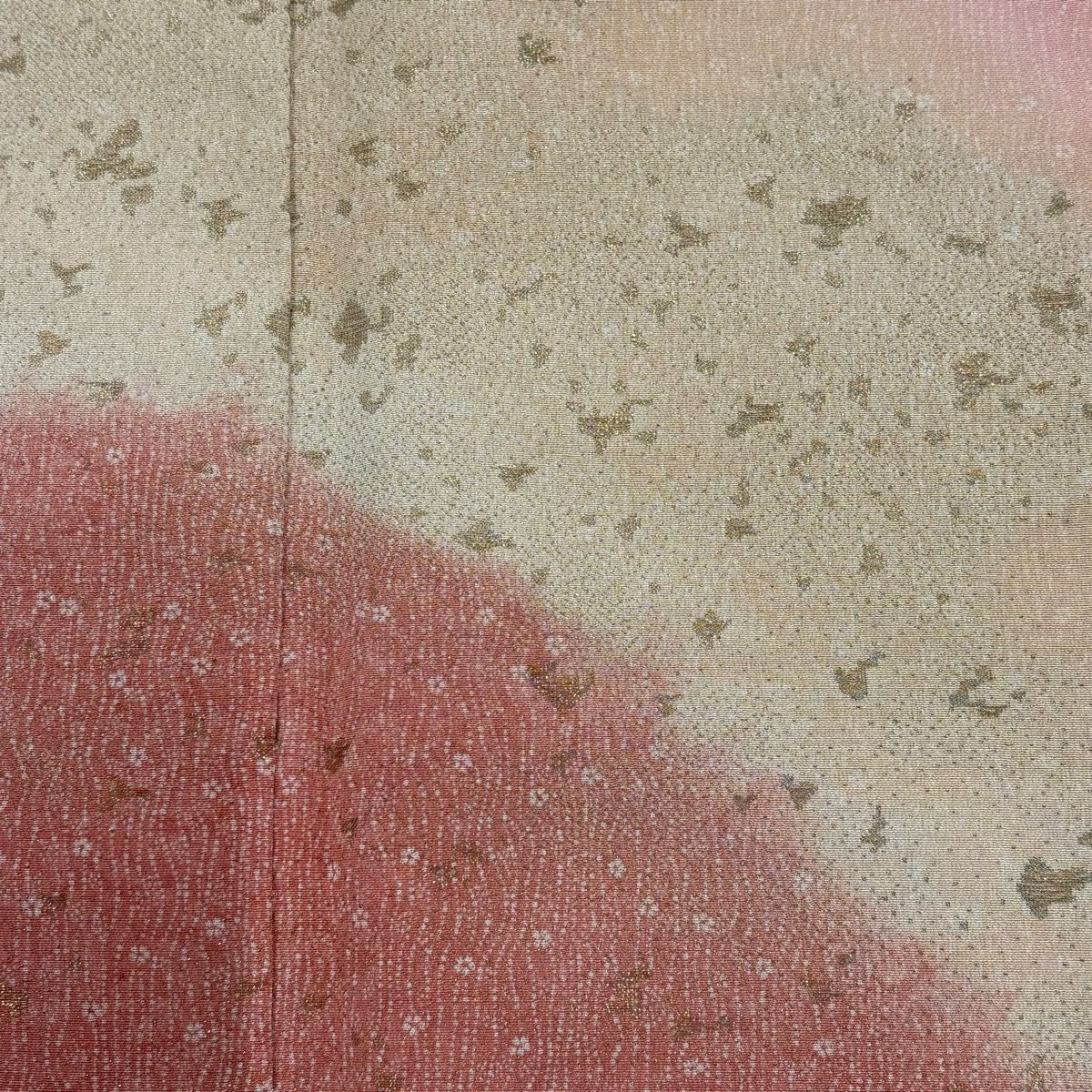 30%OFF 訪問着 身丈158cm 裄丈64cm M 袷 橘花 霞 刺繍 金糸 サーモンピンク 正絹 秀品 K30