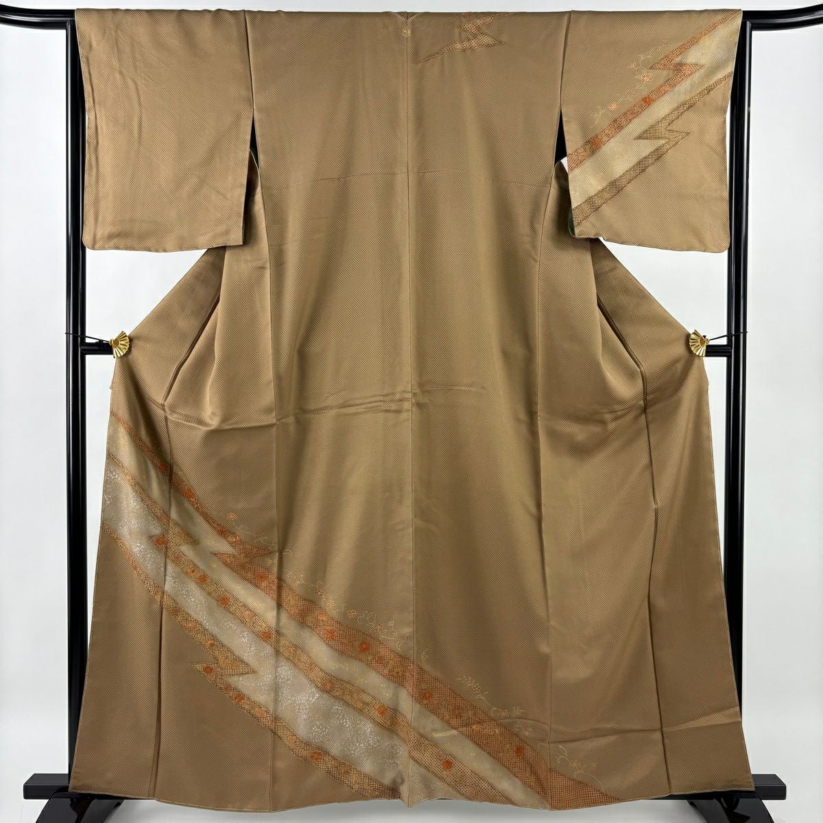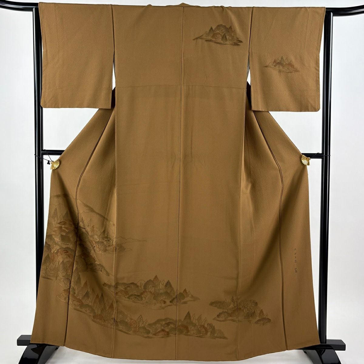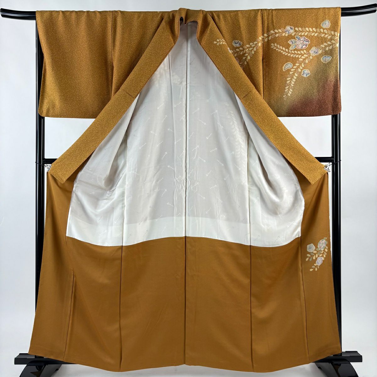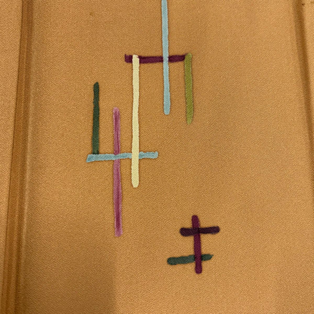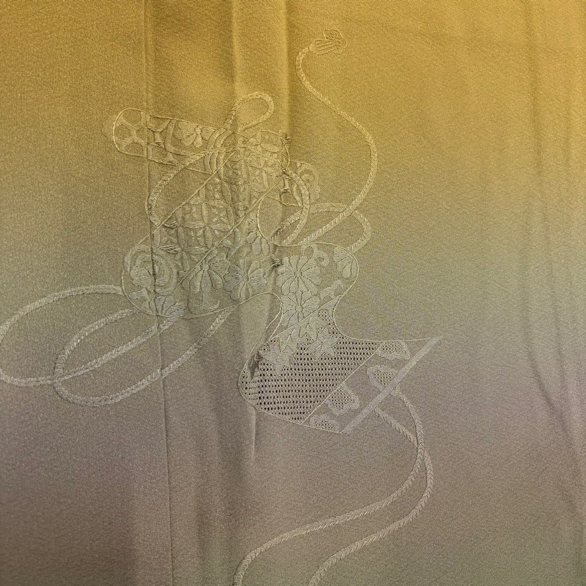 30%OFF 付下げ 身丈159cm 裄丈65cm M 袷 組紐 琴 刺繍 ぼかし 黄土色 正絹 秀品 一つ紋 K30