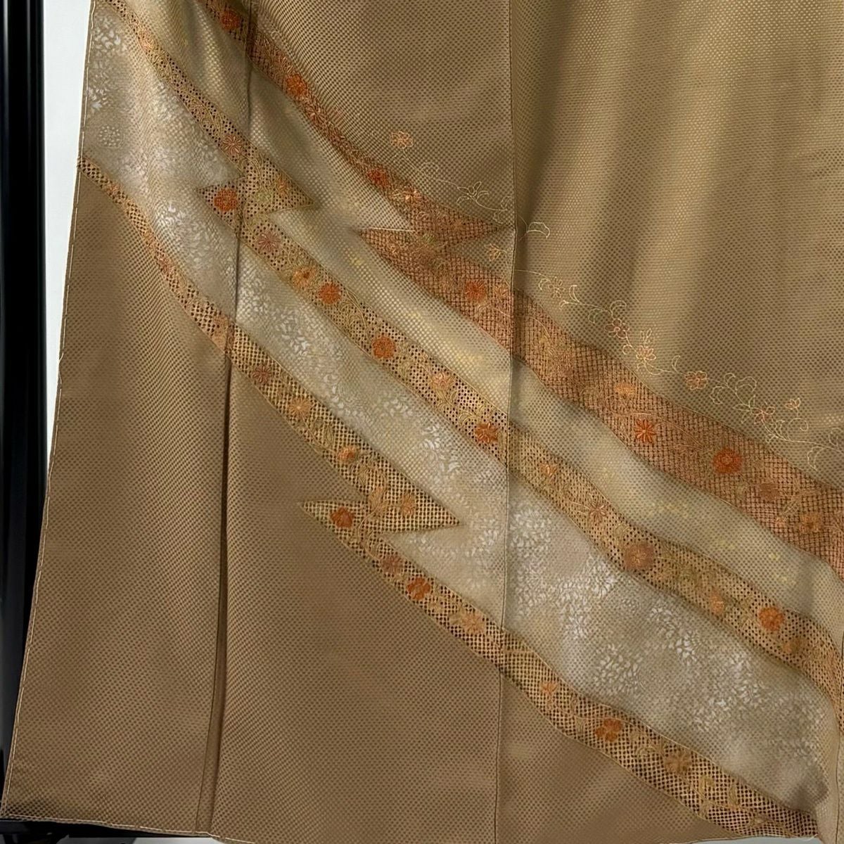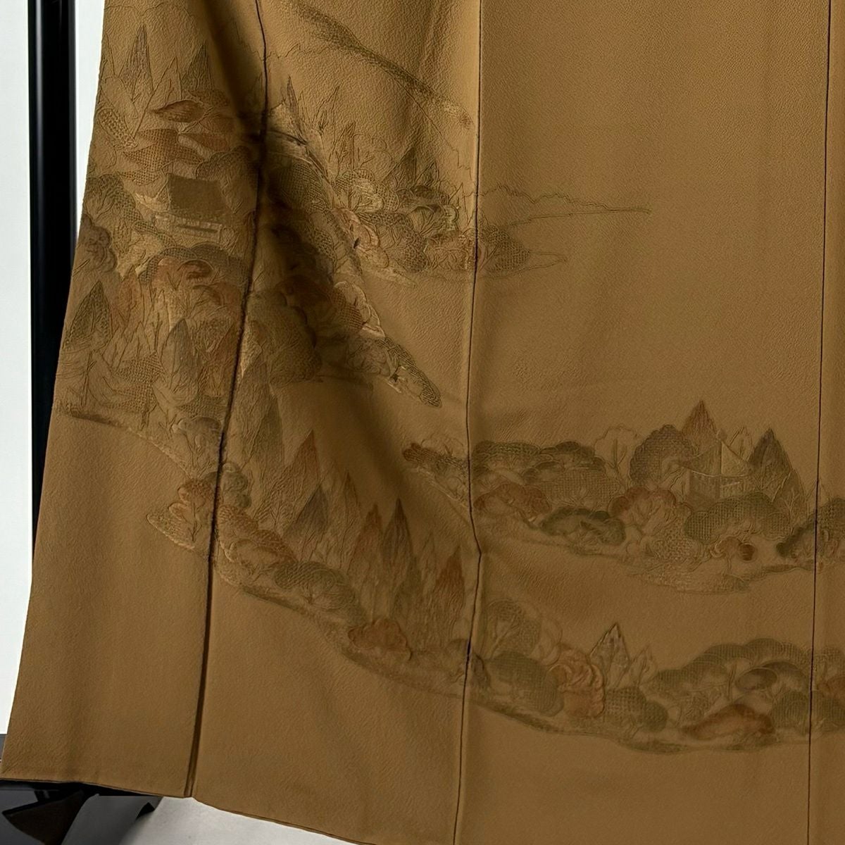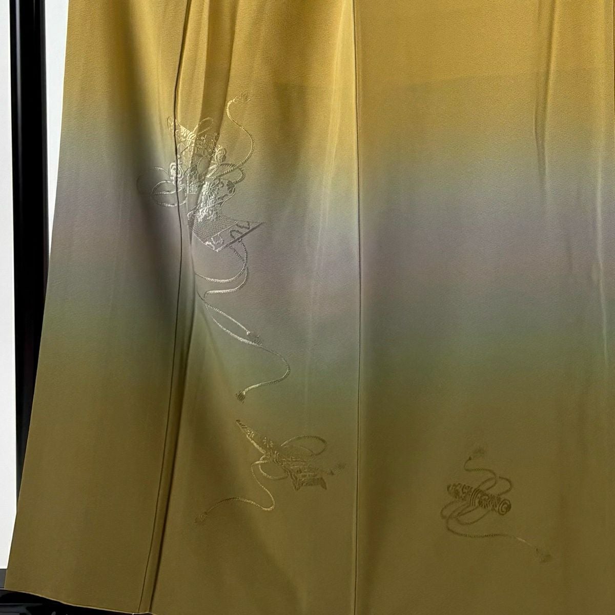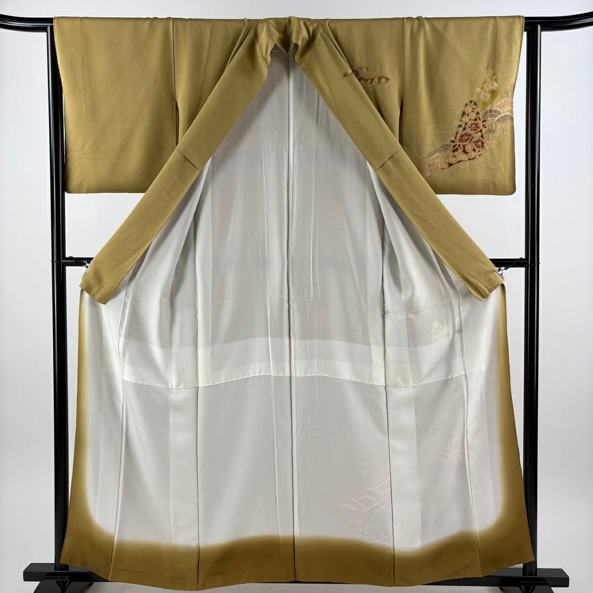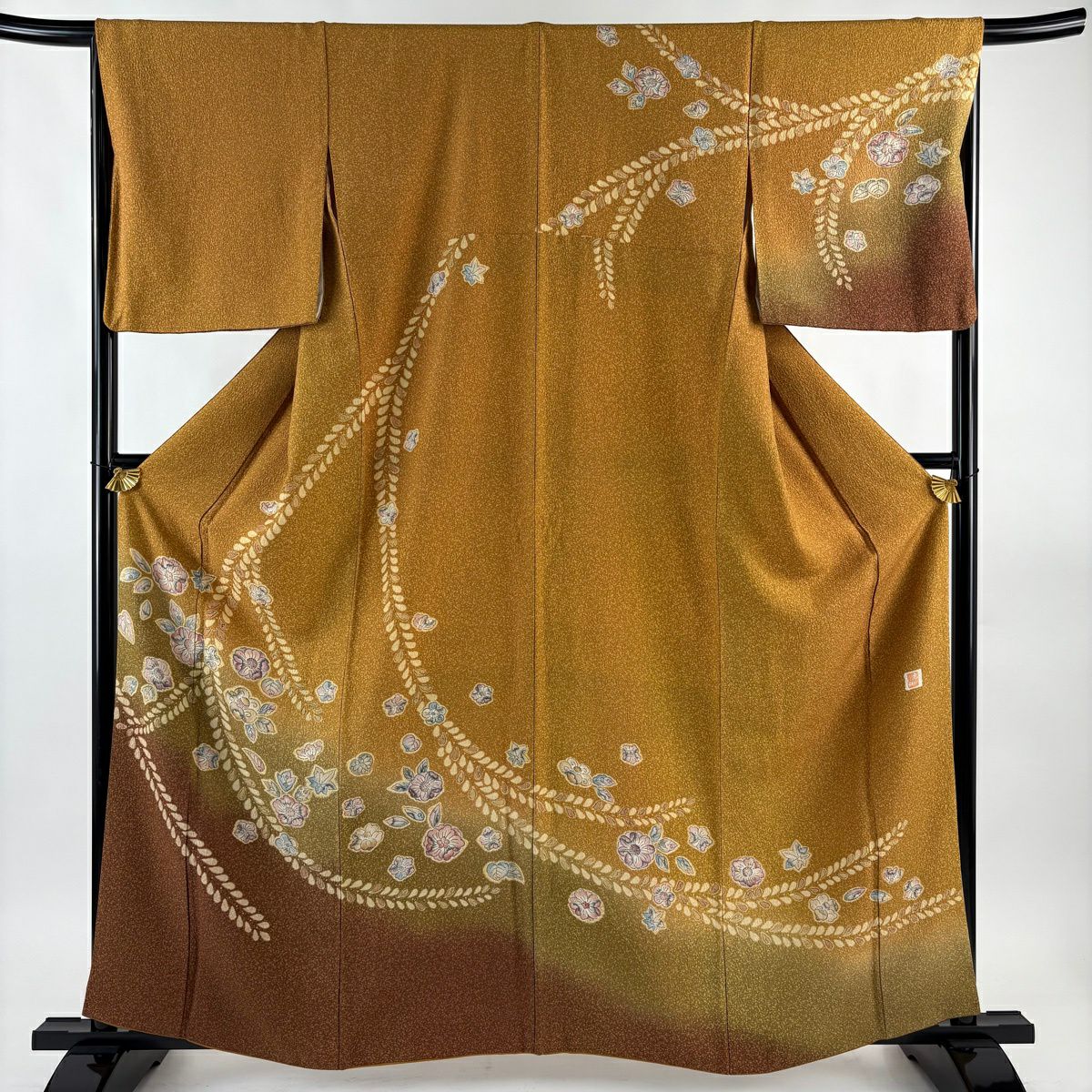 30%OFF 付下げ 身丈159cm 裄丈65cm M 袷 組紐 琴 刺繍 ぼかし 黄土色 正絹 秀品 一つ紋 K30