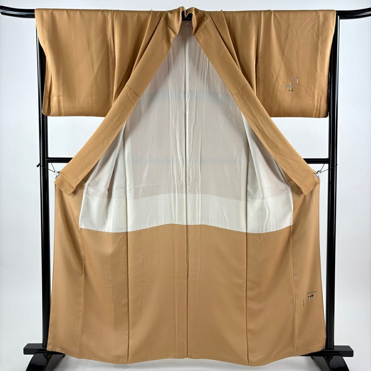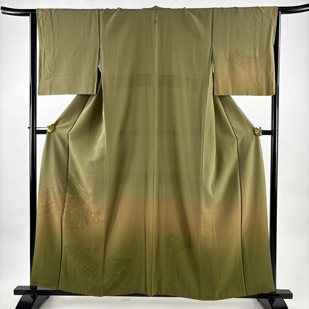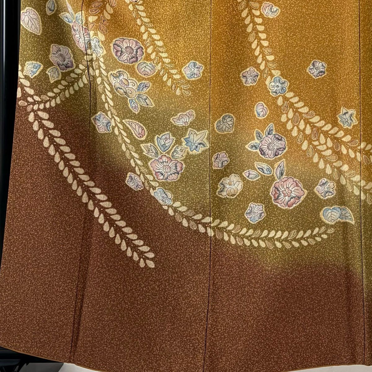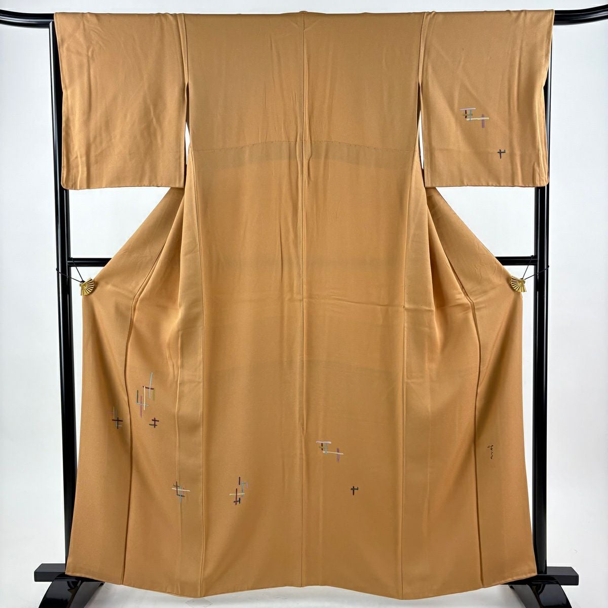 30%OFF 付下げ 身丈159cm 裄丈65cm M 袷 組紐 琴 刺繍 ぼかし 黄土色 正絹 秀品 一つ紋 K30