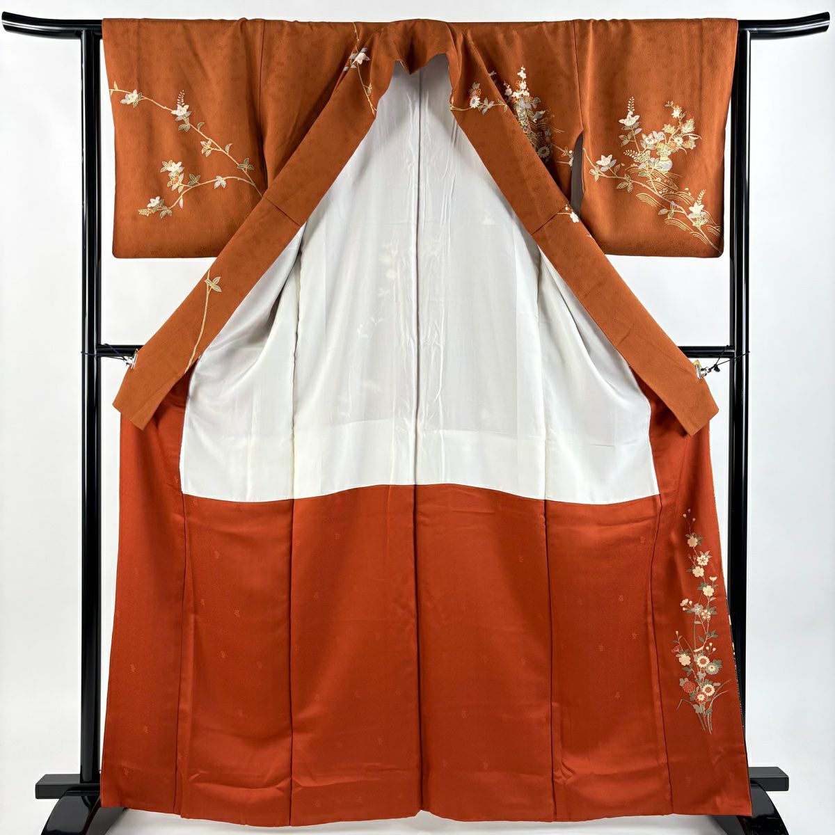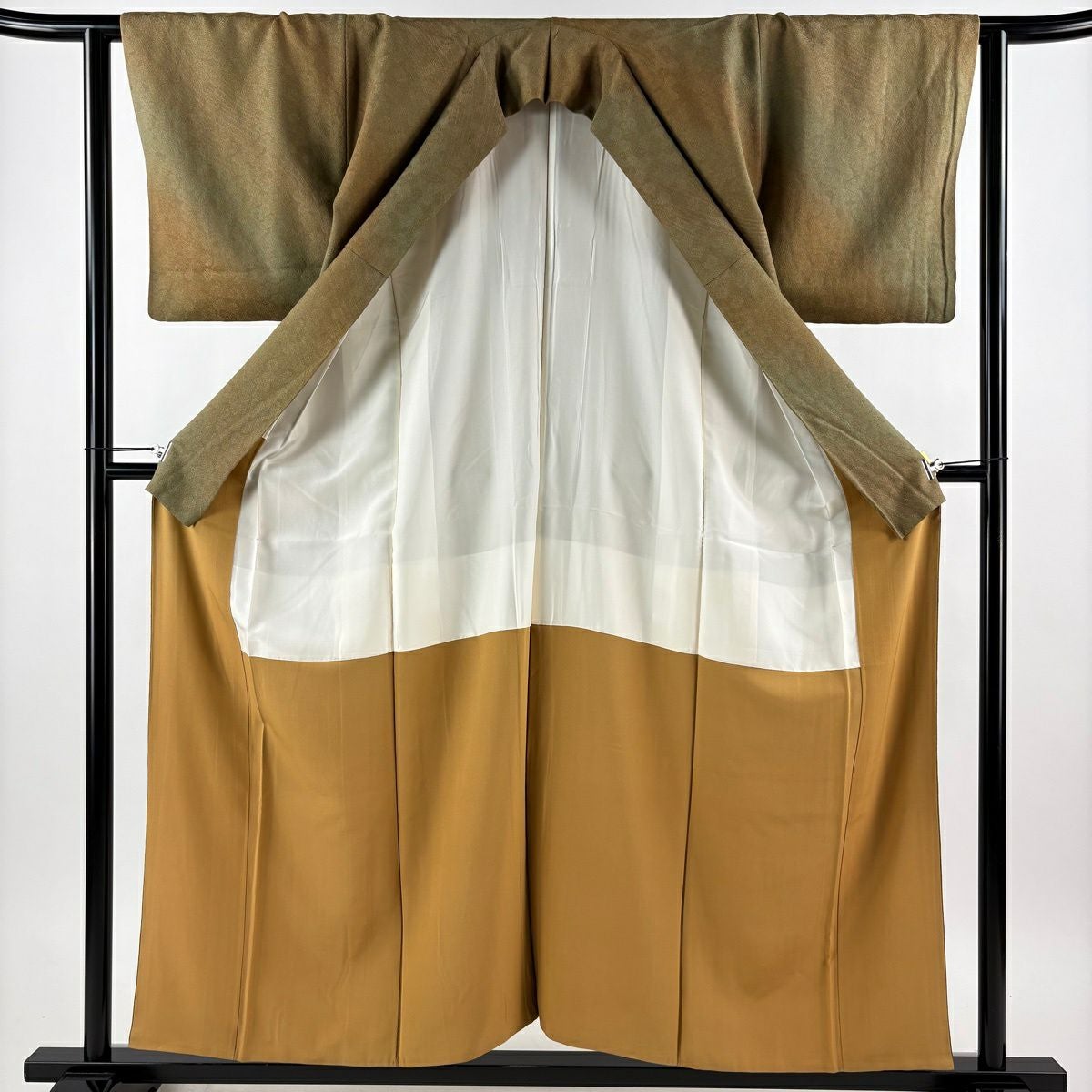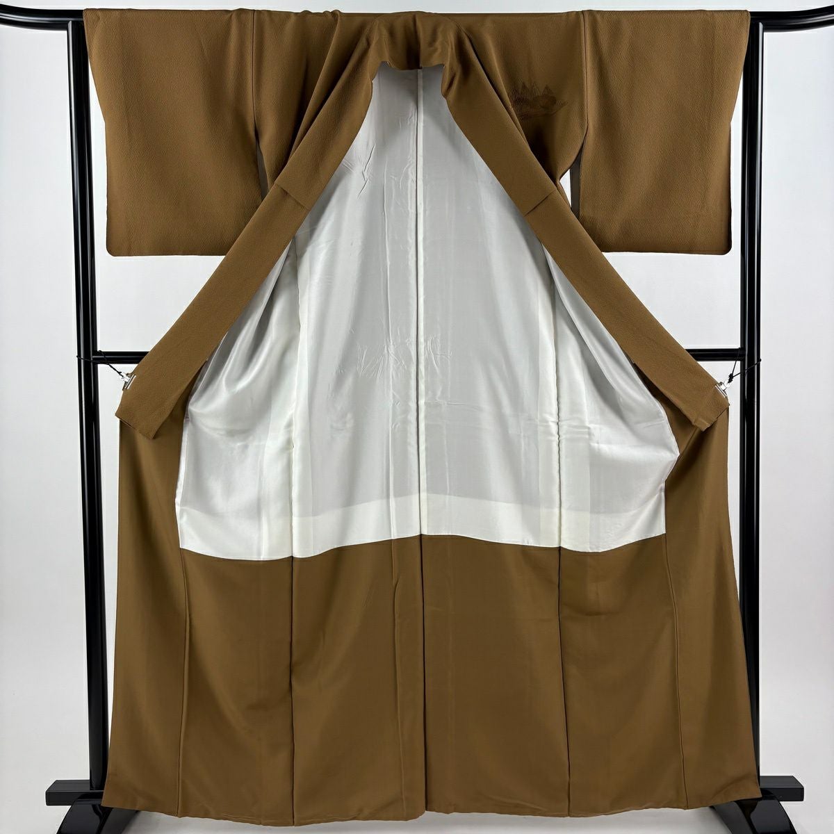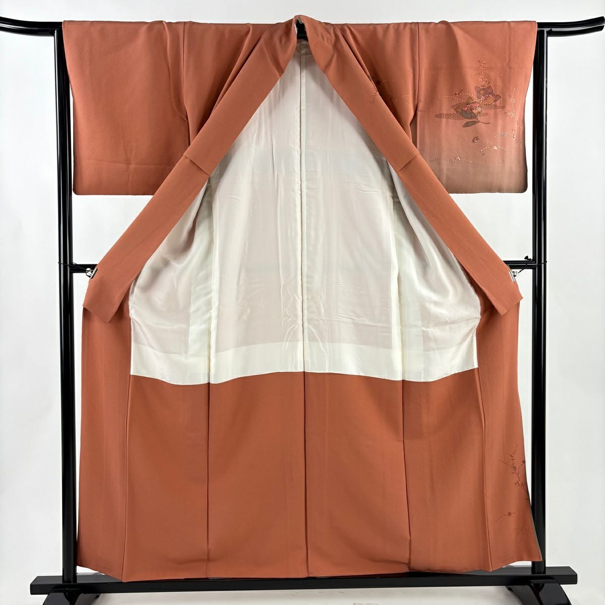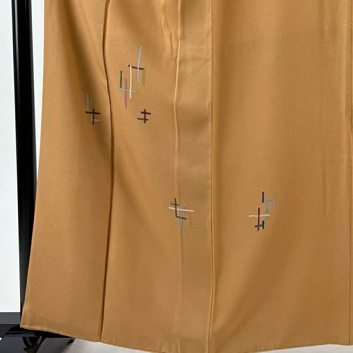 30%OFF 付下げ 身丈159cm 裄丈65cm M 袷 組紐 琴 刺繍 ぼかし 黄土色 正絹 秀品 一つ紋 K30