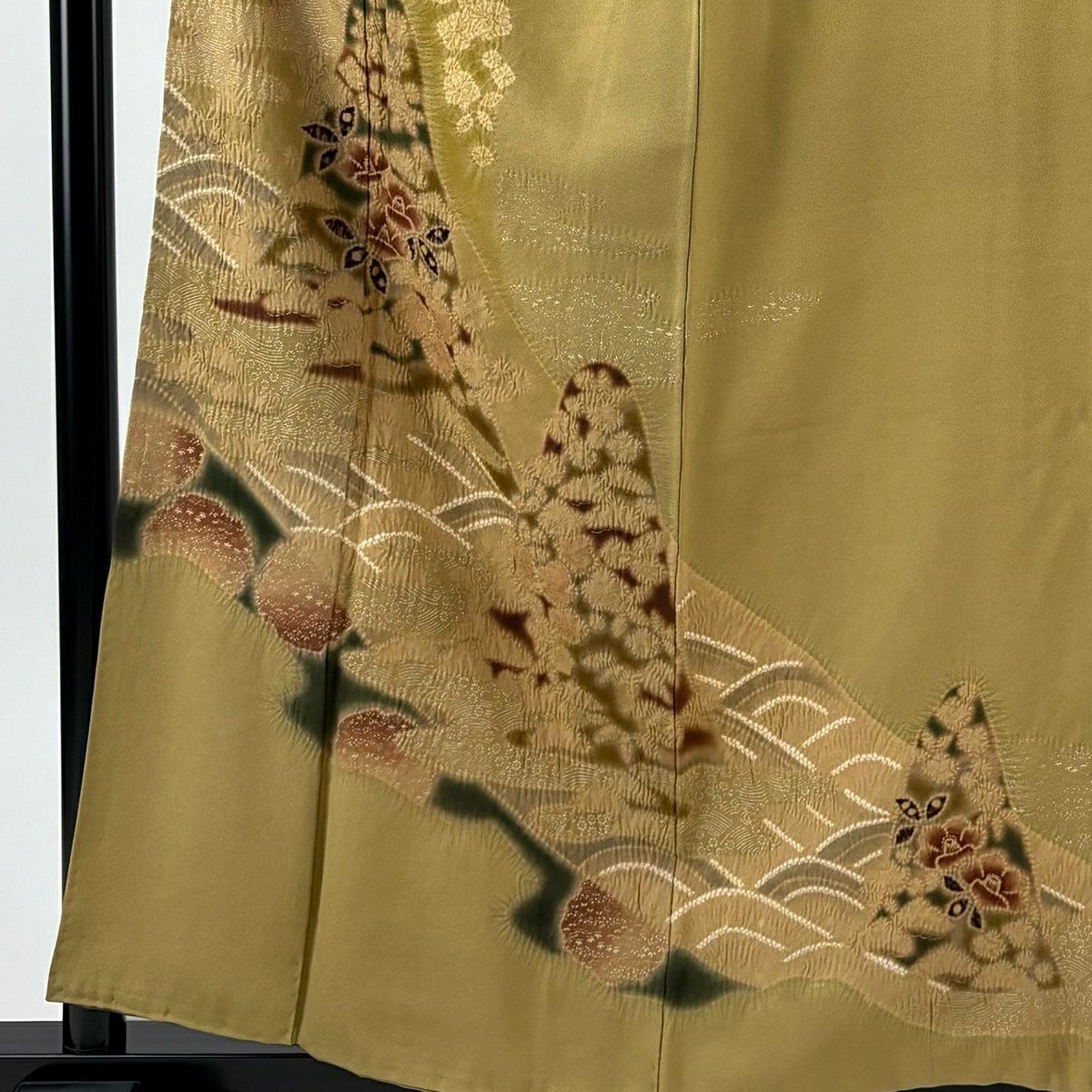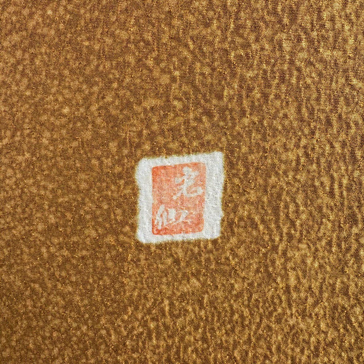30%OFF 【美品】 付下げ 身丈158cm 裄丈64cm M 袷 椿 波 金彩 絞り 山吹茶色 正絹 秀品 K30
