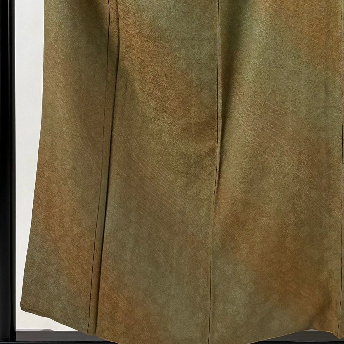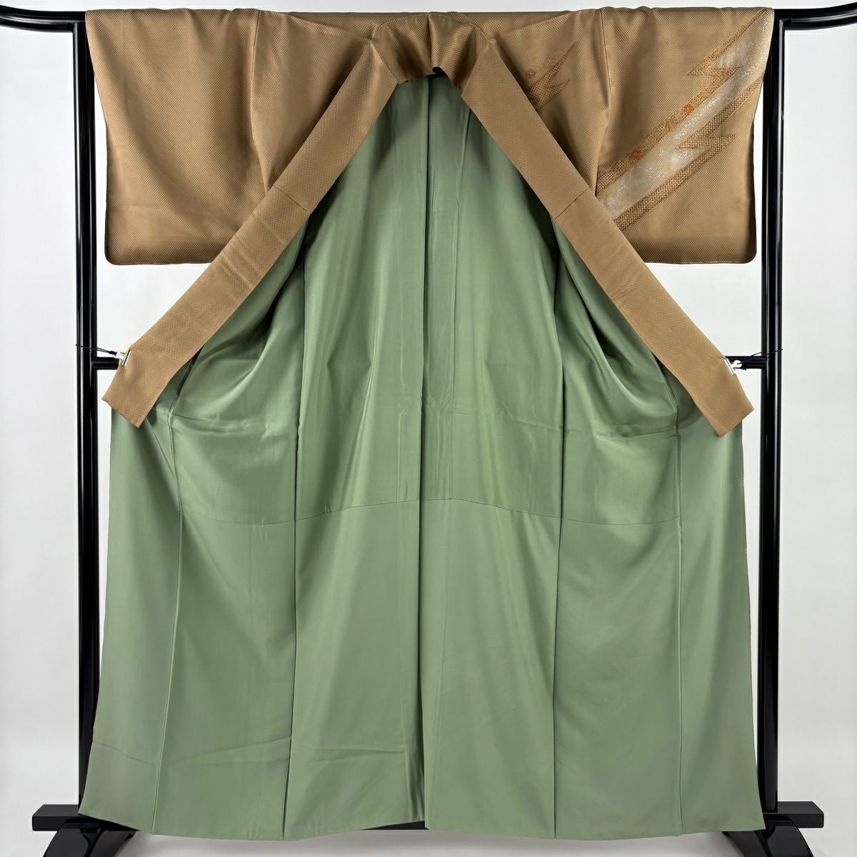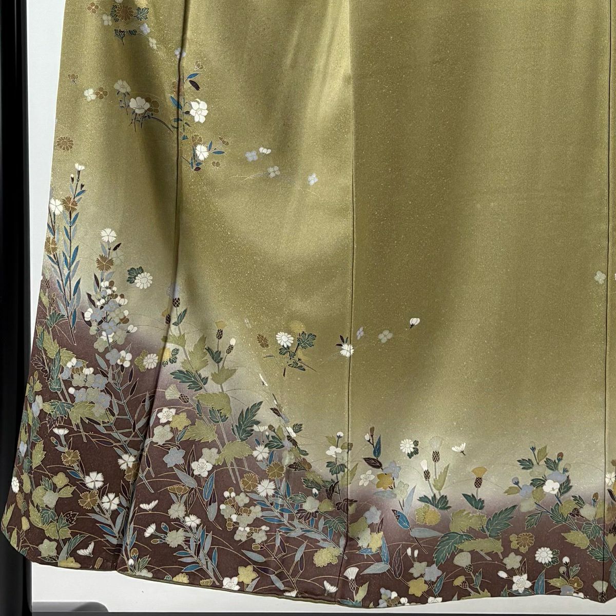 30%OFF 訪問着 身丈161.5cm 裄丈64.5cm M 袷 草花 流水 絞り 染め分け 茶緑色 正絹 秀品 K30
