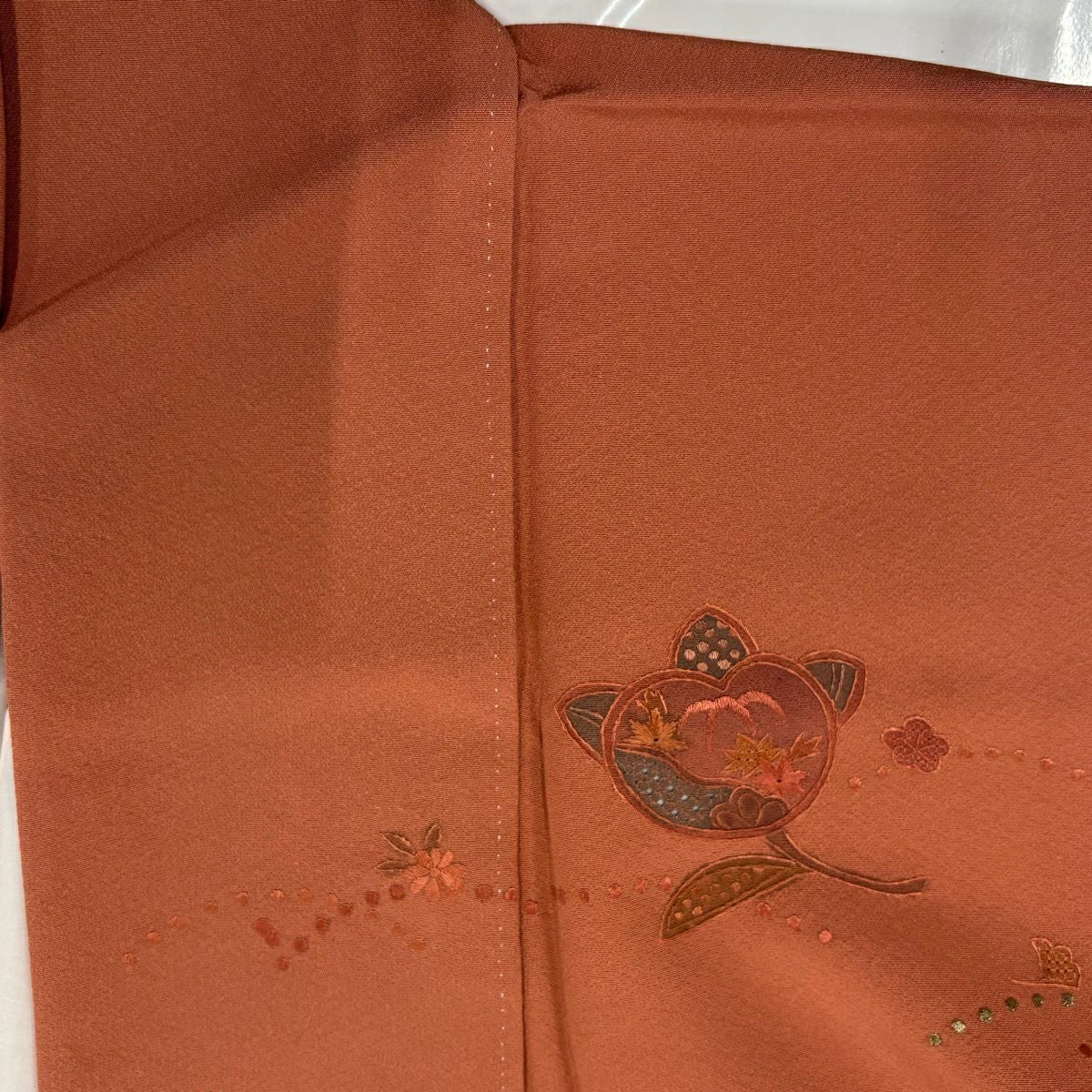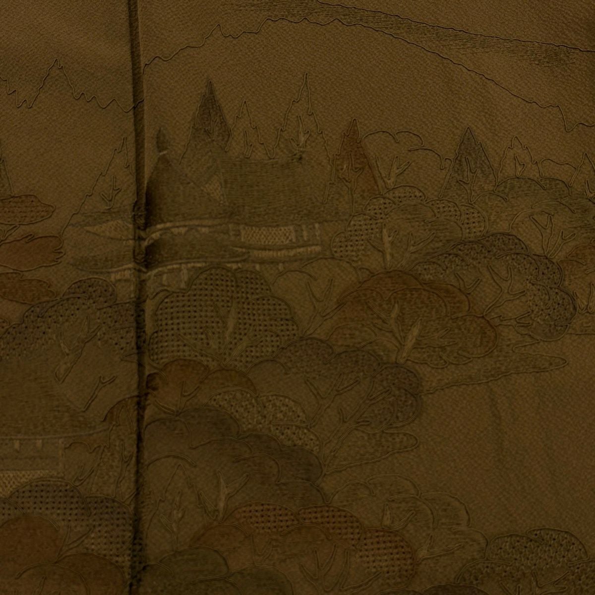 30%OFF 付下げ 身丈163cm 裄丈63.5cm S 袷 日本三景 松島 松 建物 刺繍 茶色 正絹 秀品 K30