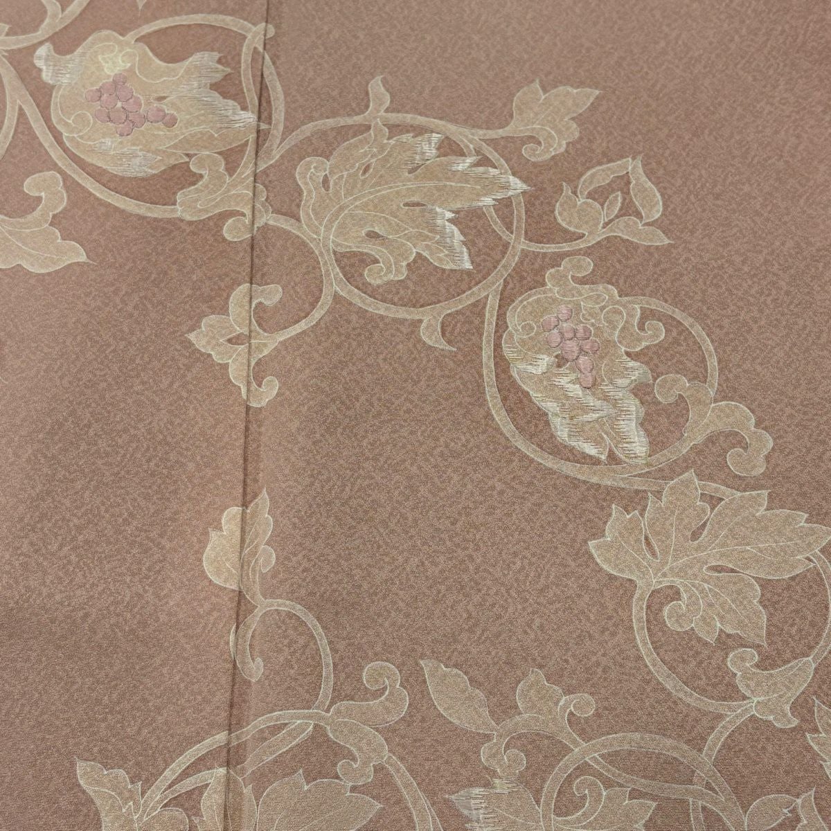 30%OFF 【美品】 付下げ 身丈161cm 裄丈64cm M 袷 葡萄 刺繍 ピンク 正絹 秀品 一つ紋 K30