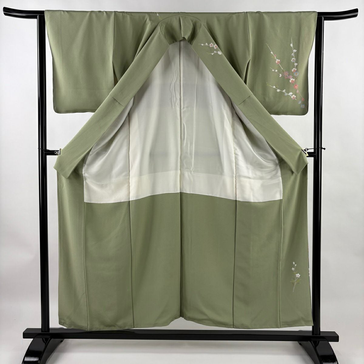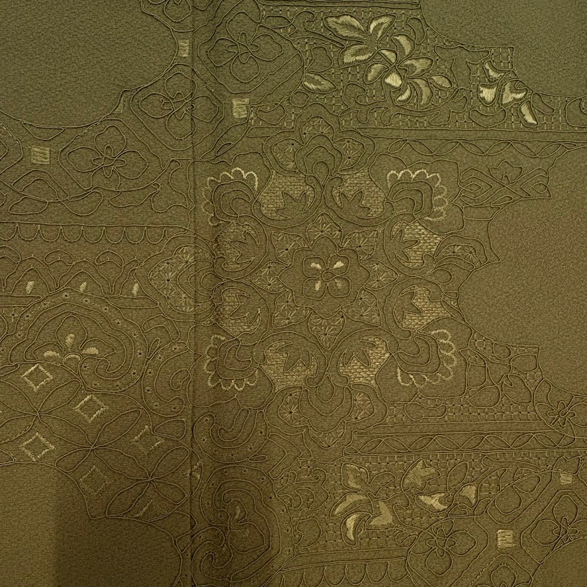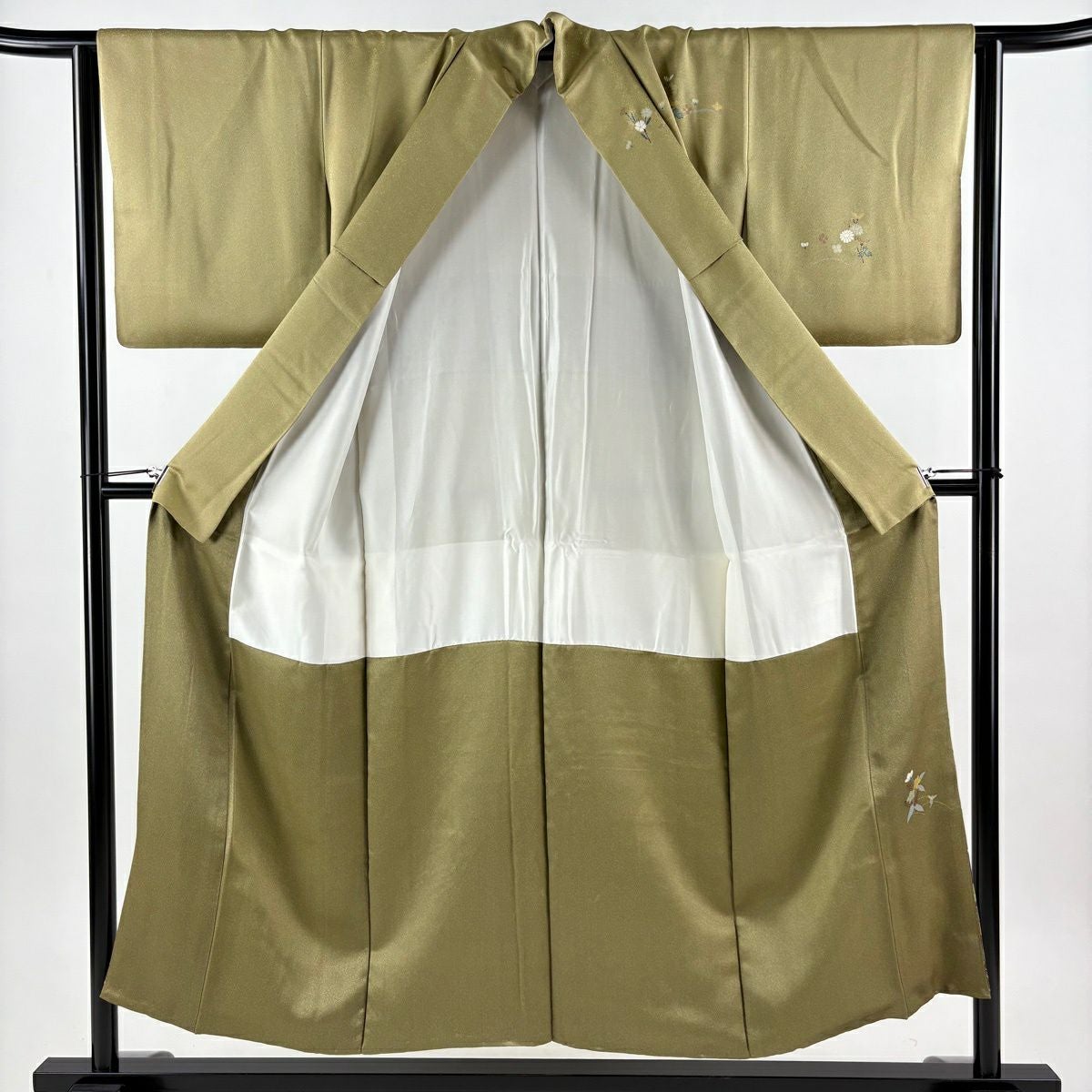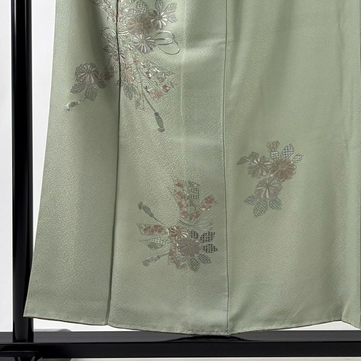 30%OFF 【美品】 付下げ 身丈154cm 裄丈62.5cm S 袷 束ね熨斗 菊 刺繍 灰緑 正絹 秀品 K30