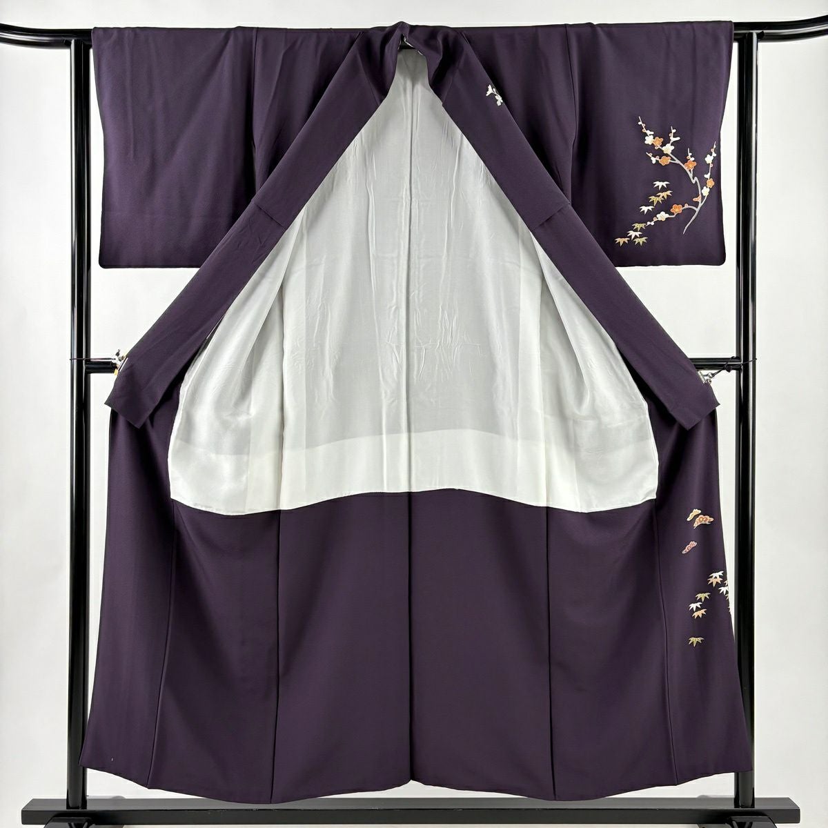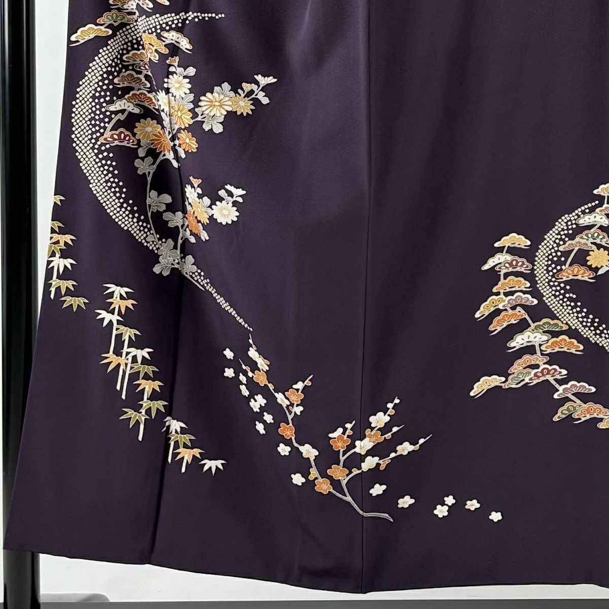 30%OFF 訪問着 身丈152.5cm 裄丈63.5cm S 袷 松竹梅 菊 金糸 金彩 濃紫 正絹 秀品 一つ紋 K30